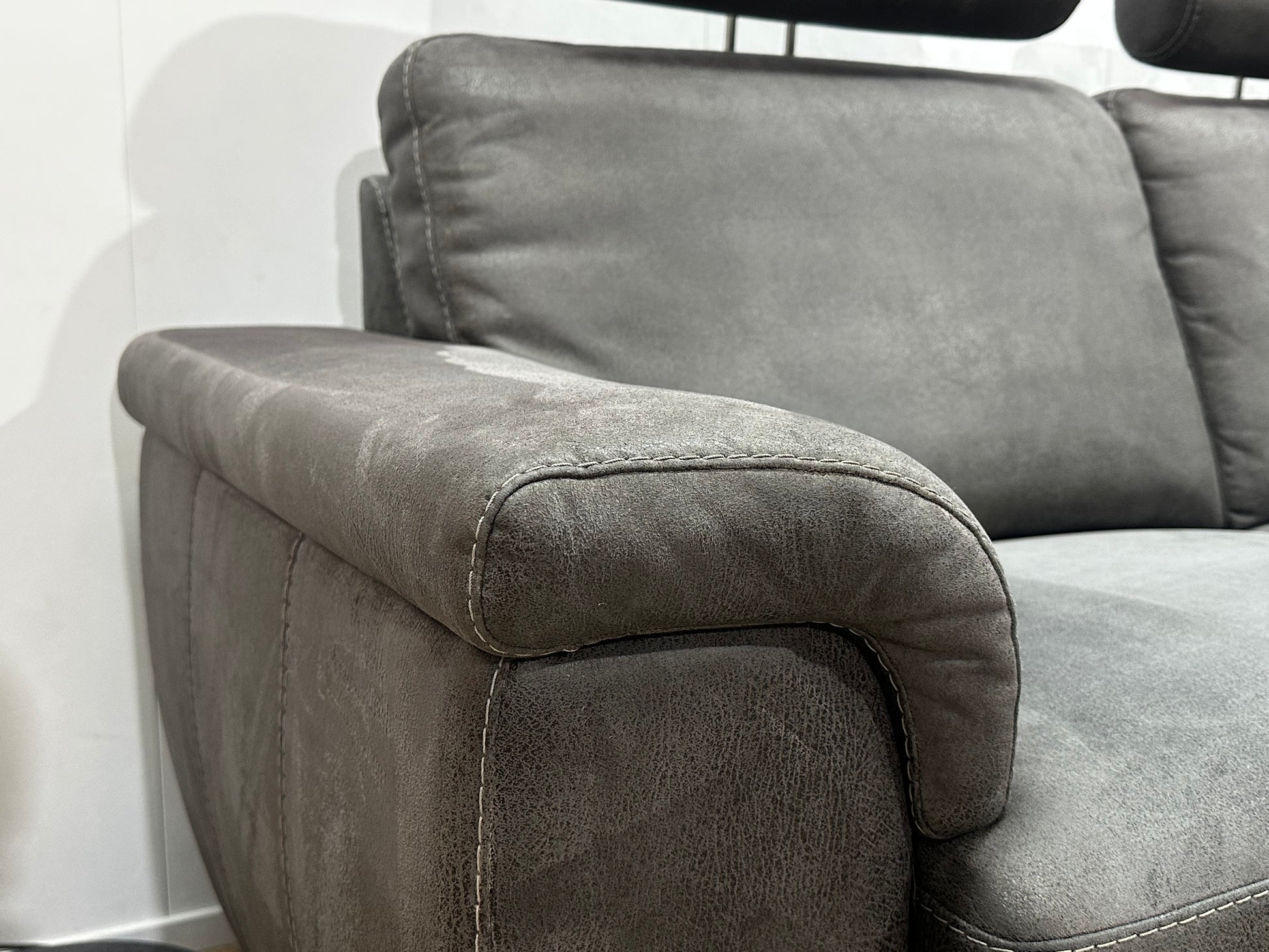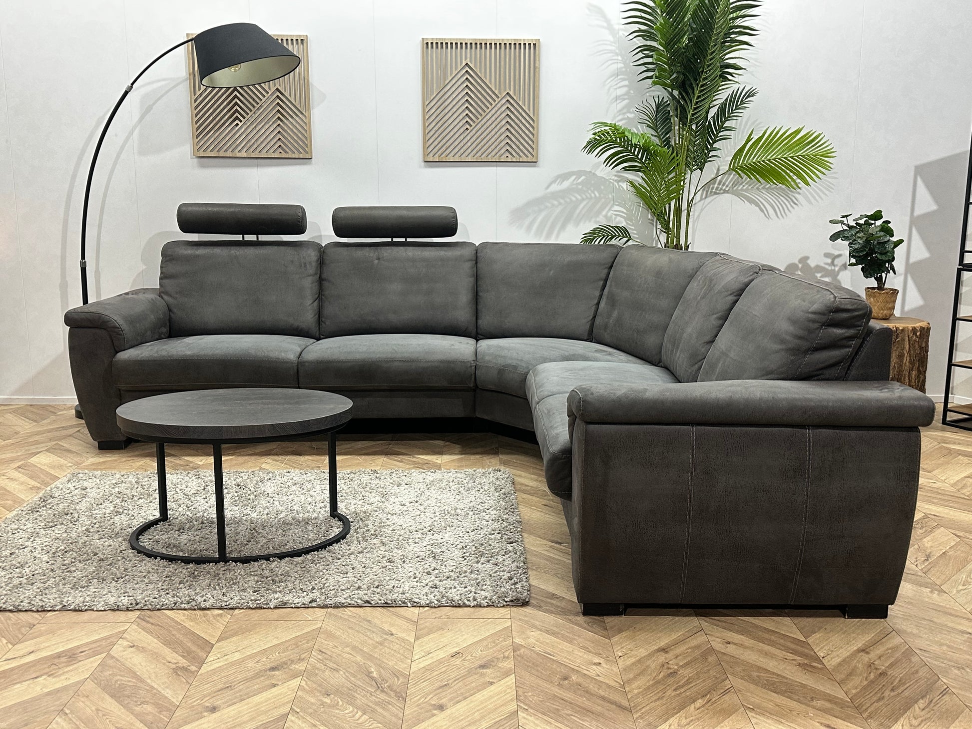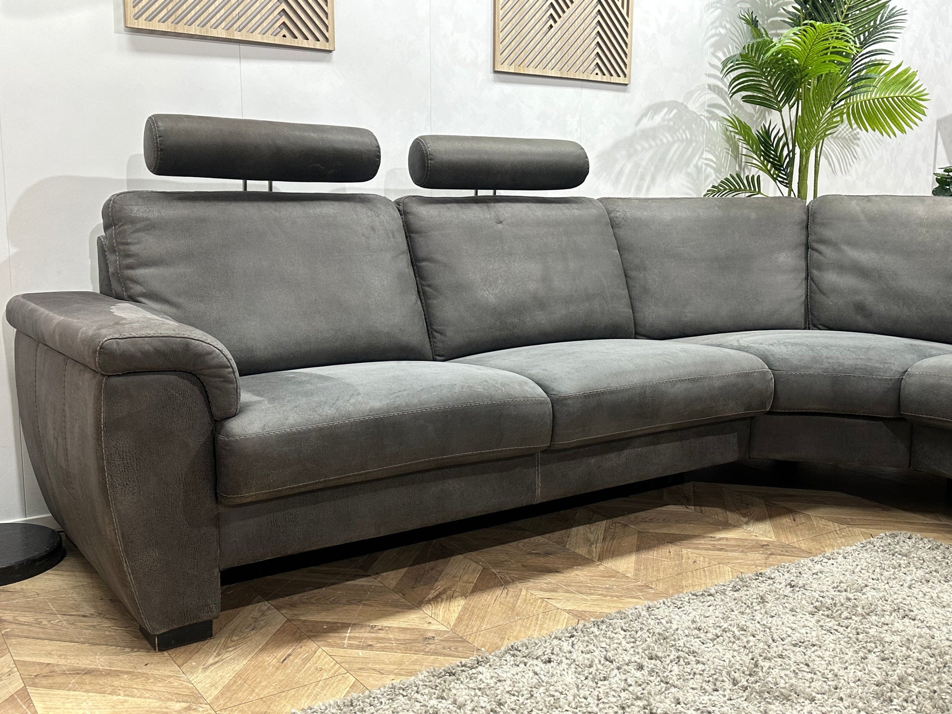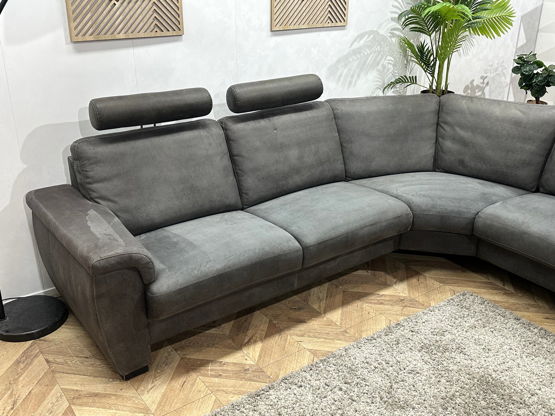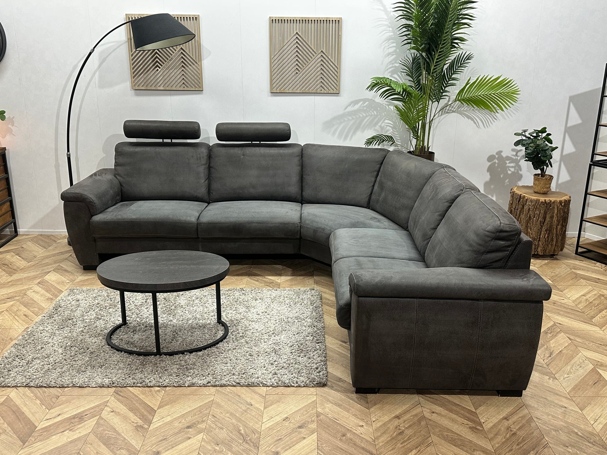 Antraciet Suède Stoffen Hoekbank ~ Vaste Kussens