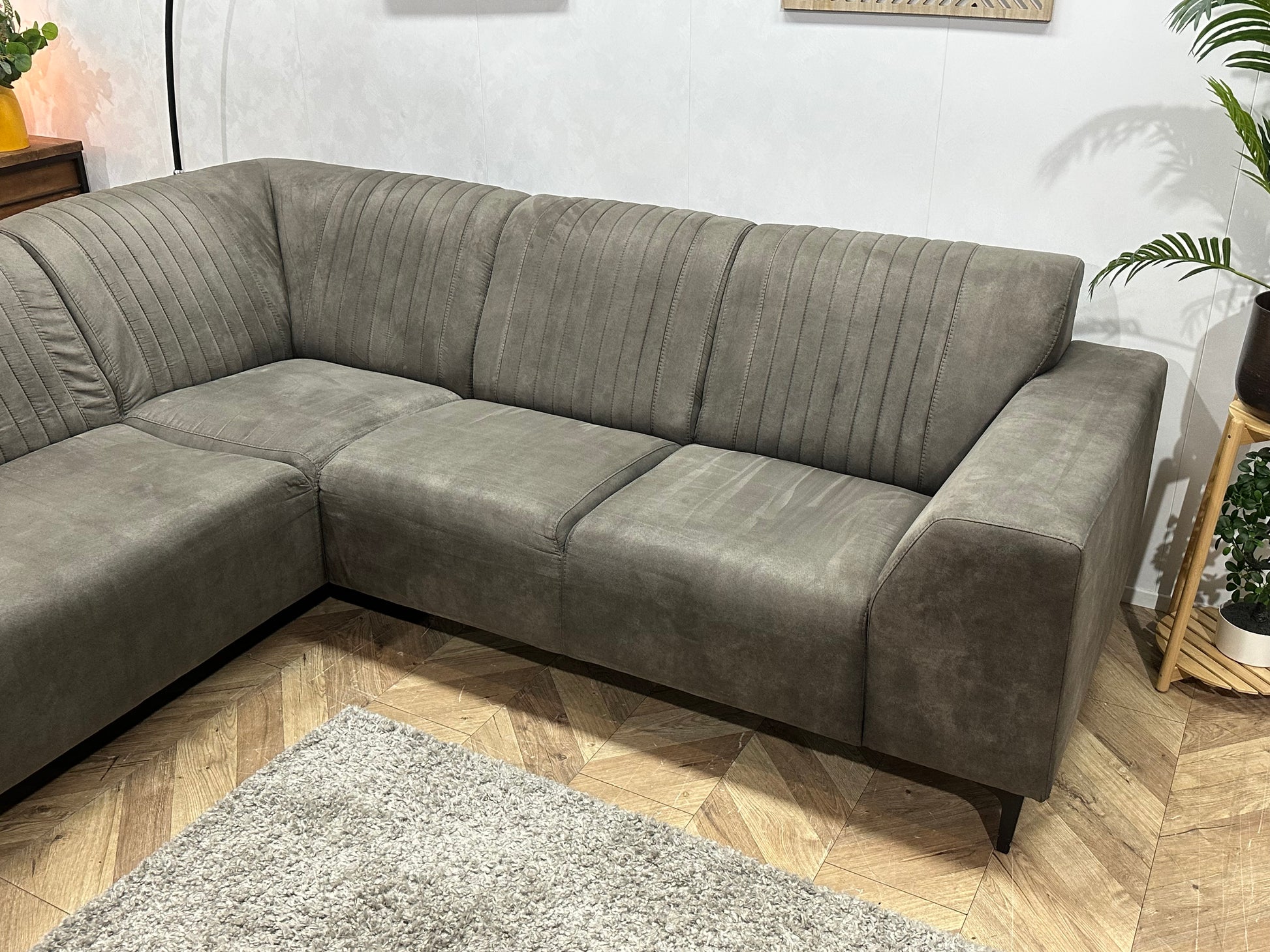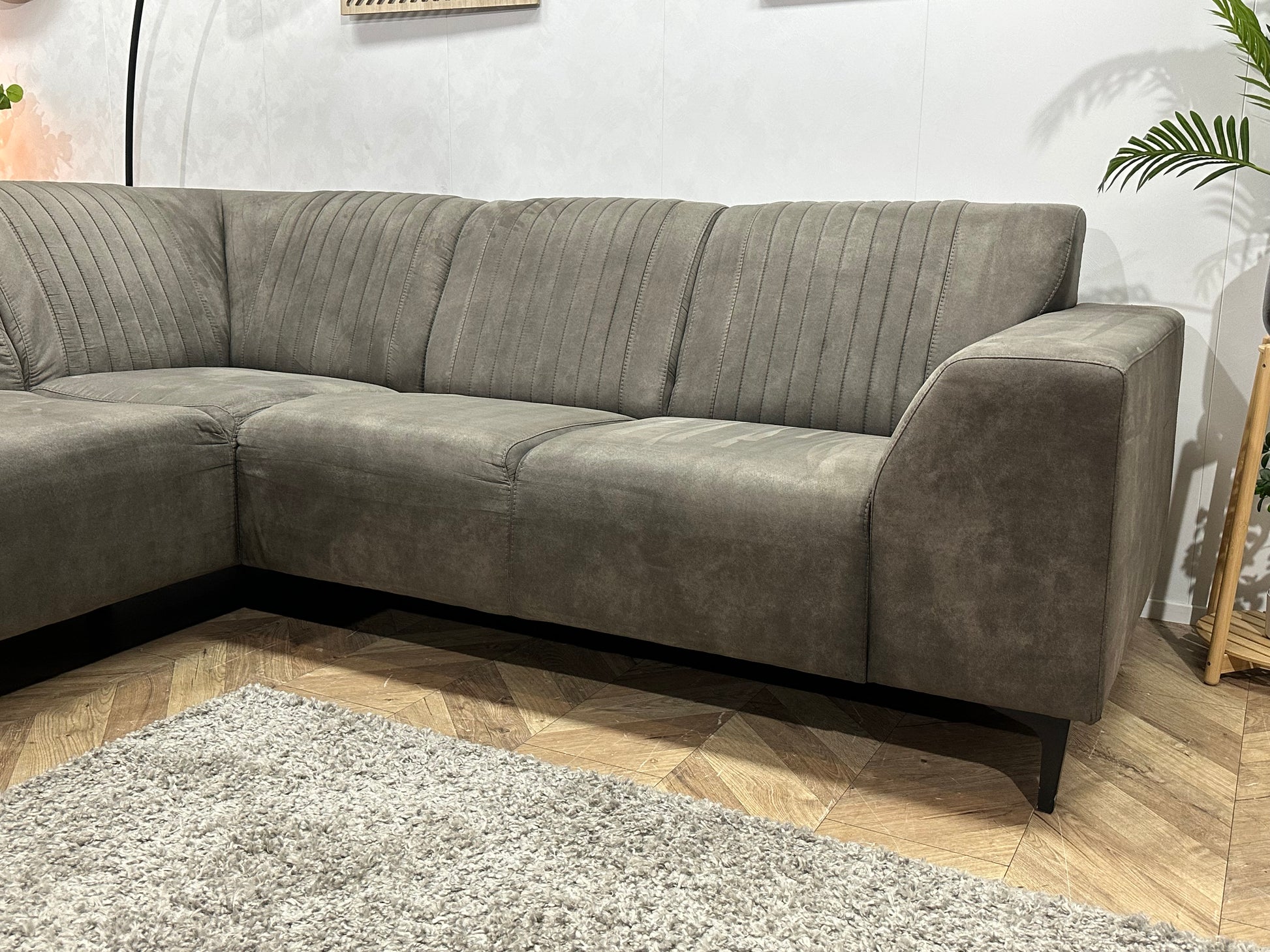 Antraciet Suède Stoffen Hoekbank ~ Vaste Kussens