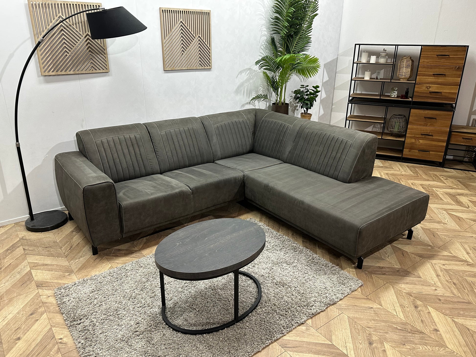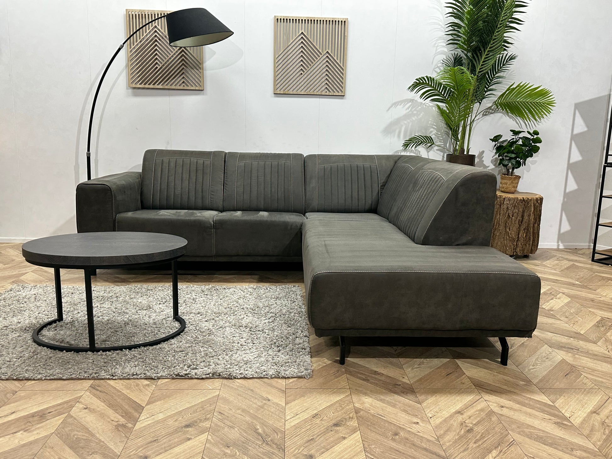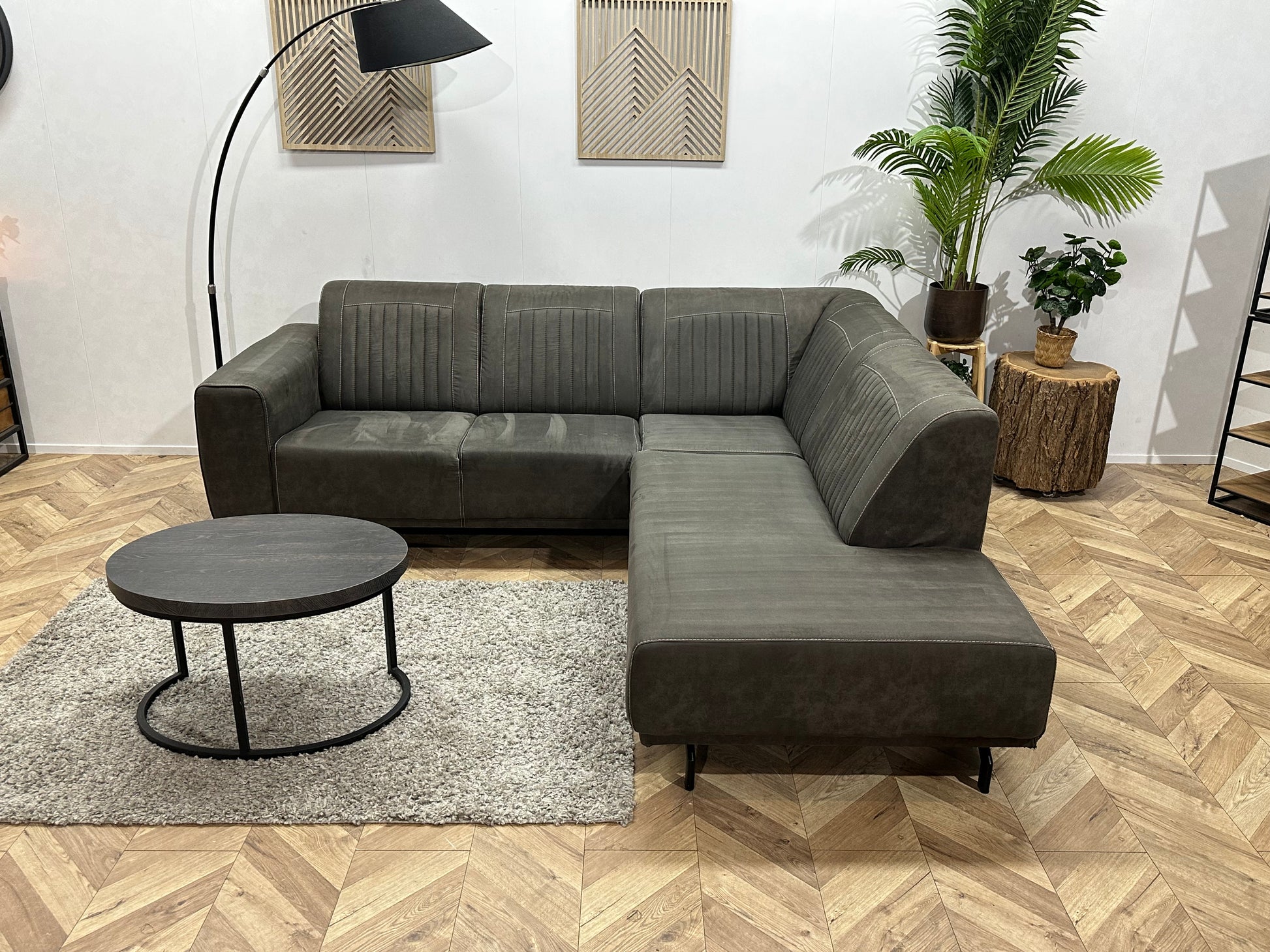 Antraciet Suède Stoffen Hoekbank ~ Vaste Kussens