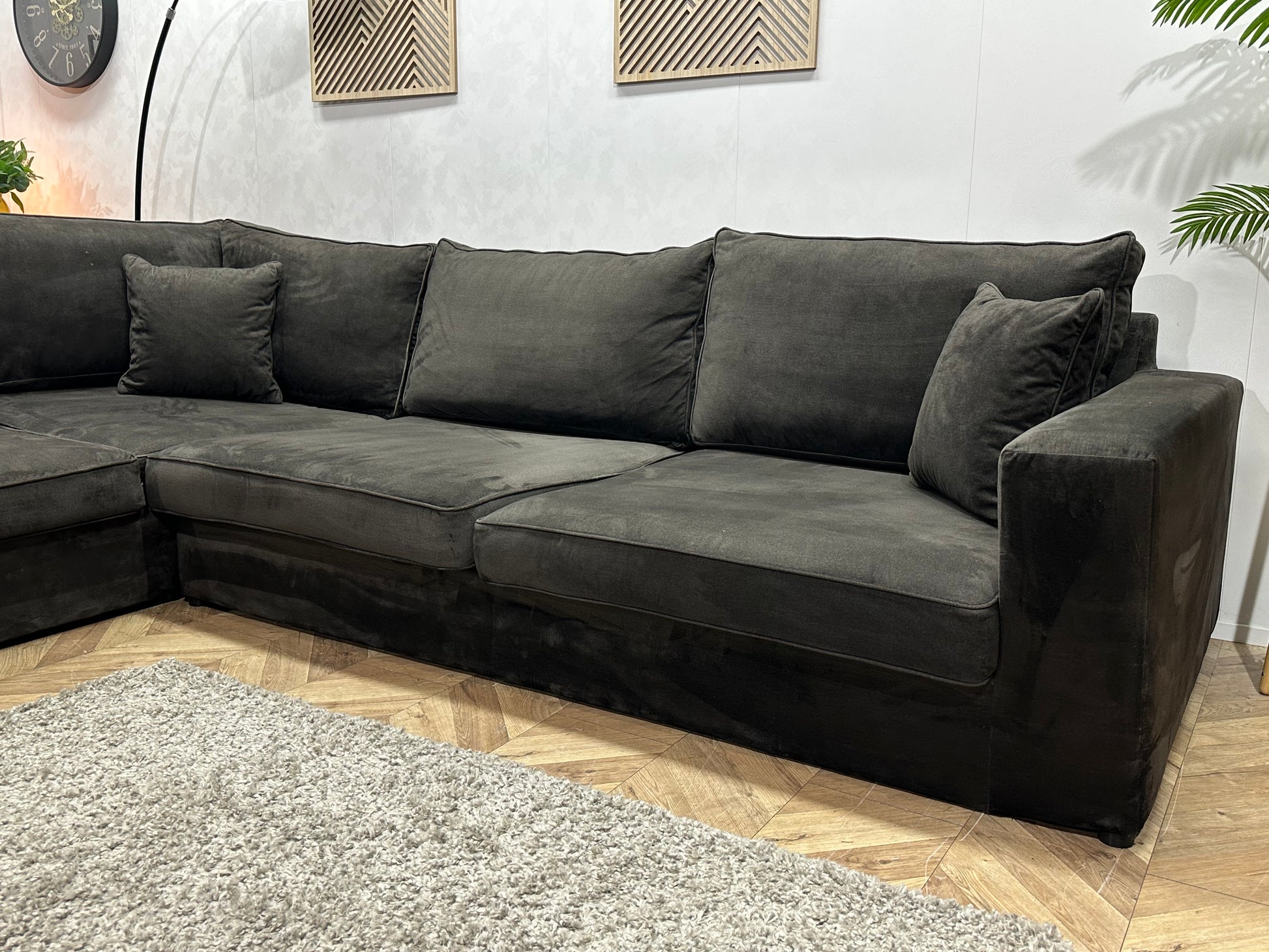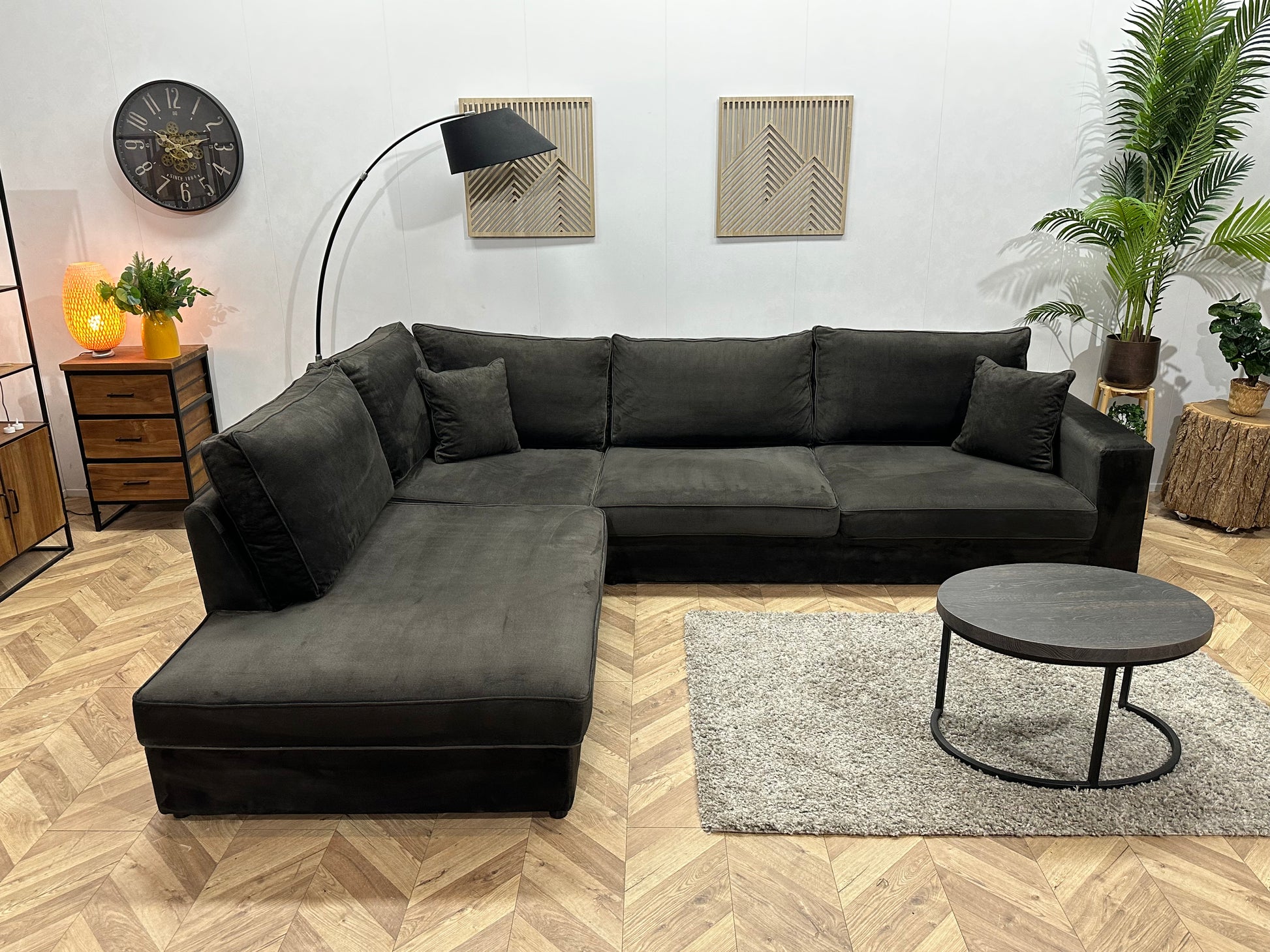 Antraciet Velvet Hoekbank ~ Losse Kussens Met Afneembare Hoezen
