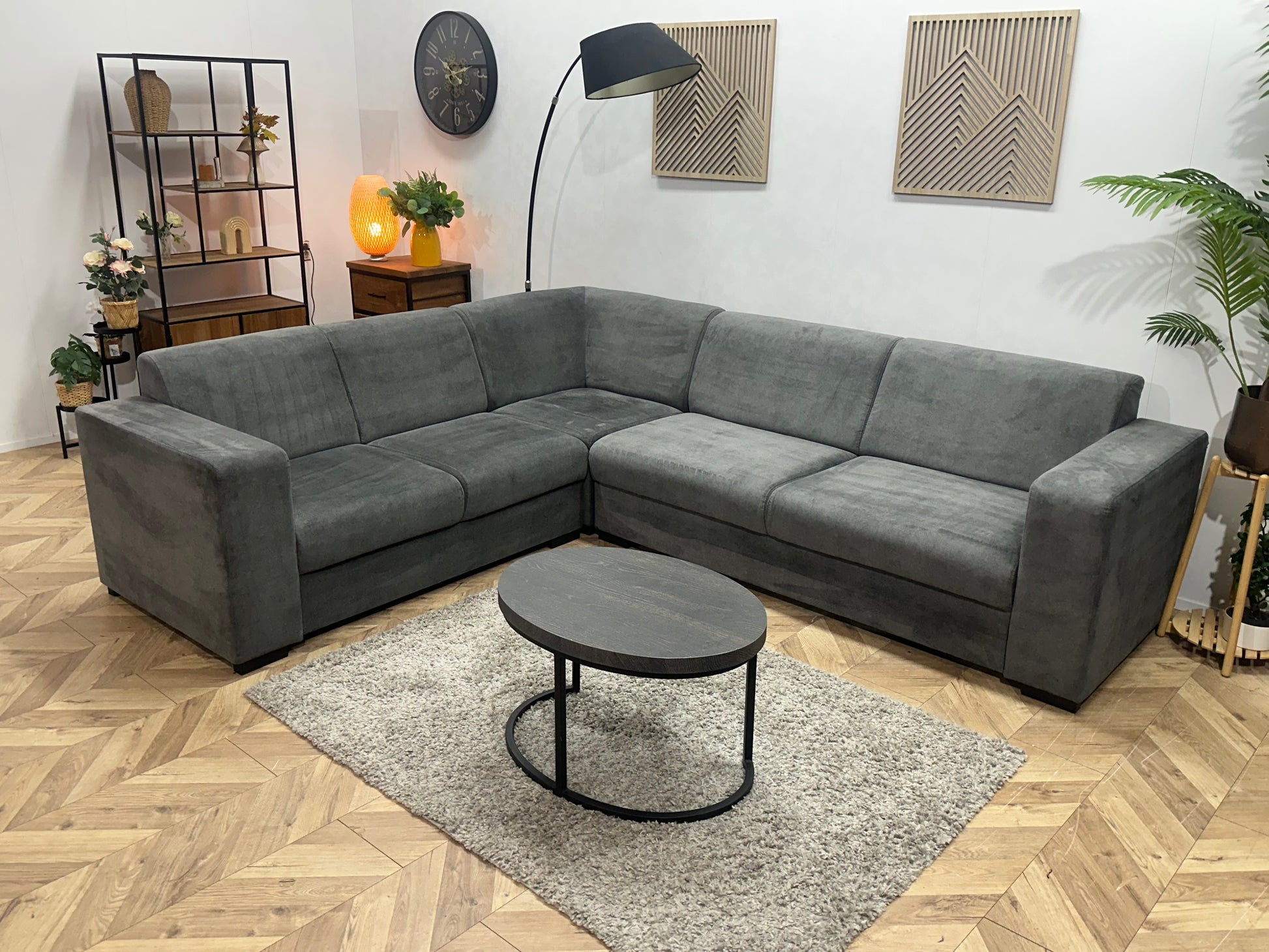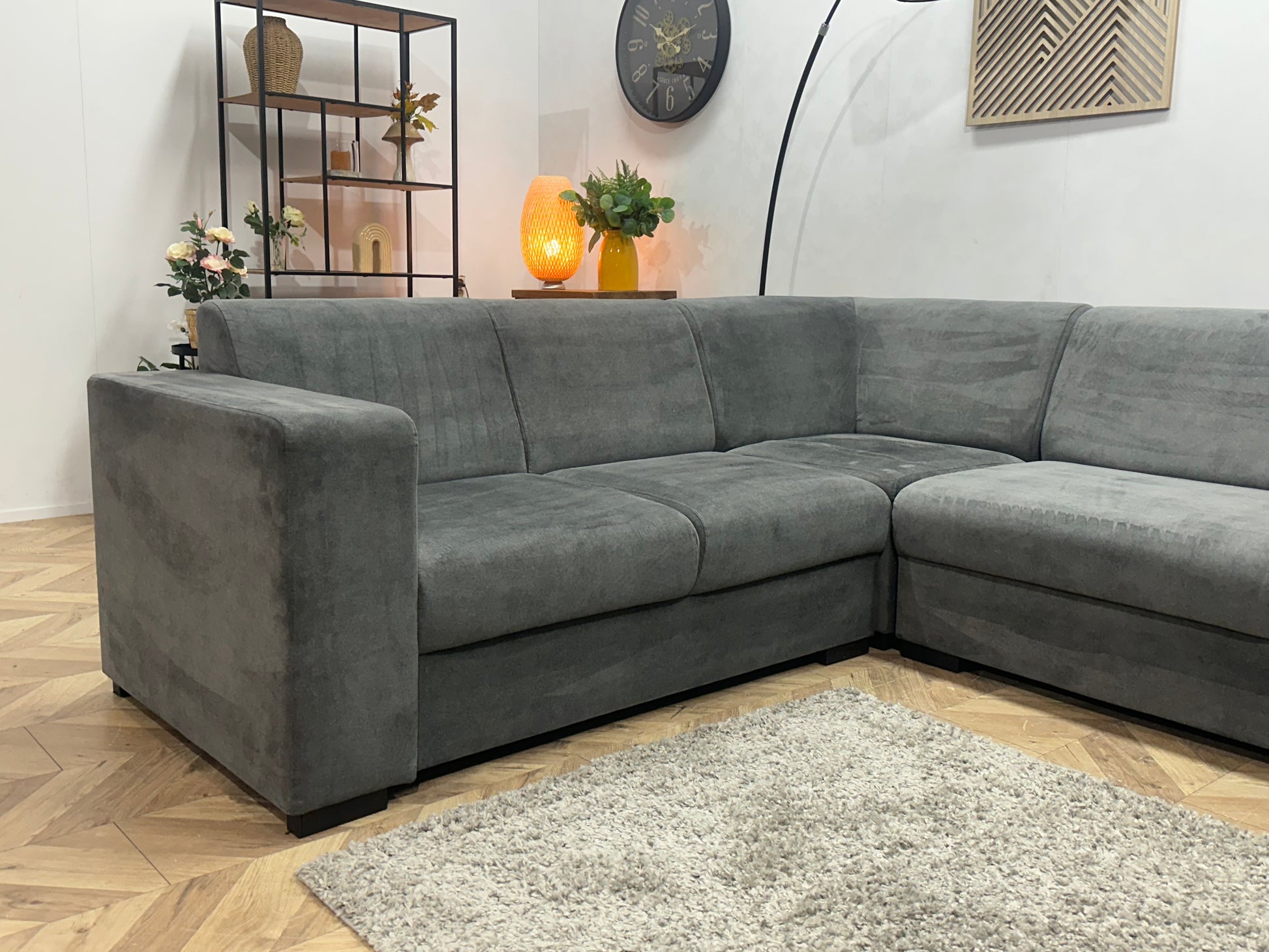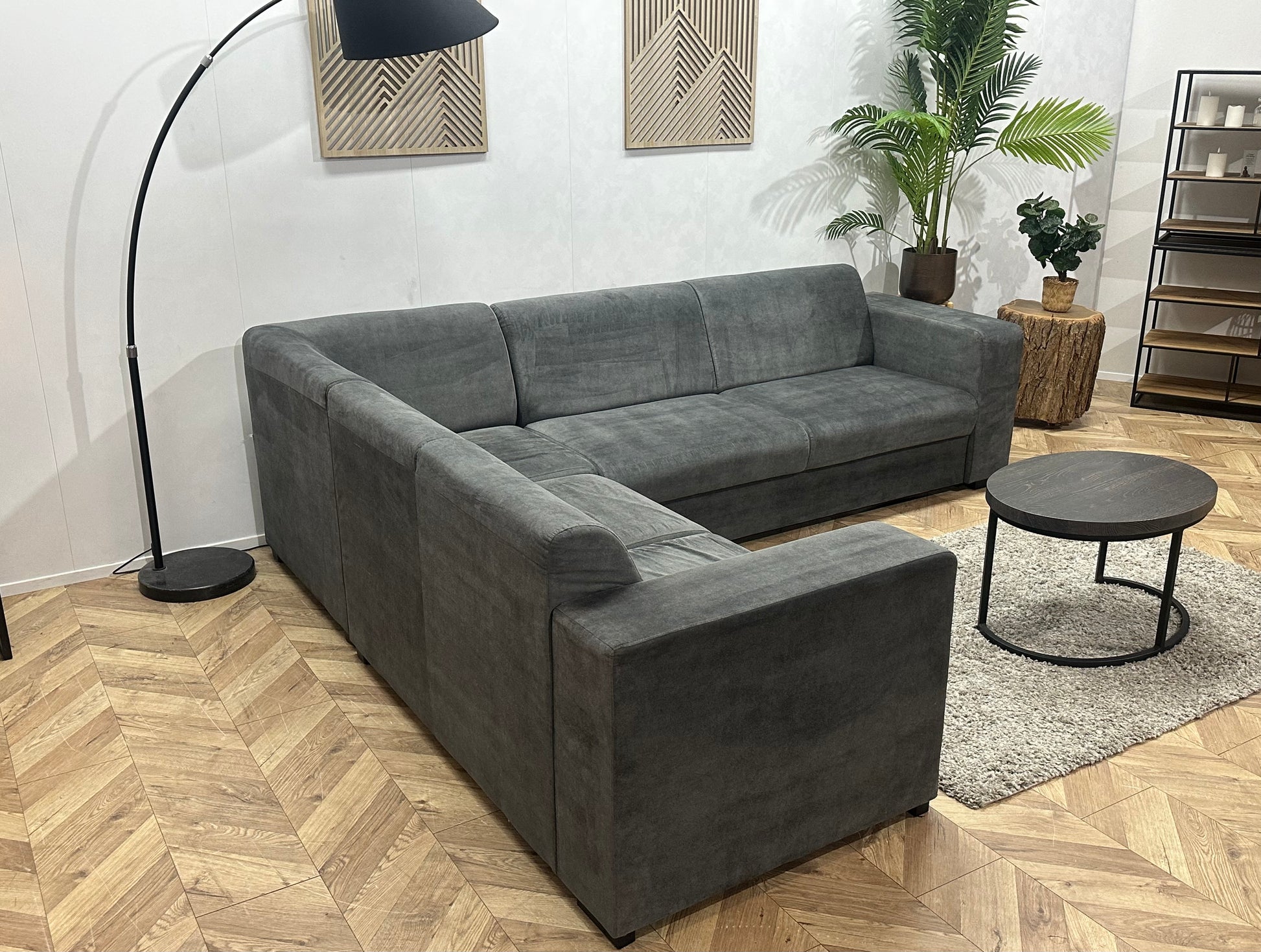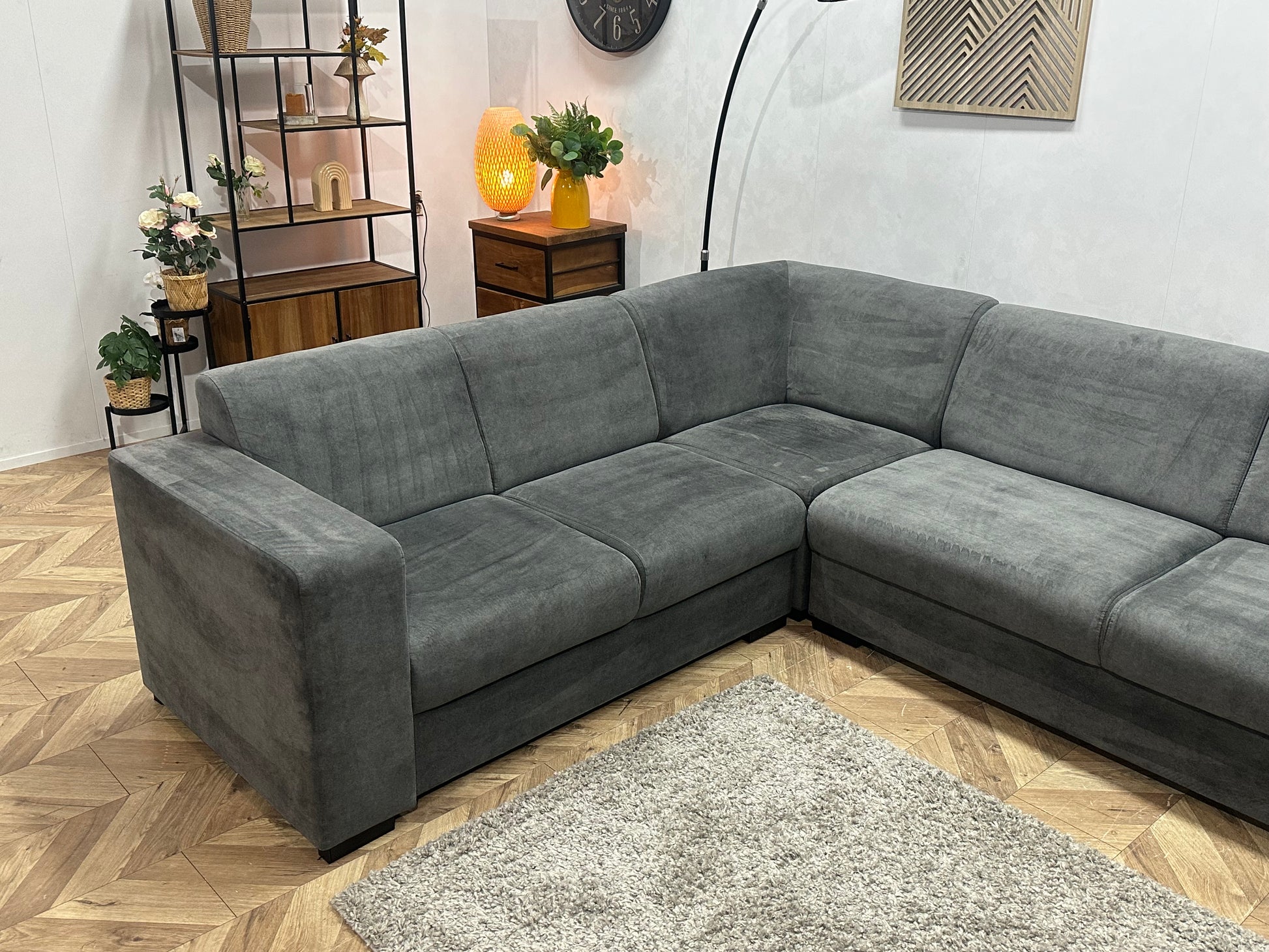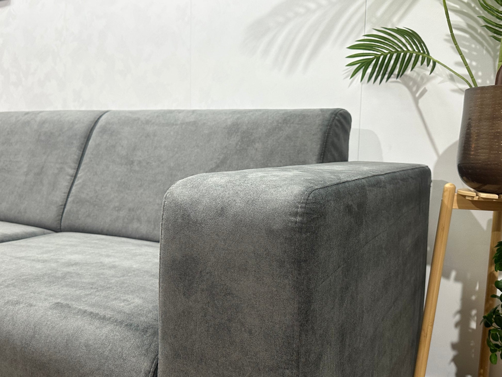 Antraciet Velvet Hoekbank ~ Vaste Kussens