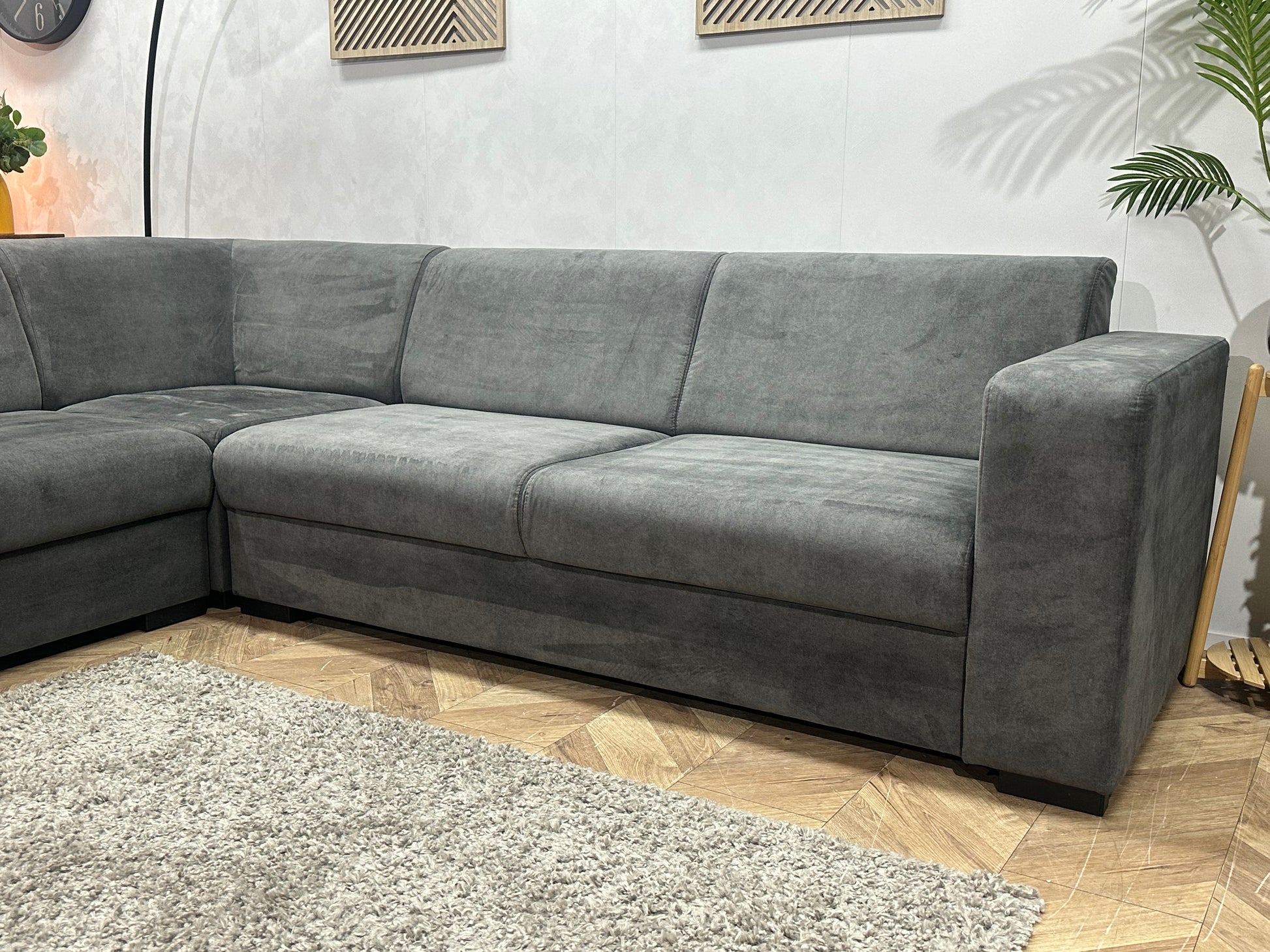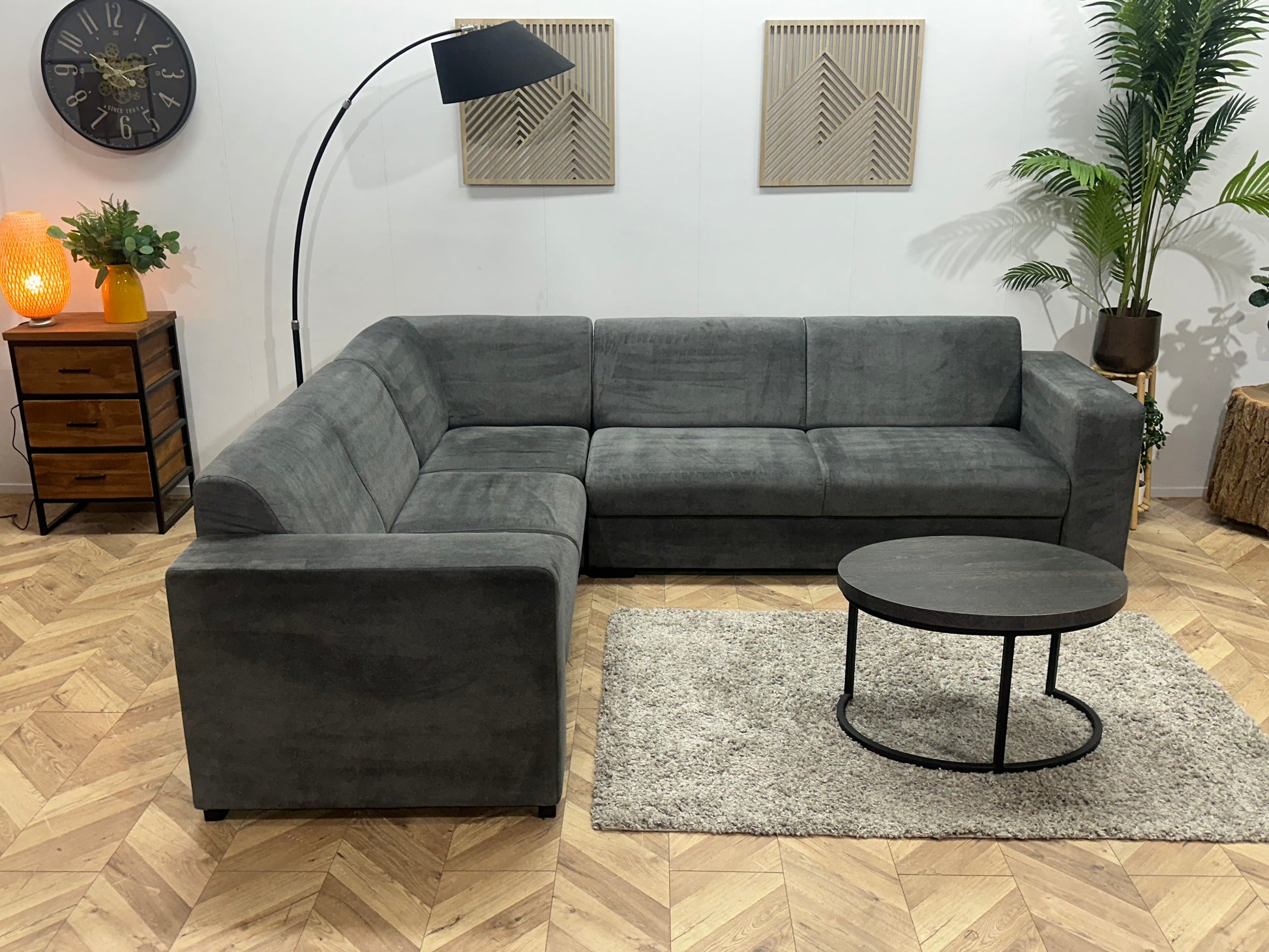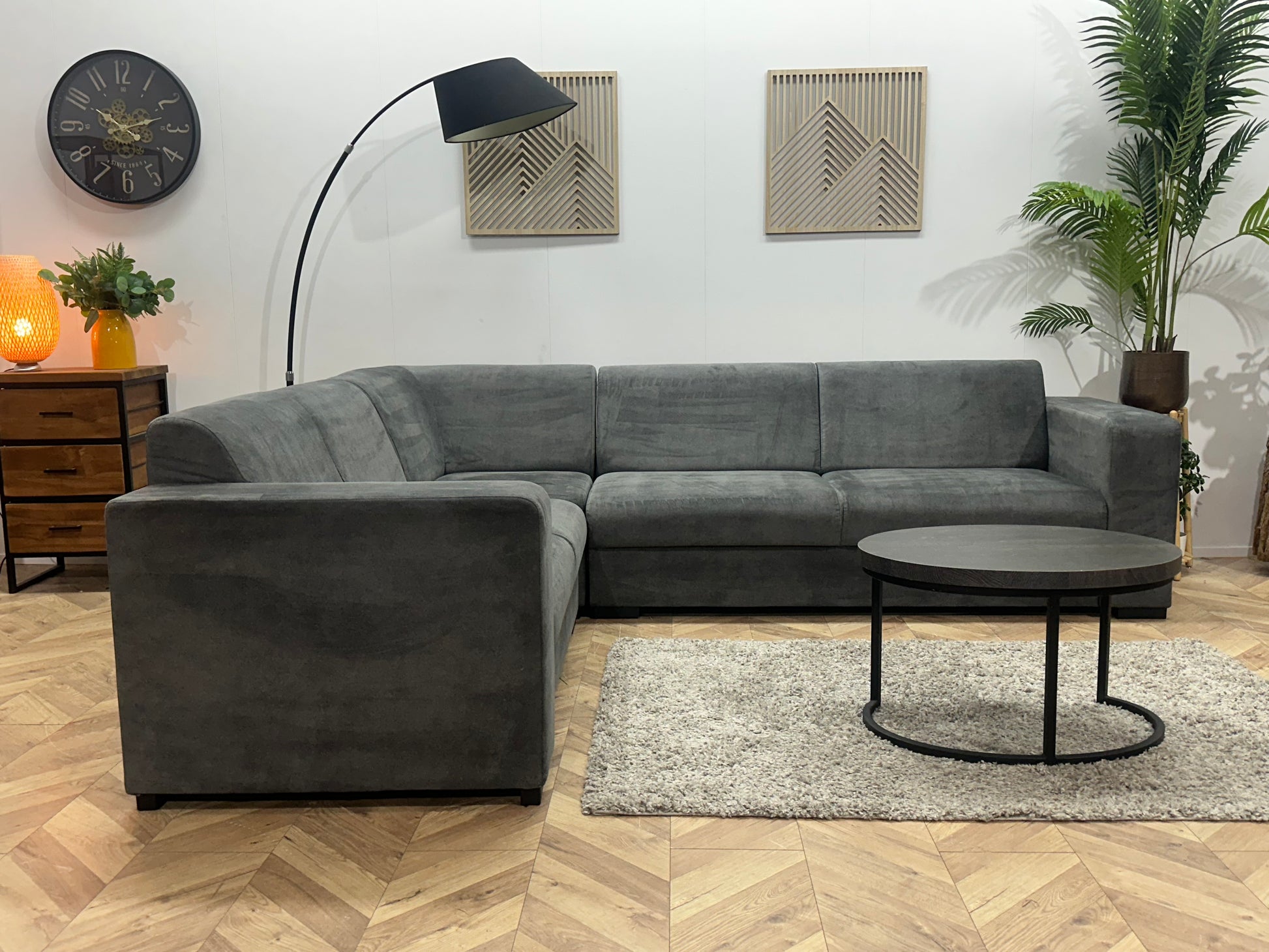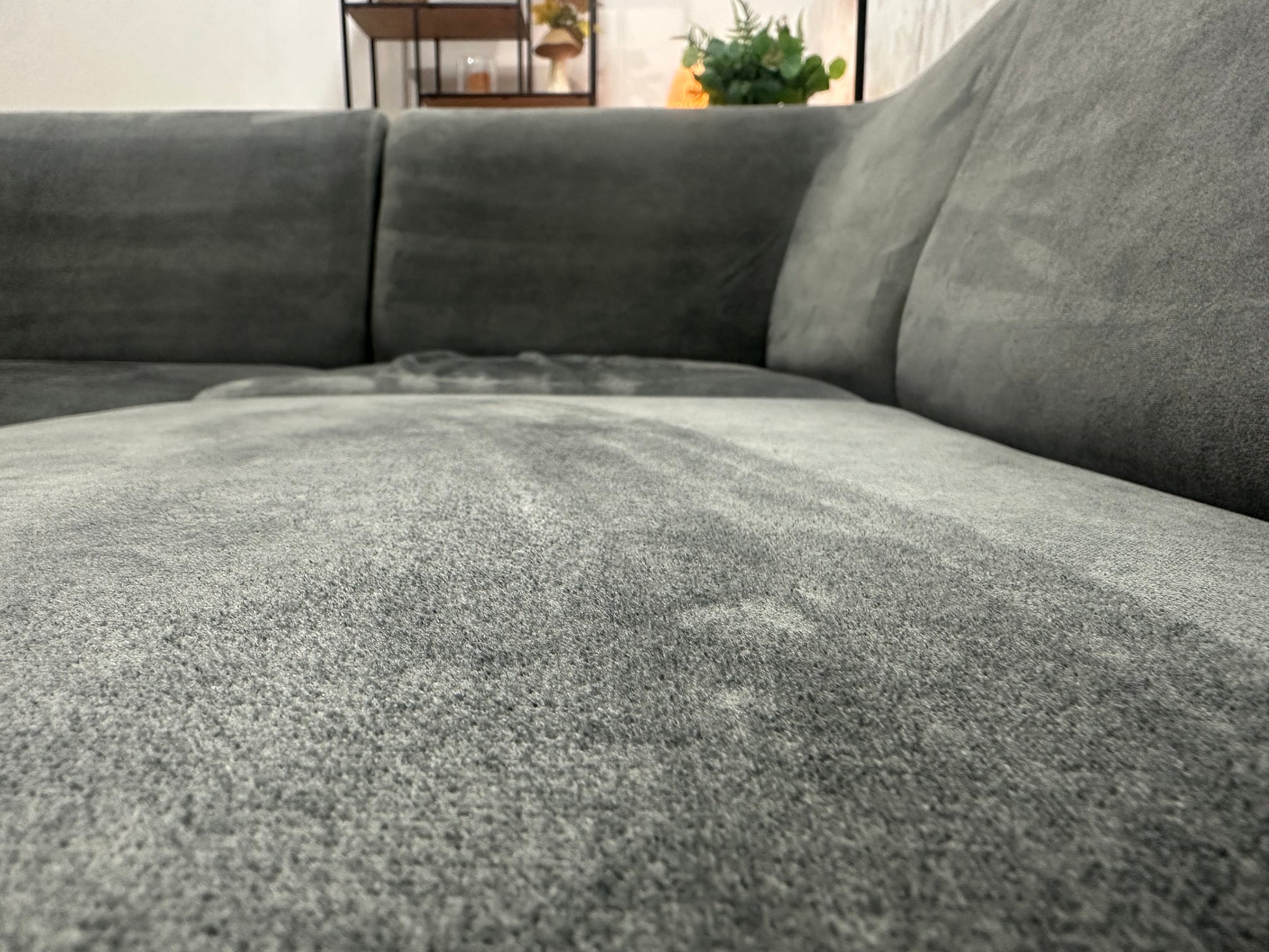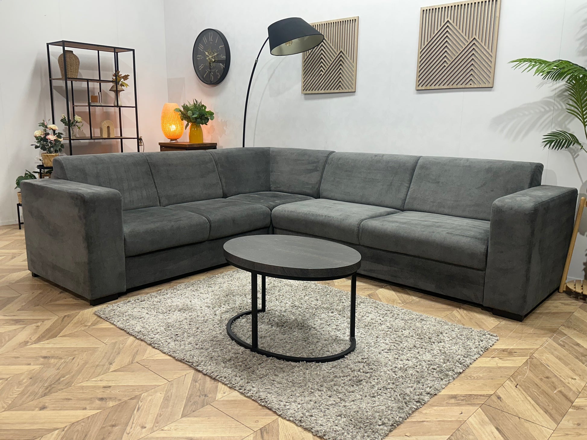 Antraciet Velvet Hoekbank ~ Vaste Kussens