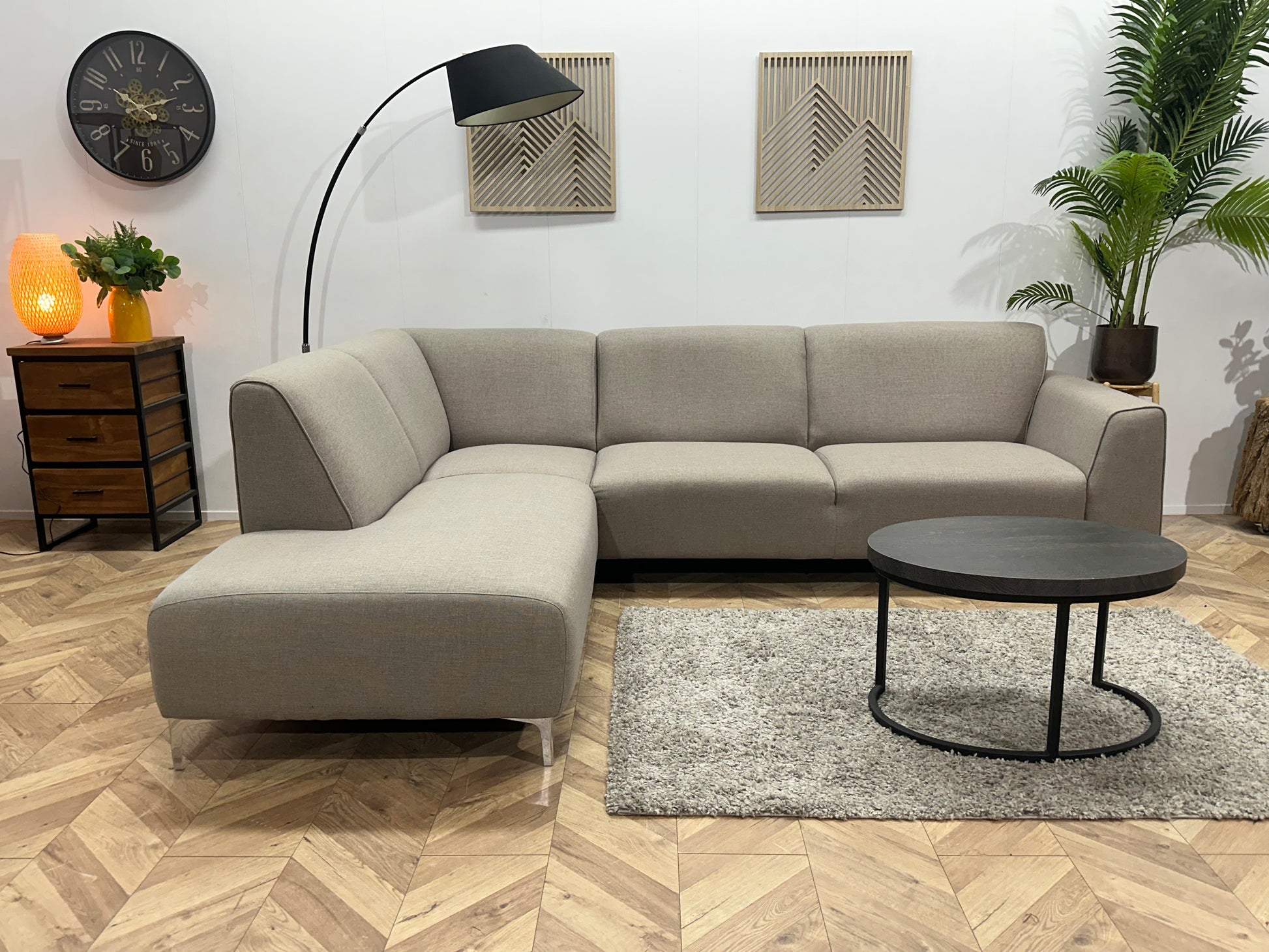 Beige Hoekbank ~ Vaste Kussens