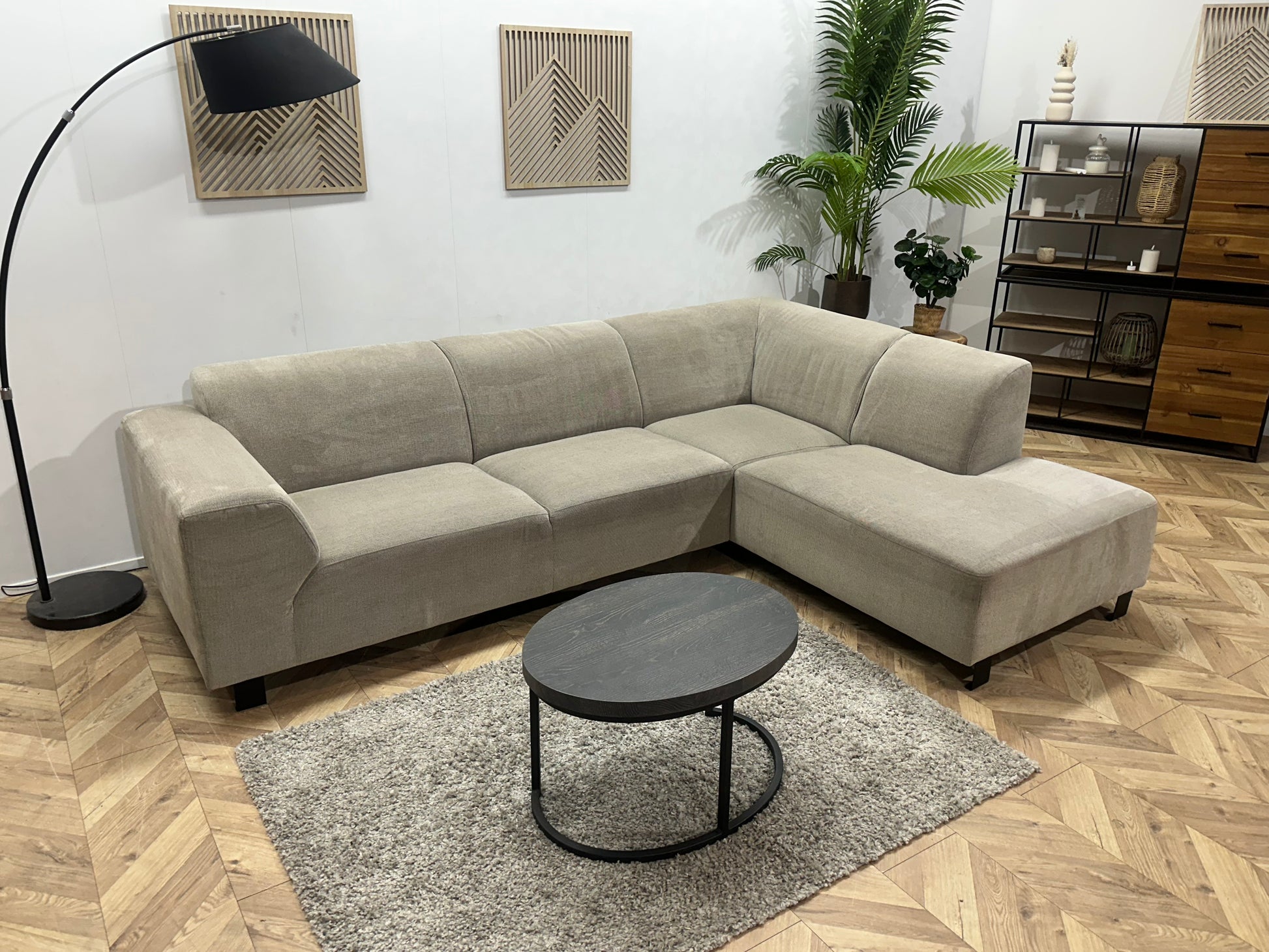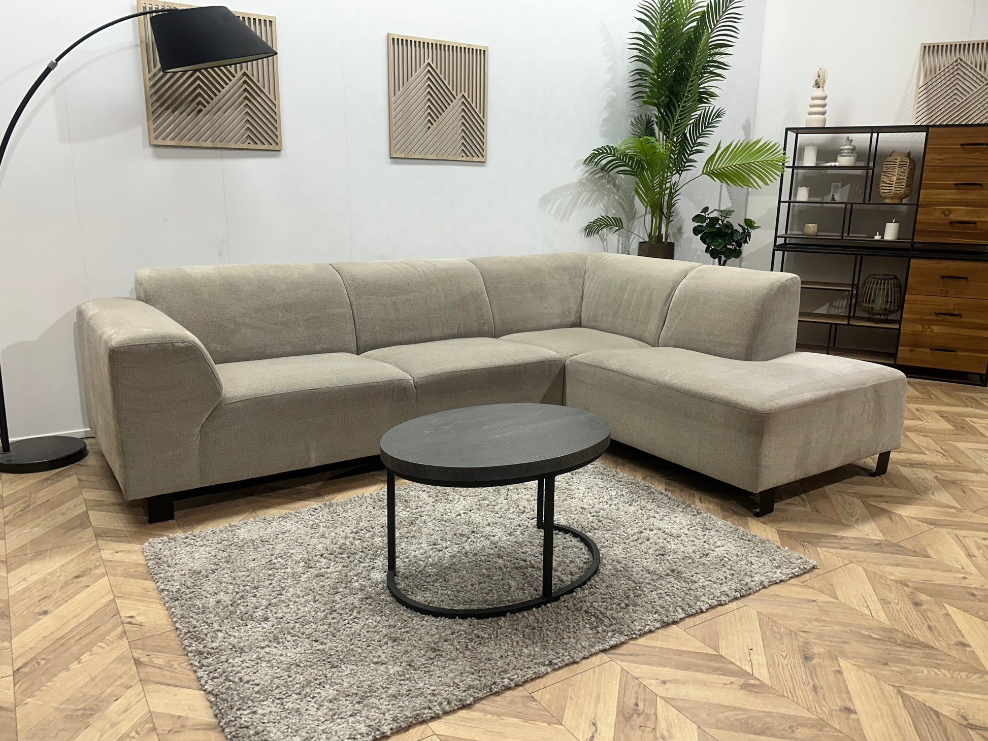 Beige Hoekbank ~ Vaste Kussens