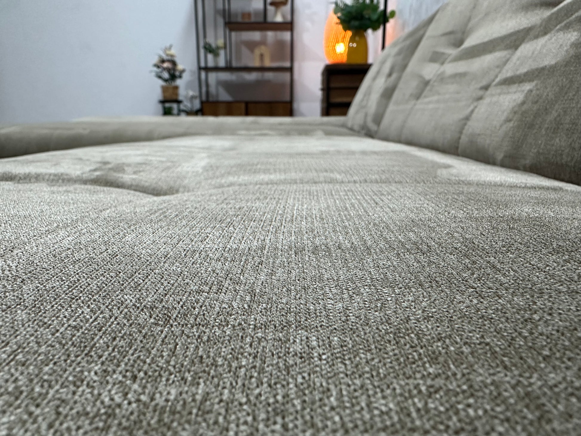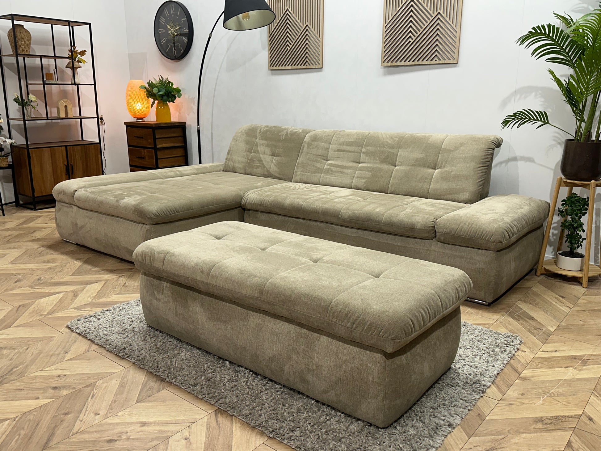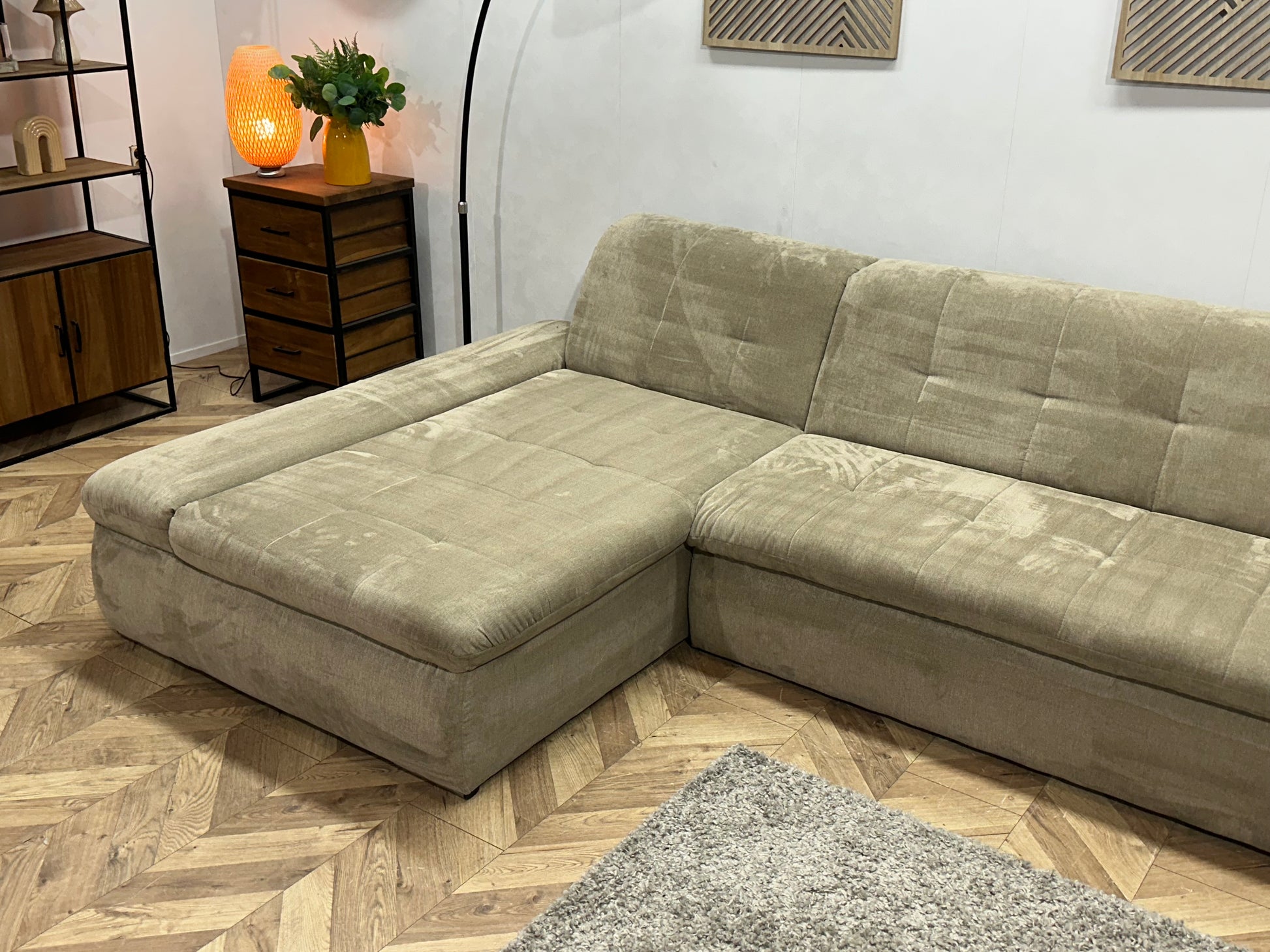 Beige Suède Stoffen Hoekbank Inc Hocker ~ Nieuwstaat