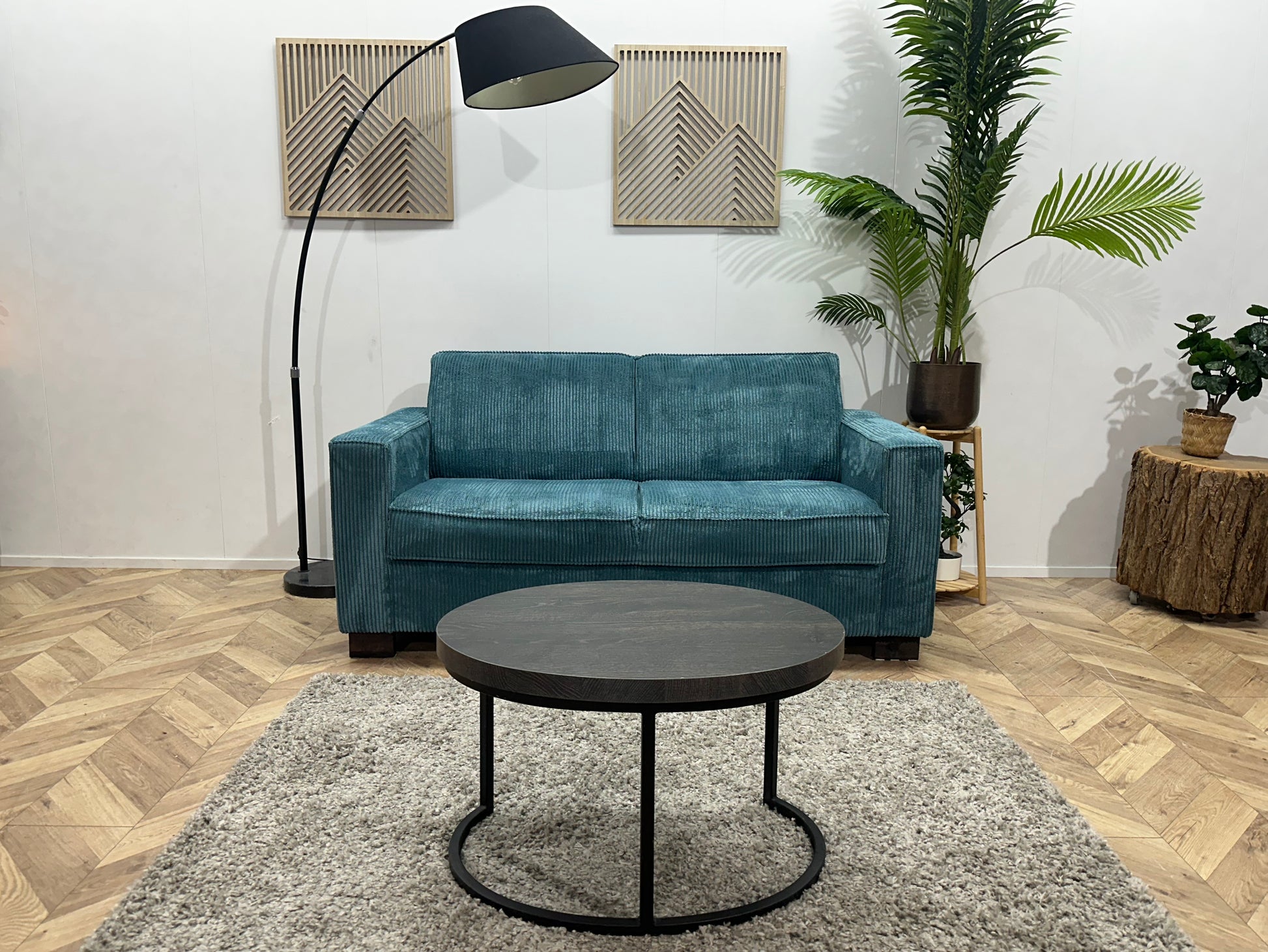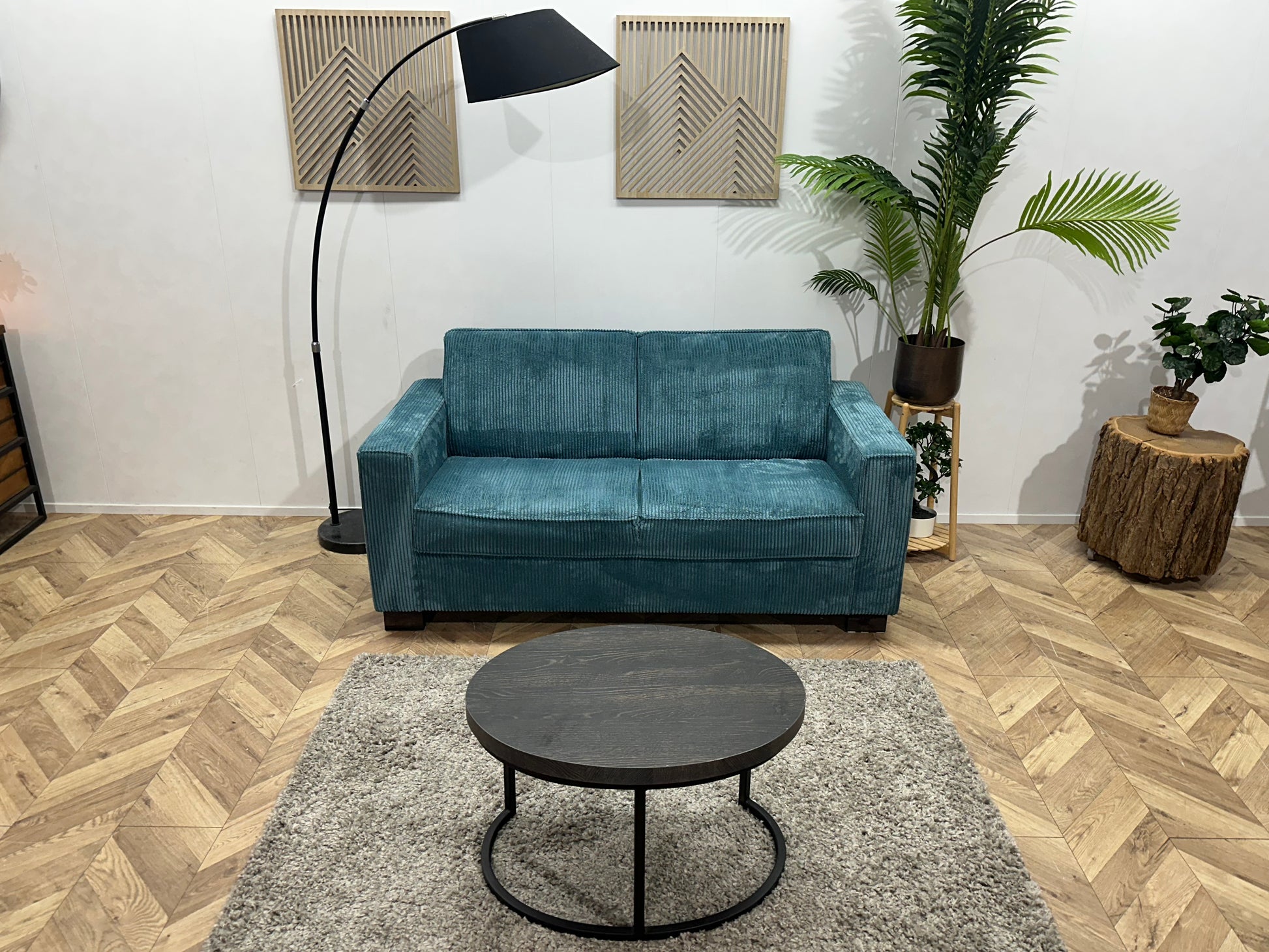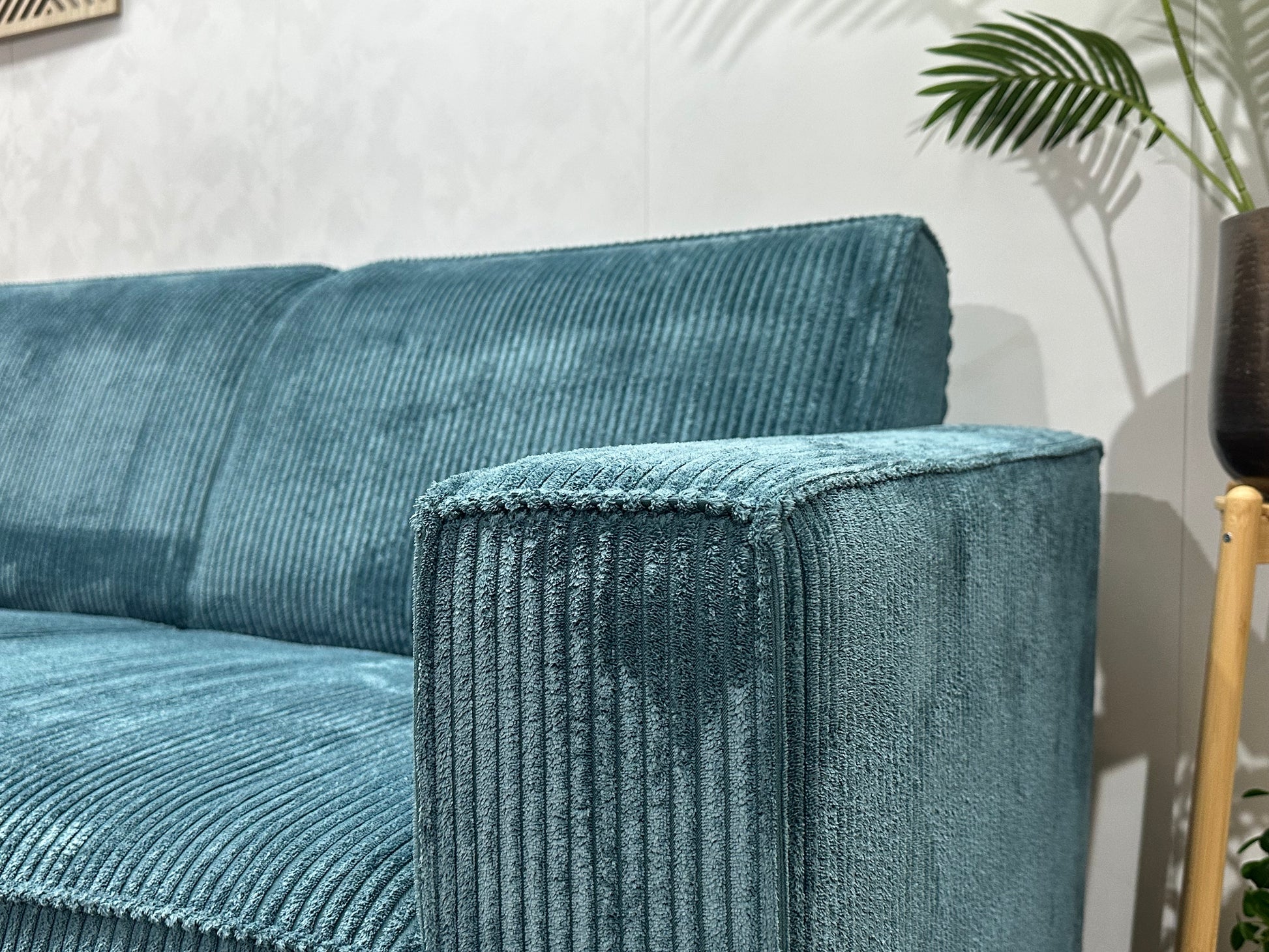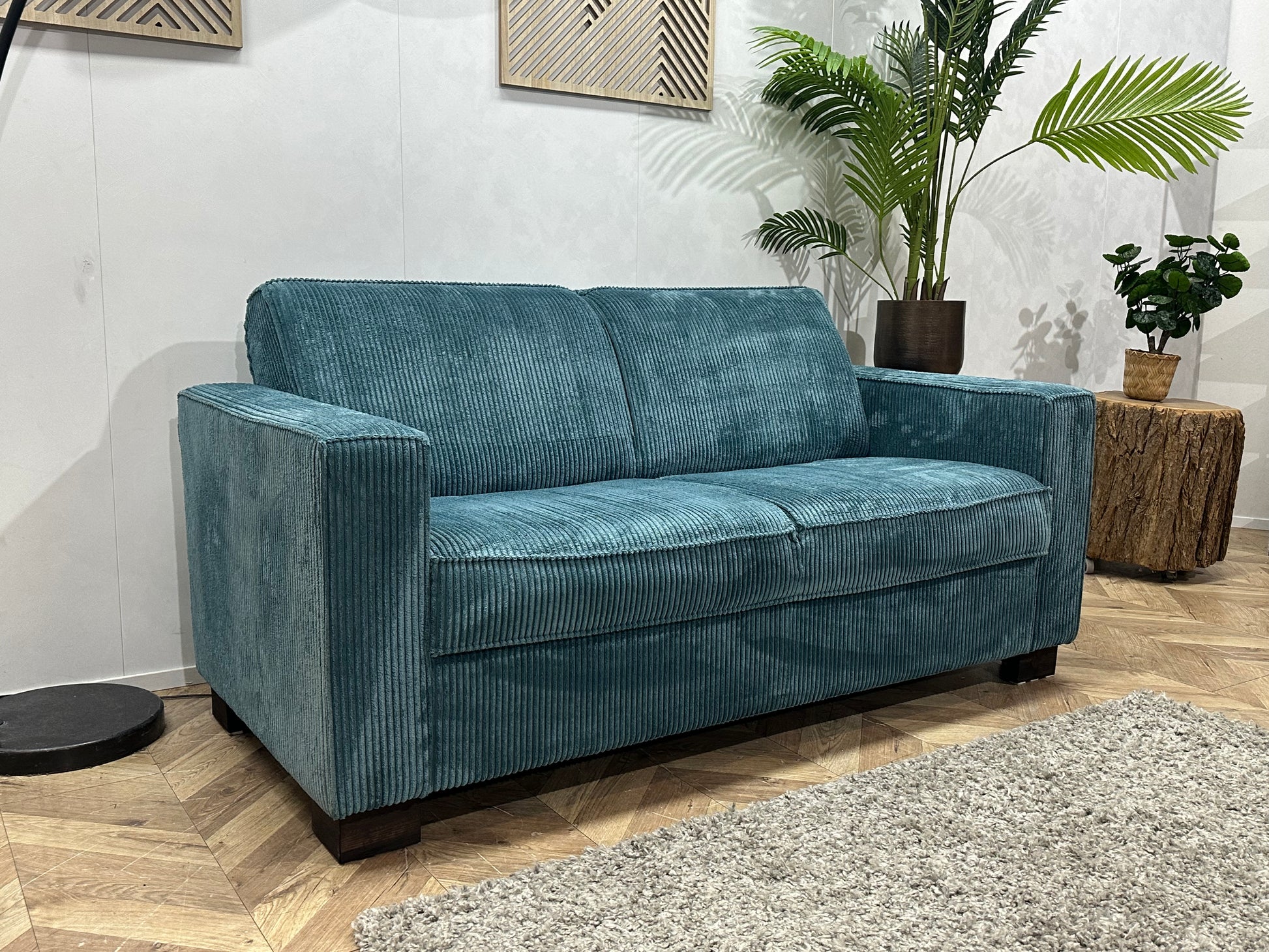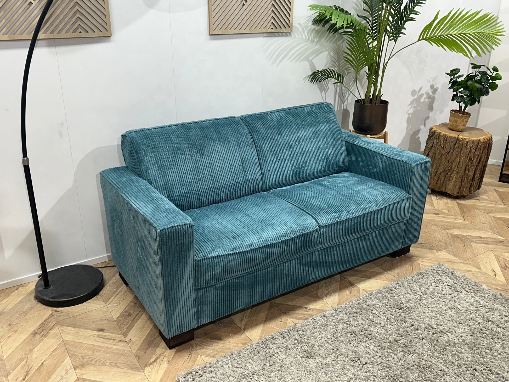 Blauwe Ribstof 2.5-Zits Bank ~ Vaste Kussens