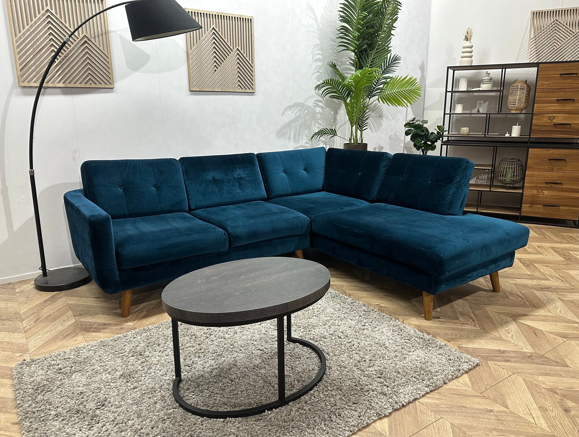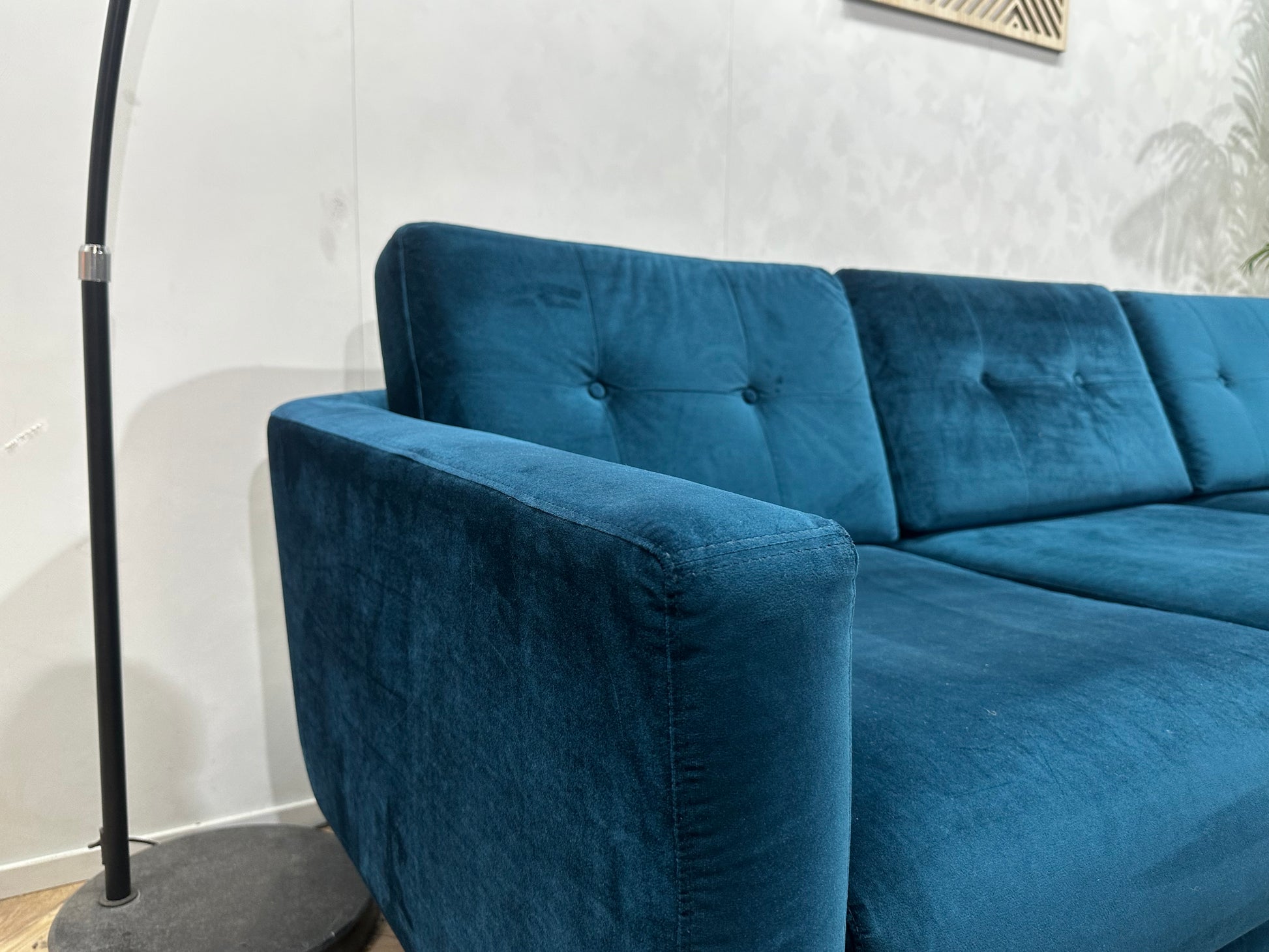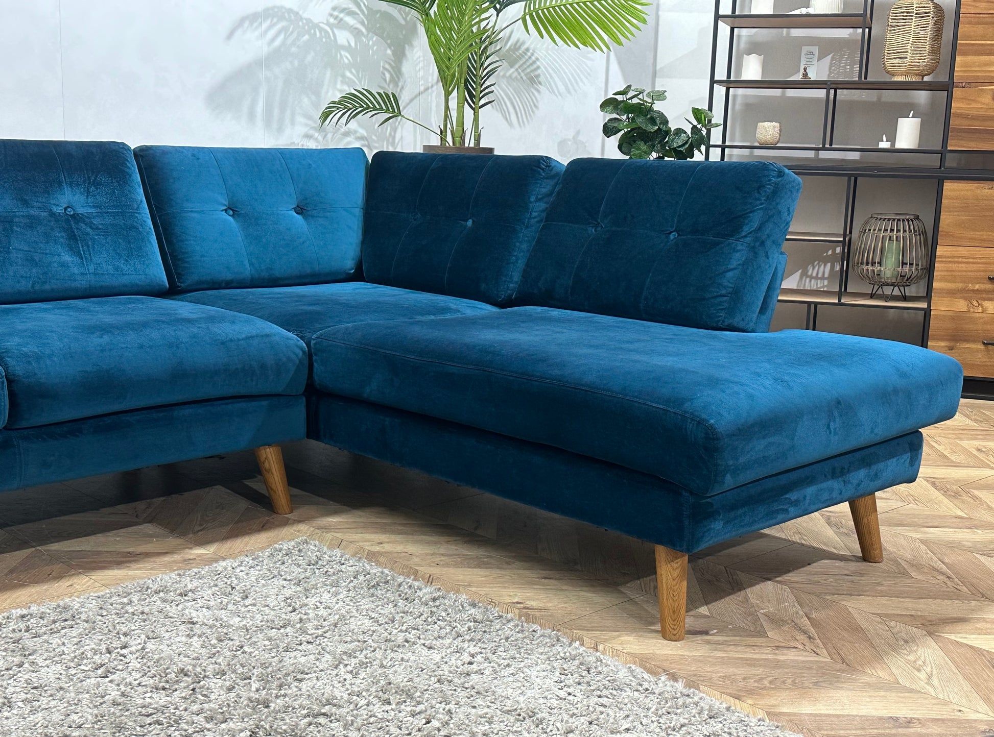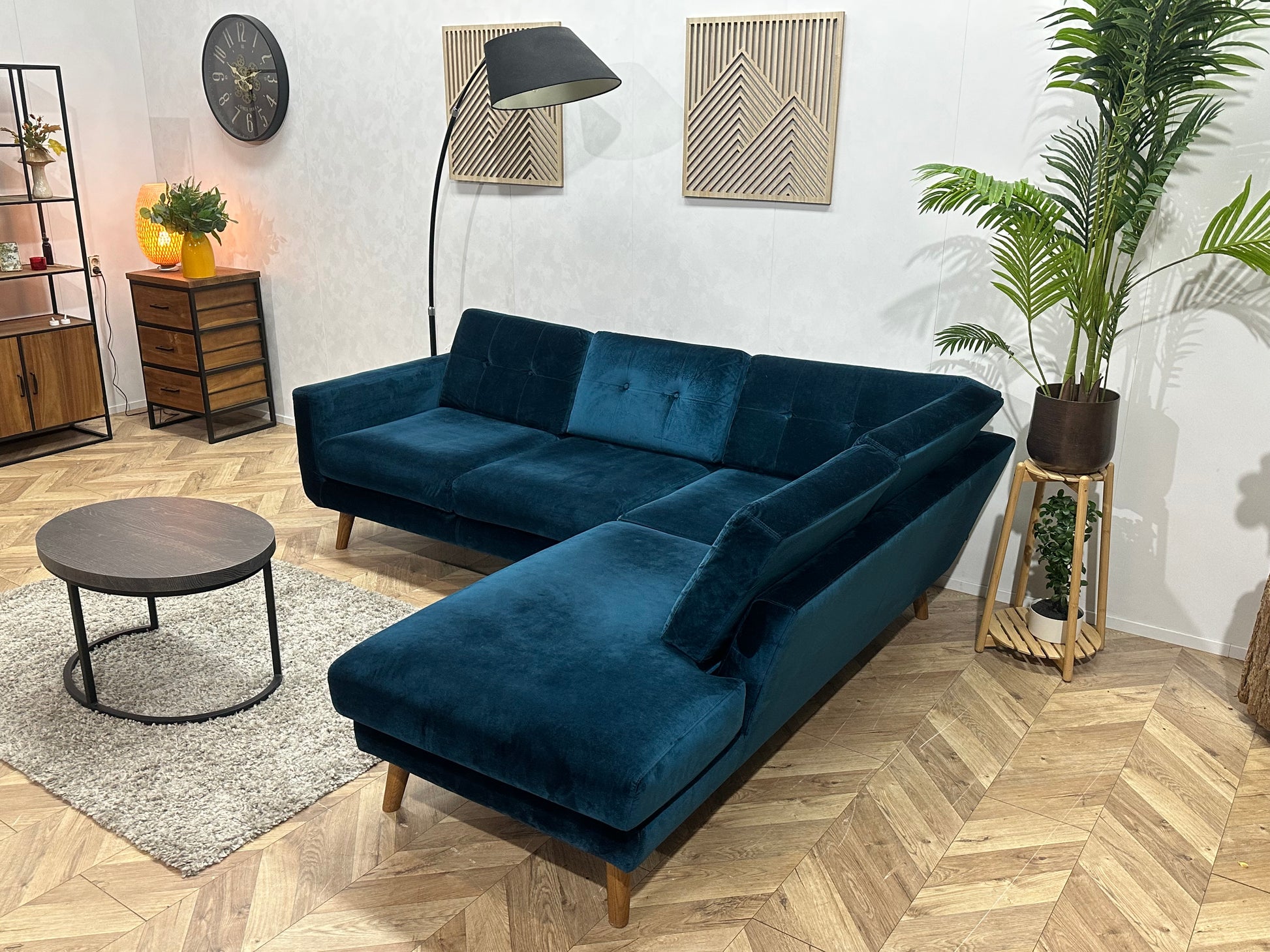 Blauwe Velvet Hoekbank ~ Losse Kussens Met Afneembare Hoezen