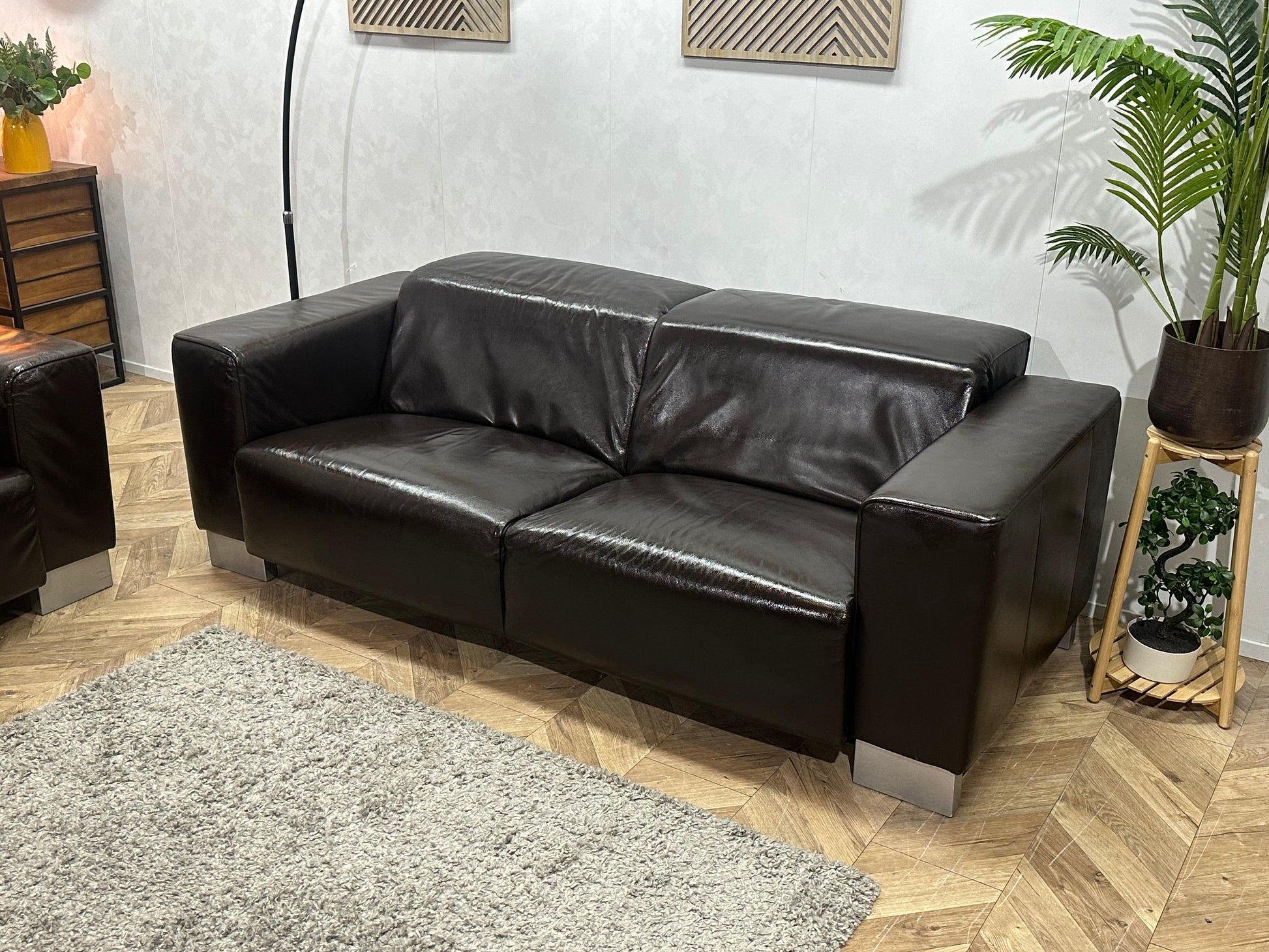 Bruine Echt Lederen 2.5-Zits Bank Inc Fauteuil ~ Geïmpregneerd