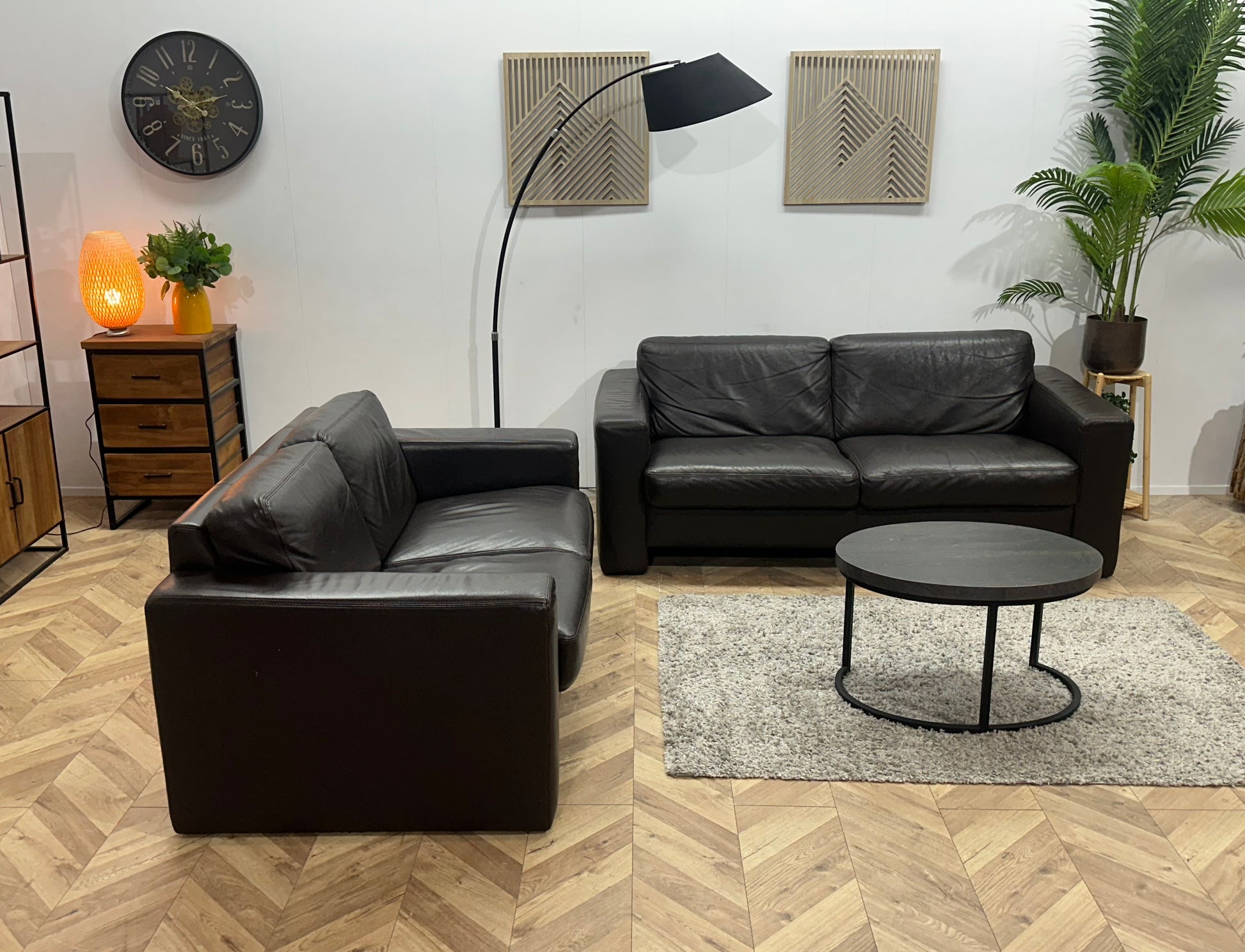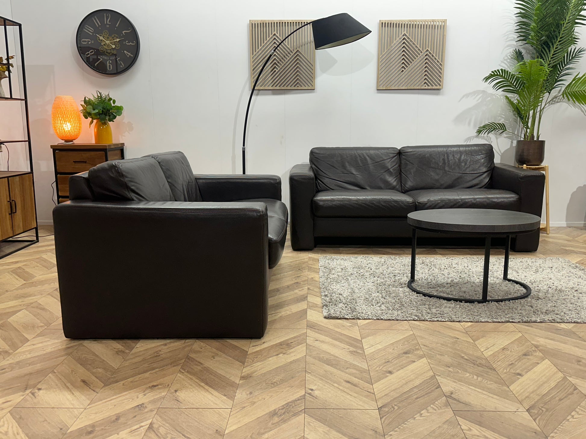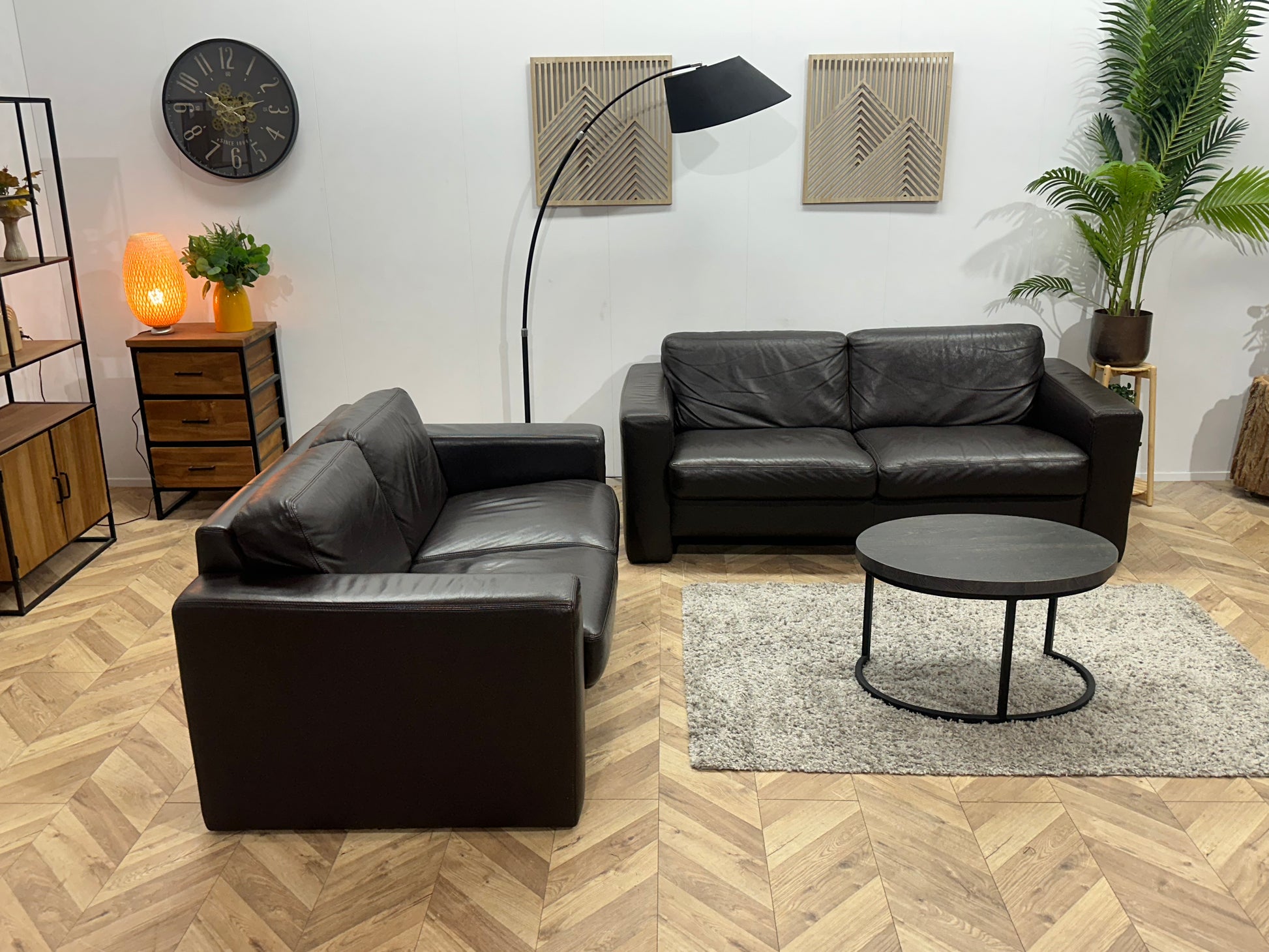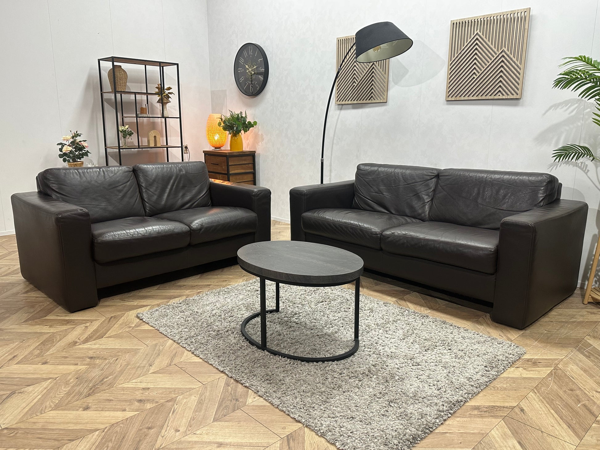 Bruine Echt Lederen Banken Set ~ Vaste Kussens