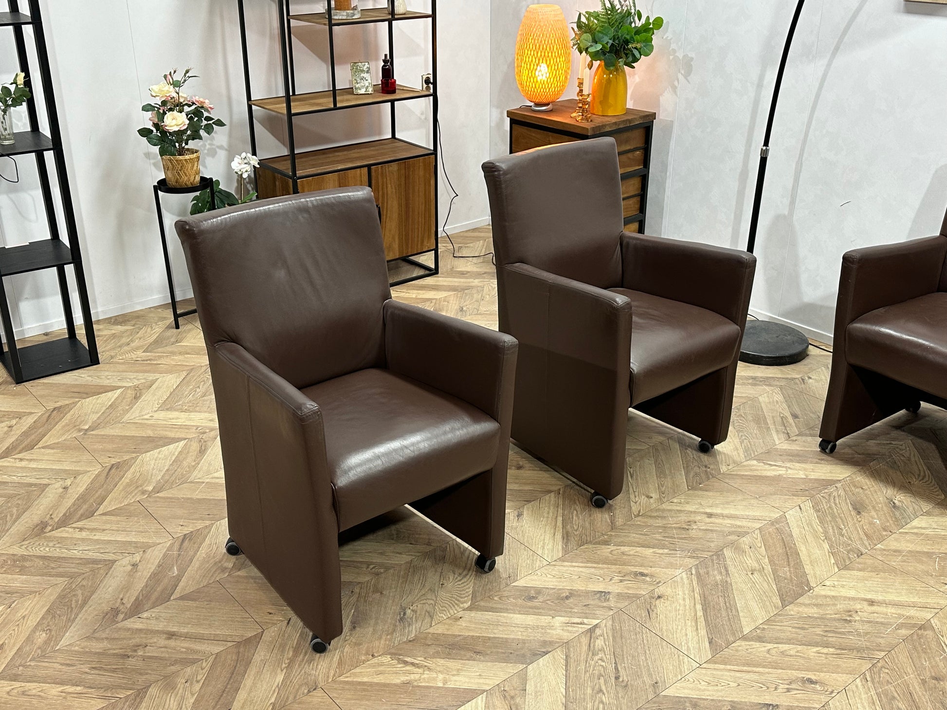 Bruine Echt Lederen Stoelen Set