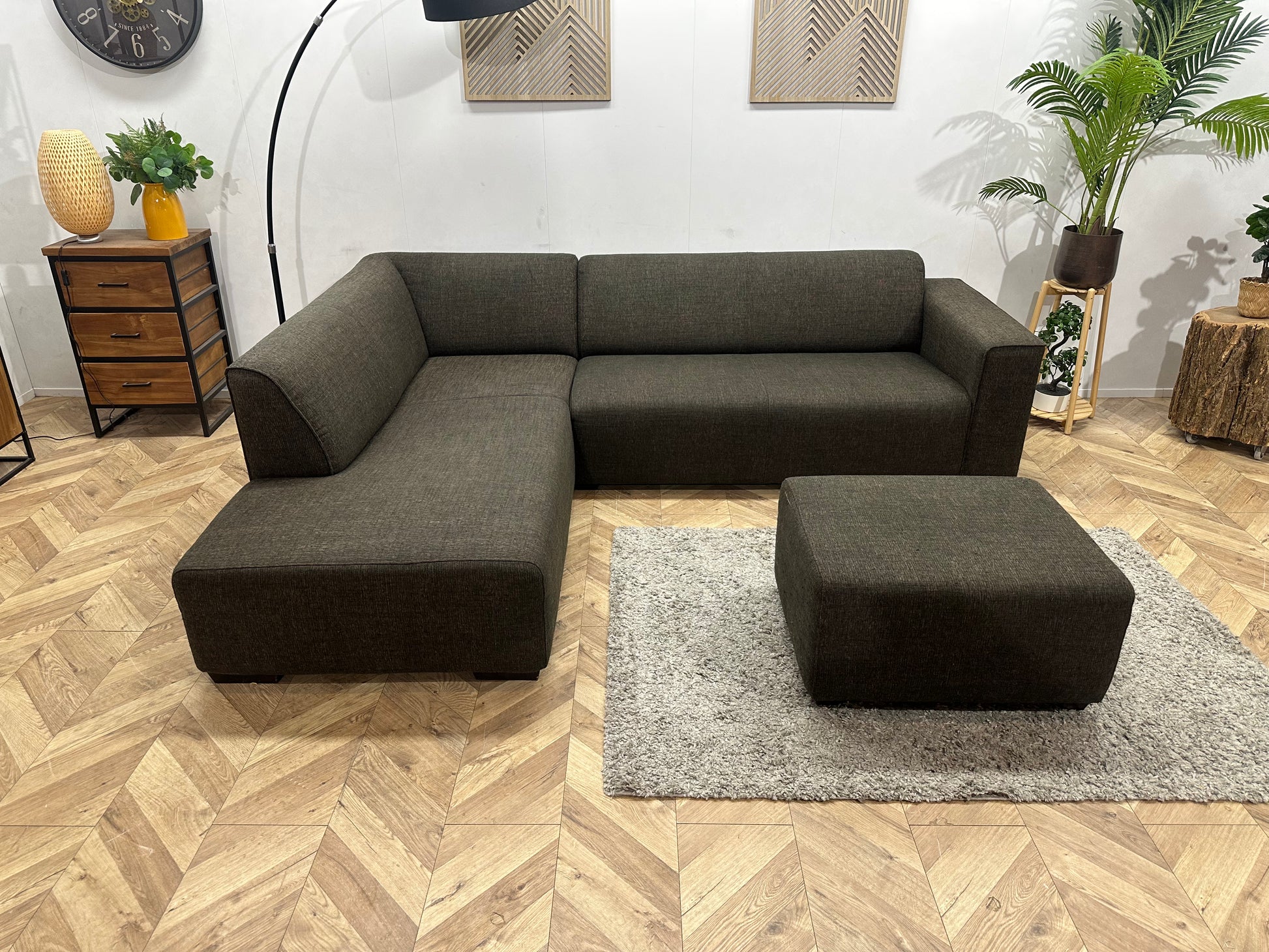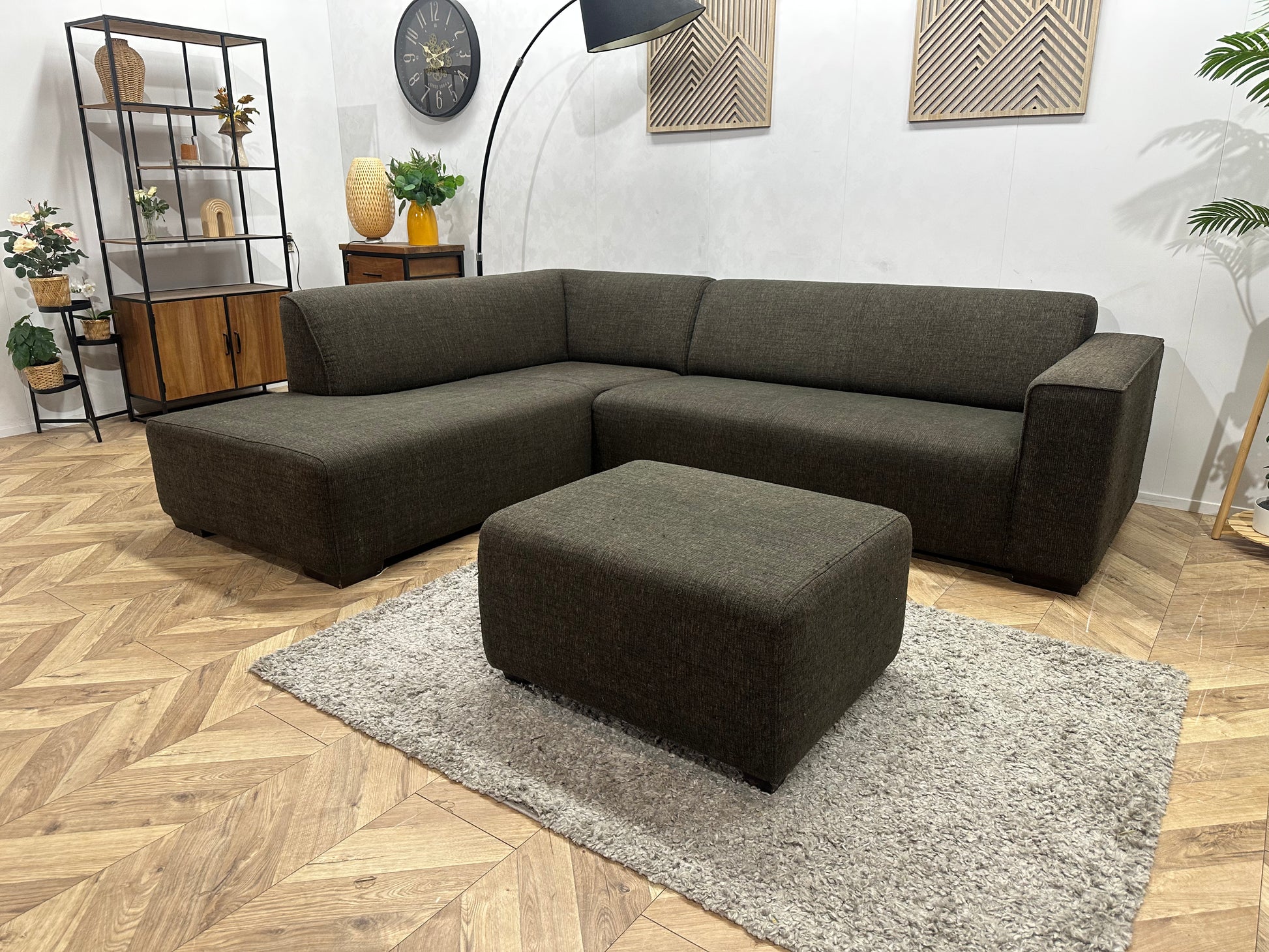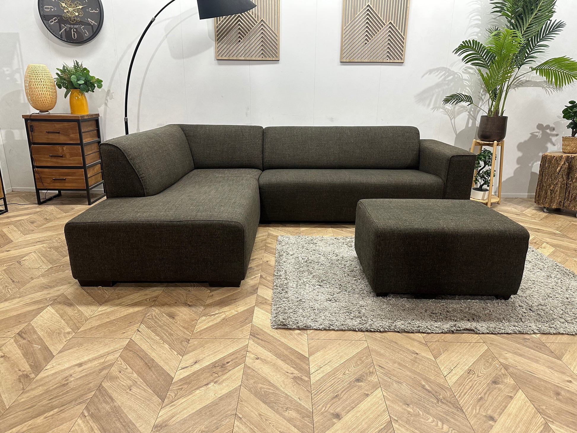 Bruine Hoekbank Inc. Hocker ~ Vaste Kussens