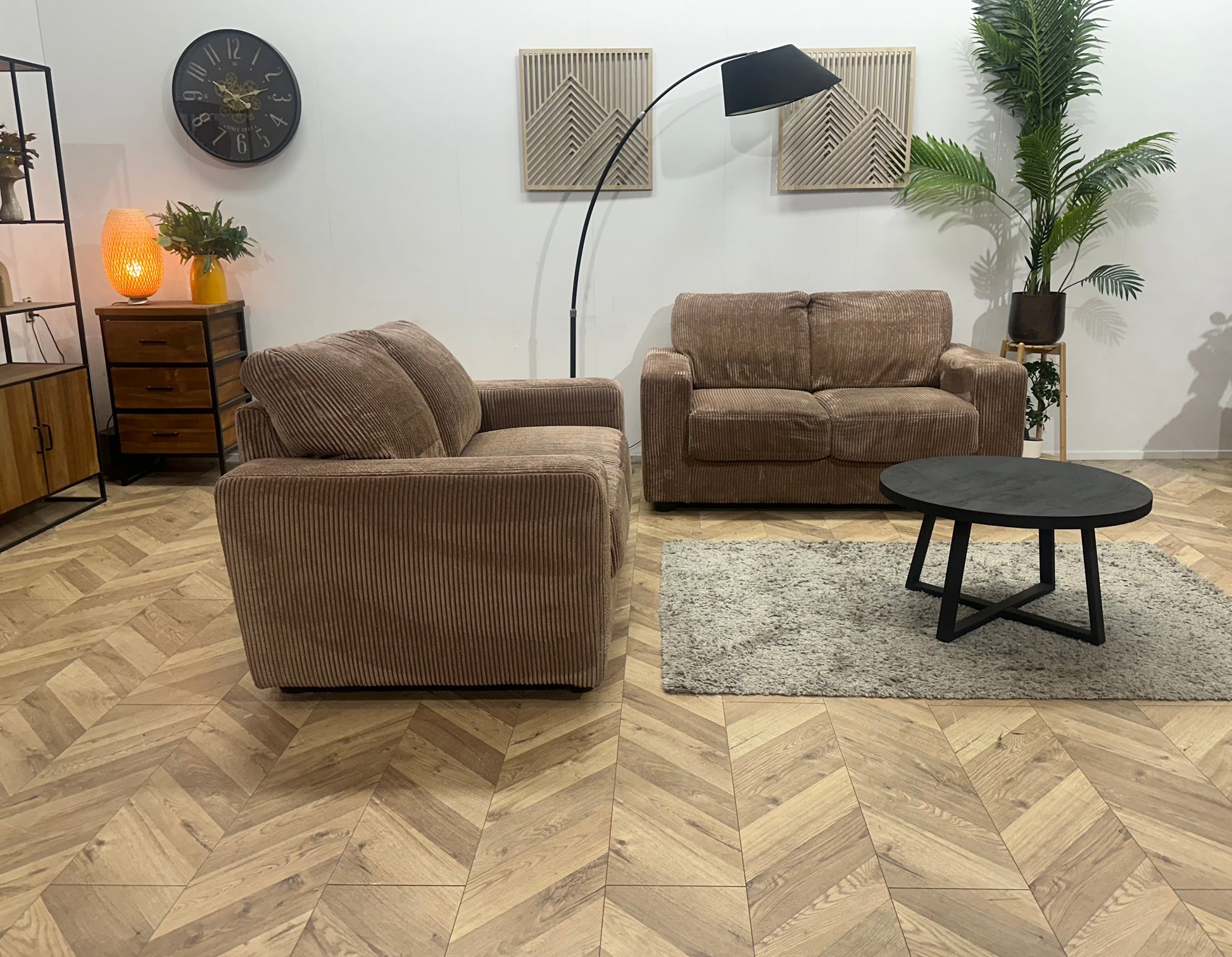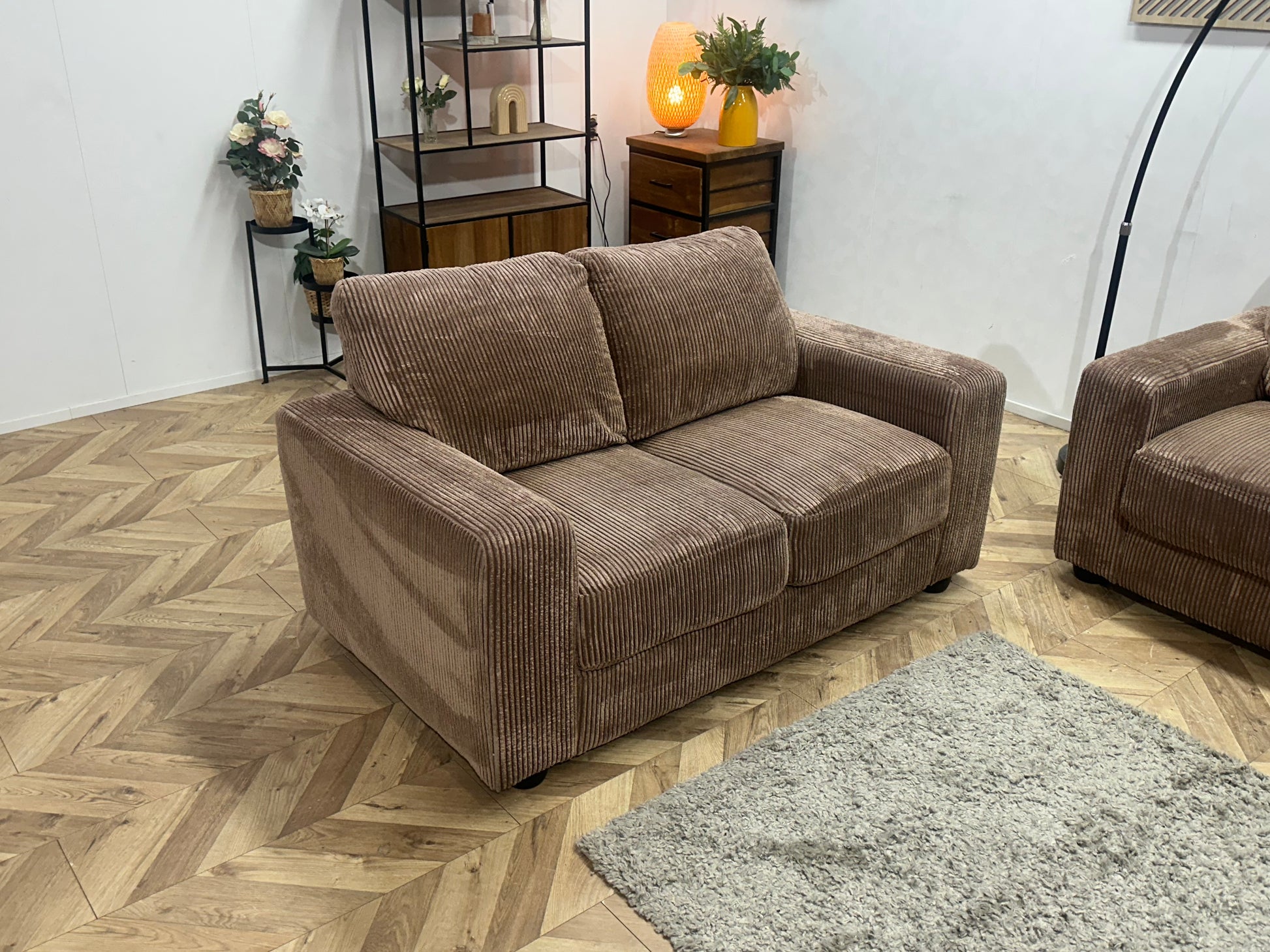 Bruine Ribstof Banken Set ~ Vaste Kussens