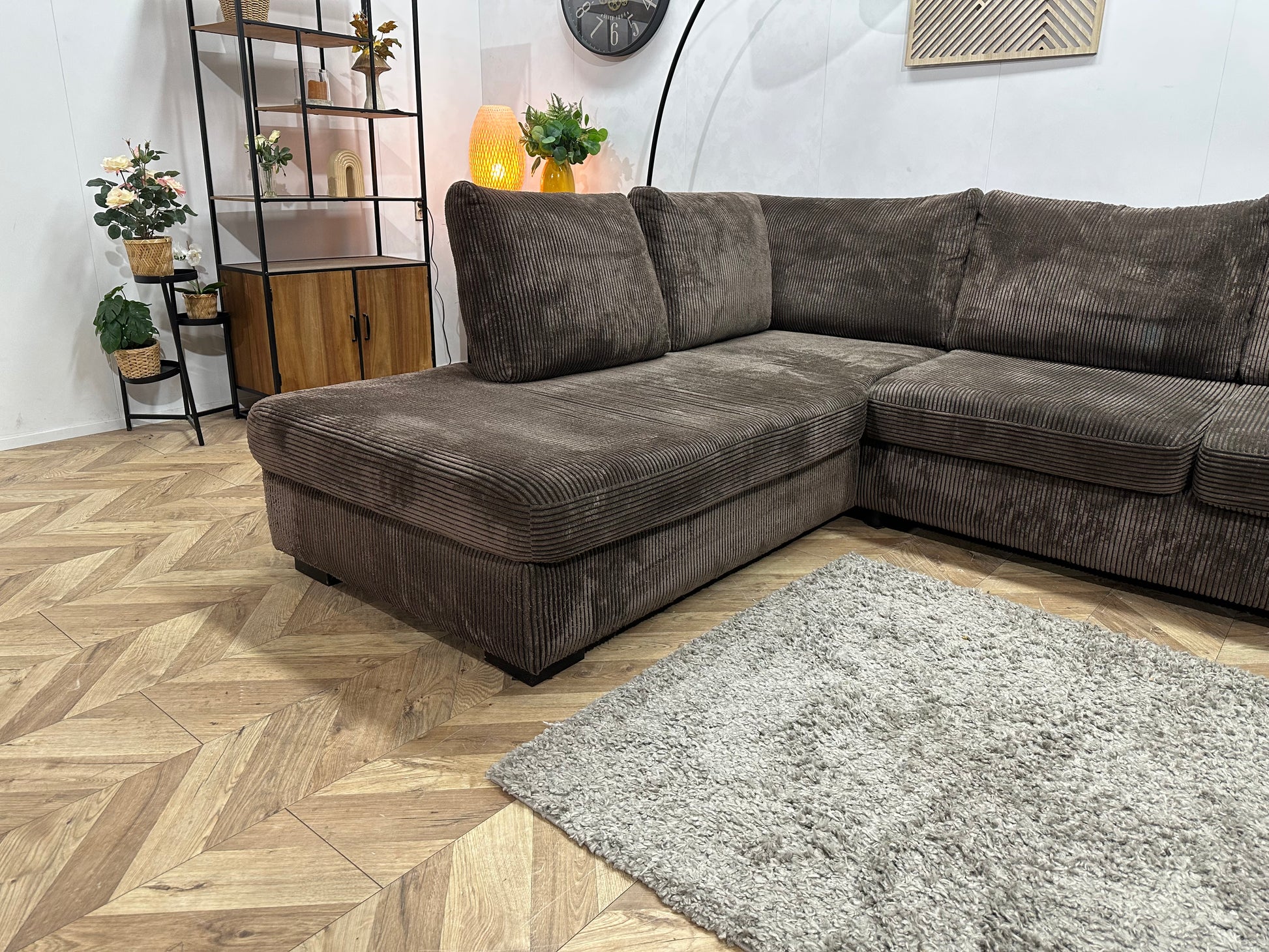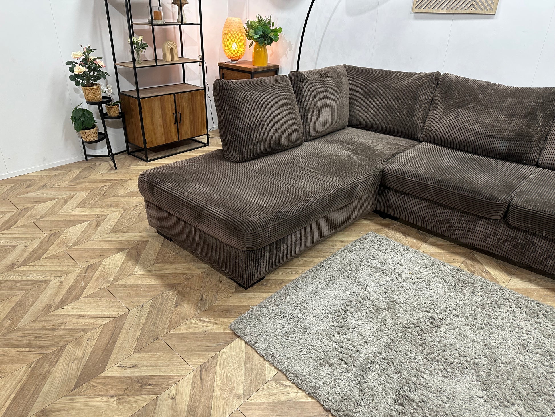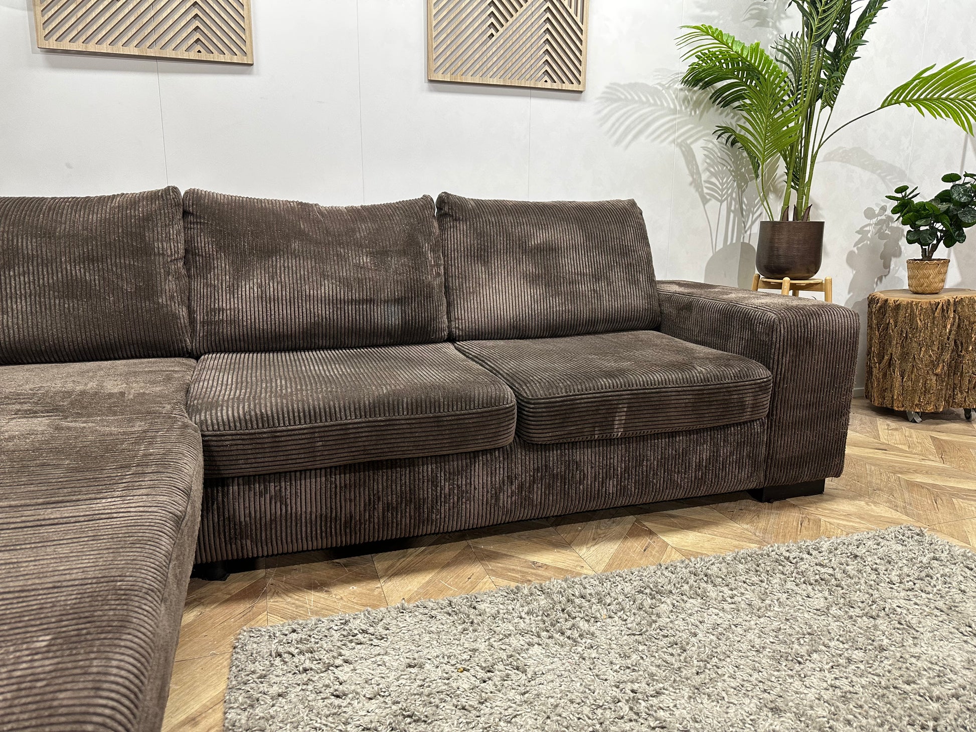 Bruine Ribstof Hoekbank ~ Losse Kussens Met Afneembare Hoezen