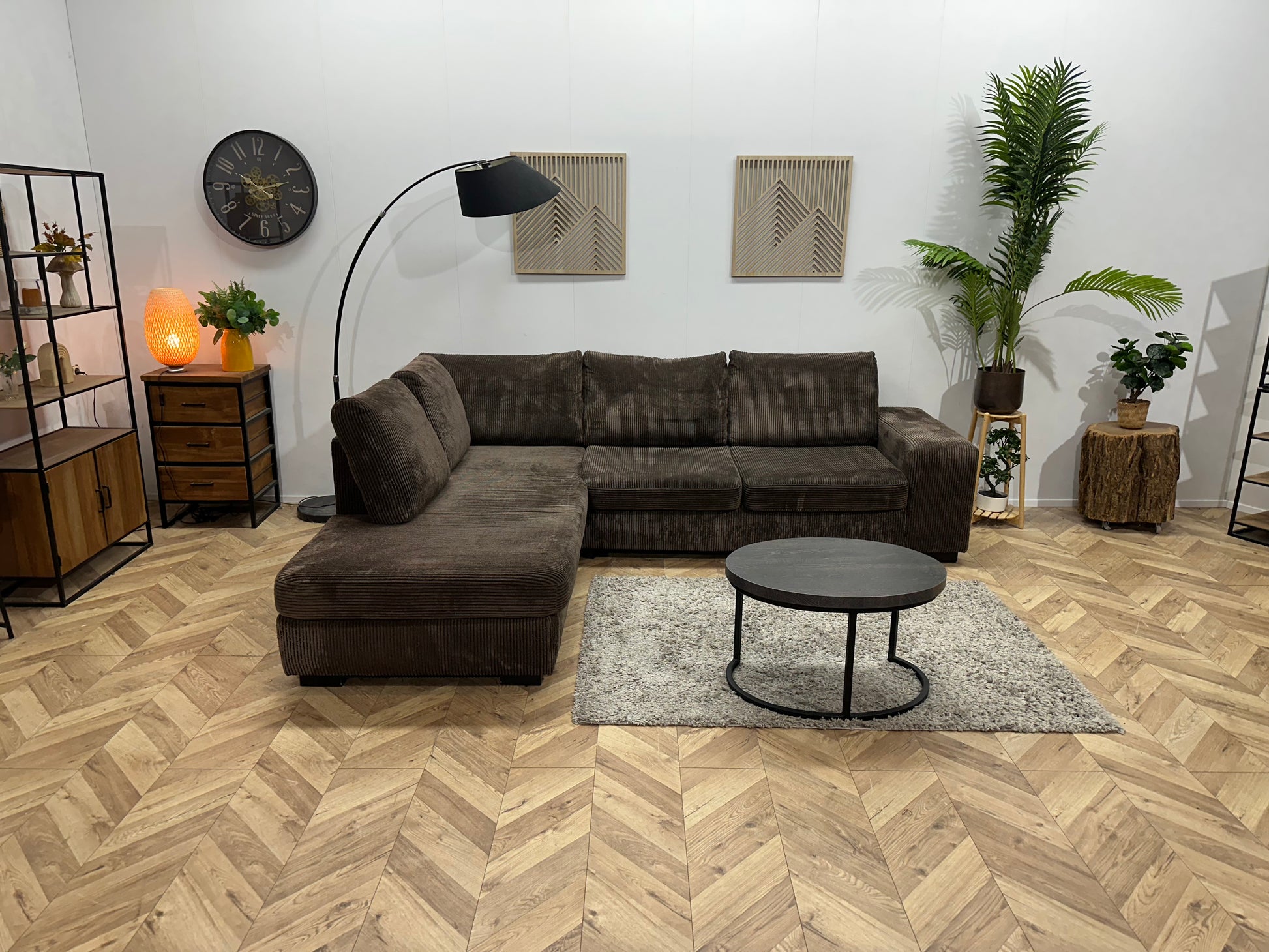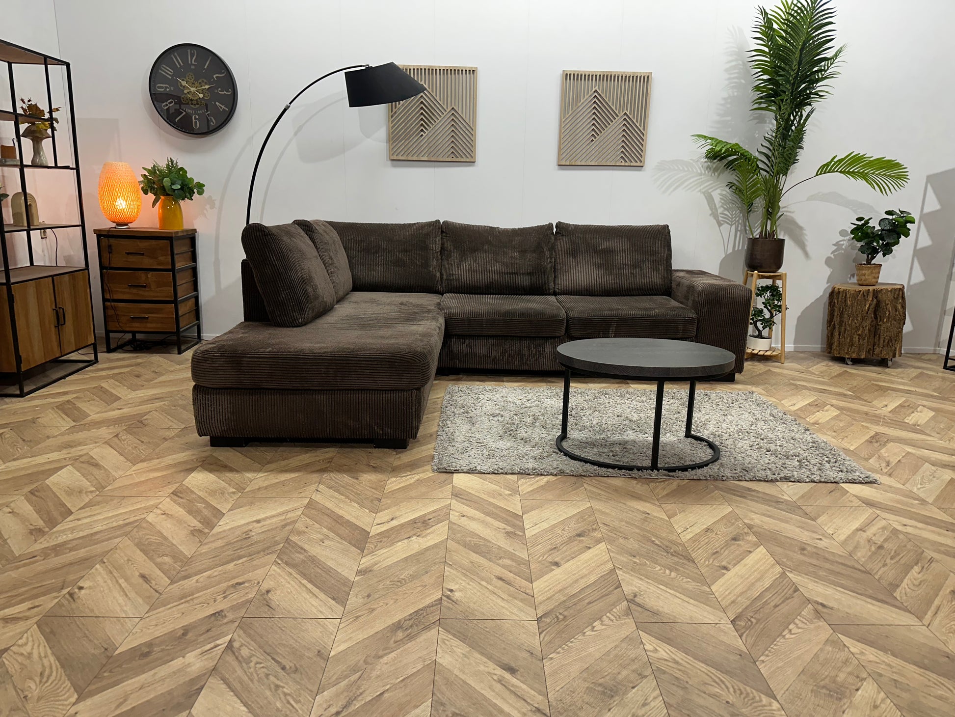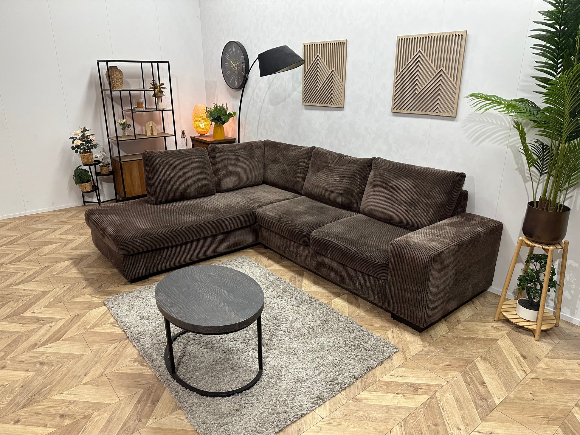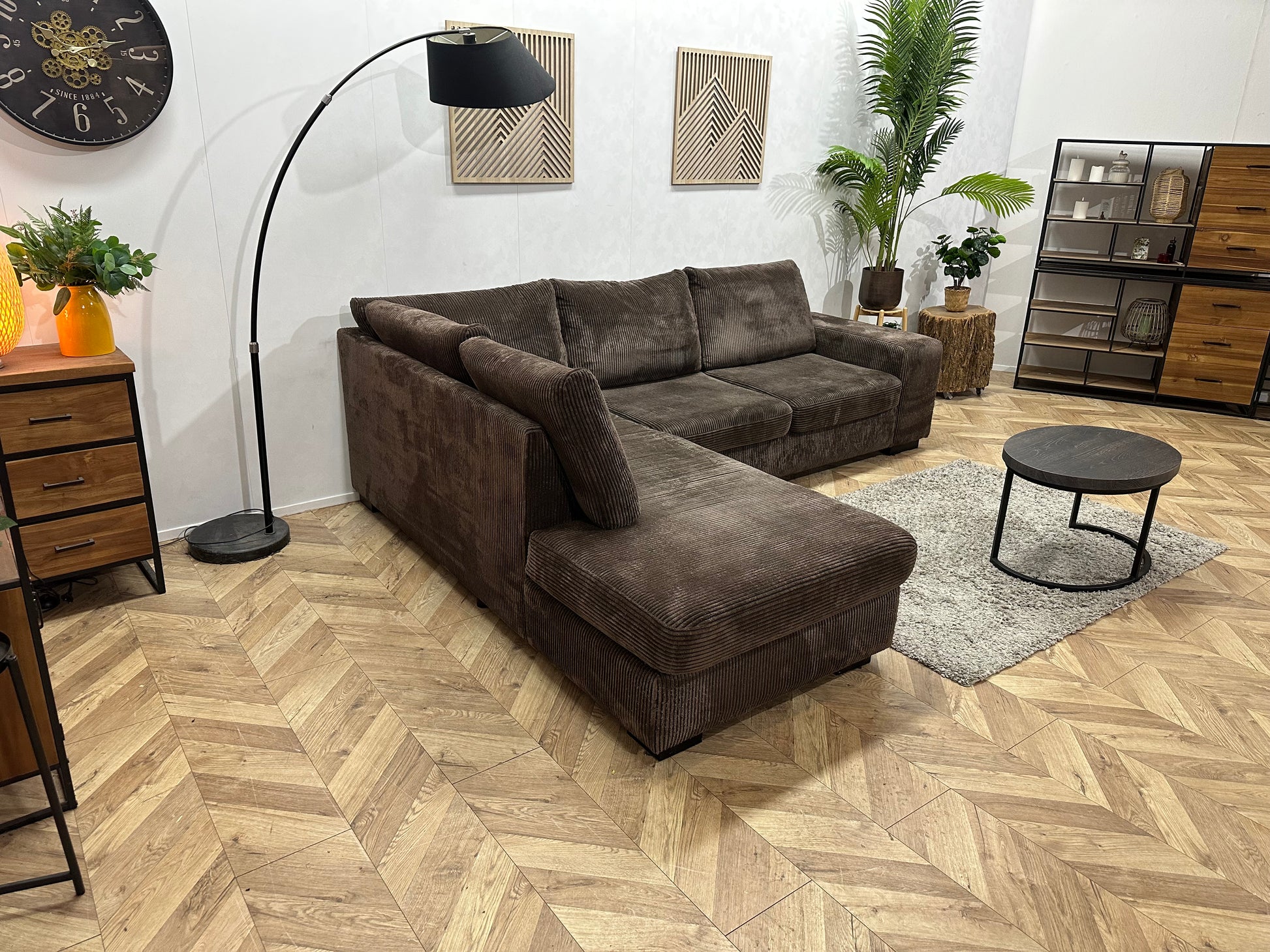 Bruine Ribstof Hoekbank ~ Losse Kussens Met Afneembare Hoezen