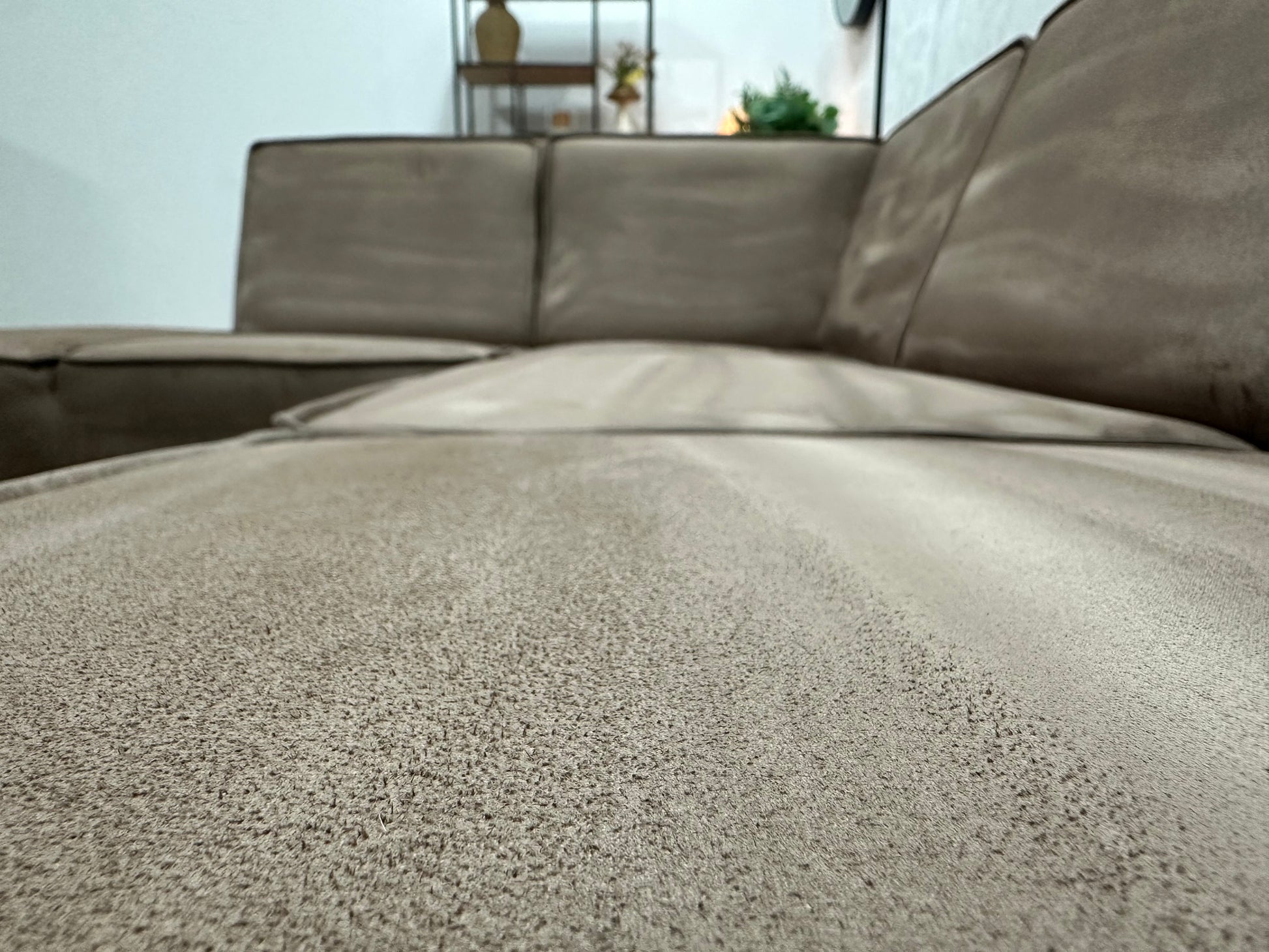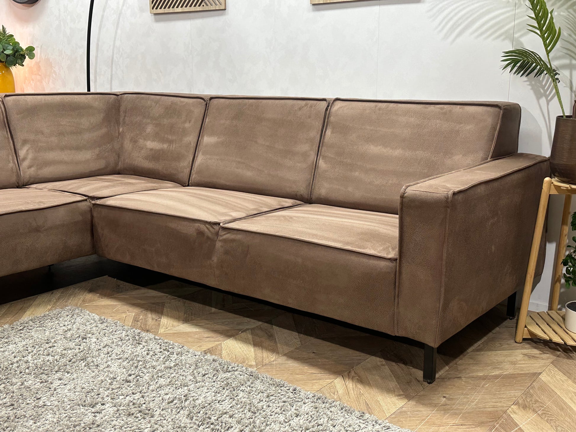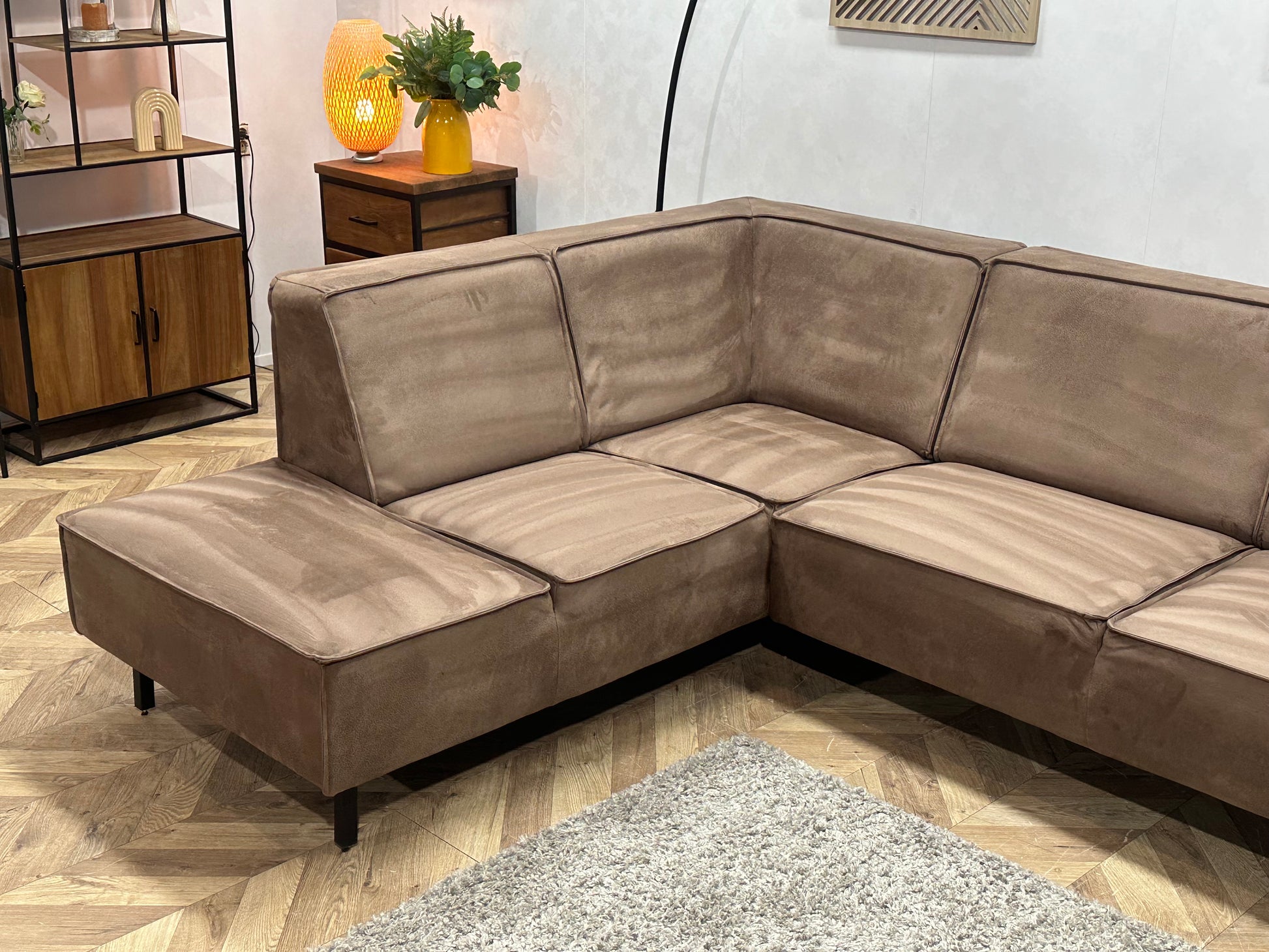Bruine Suède Stoffen Hoekbank ~ Vaste Kussens
