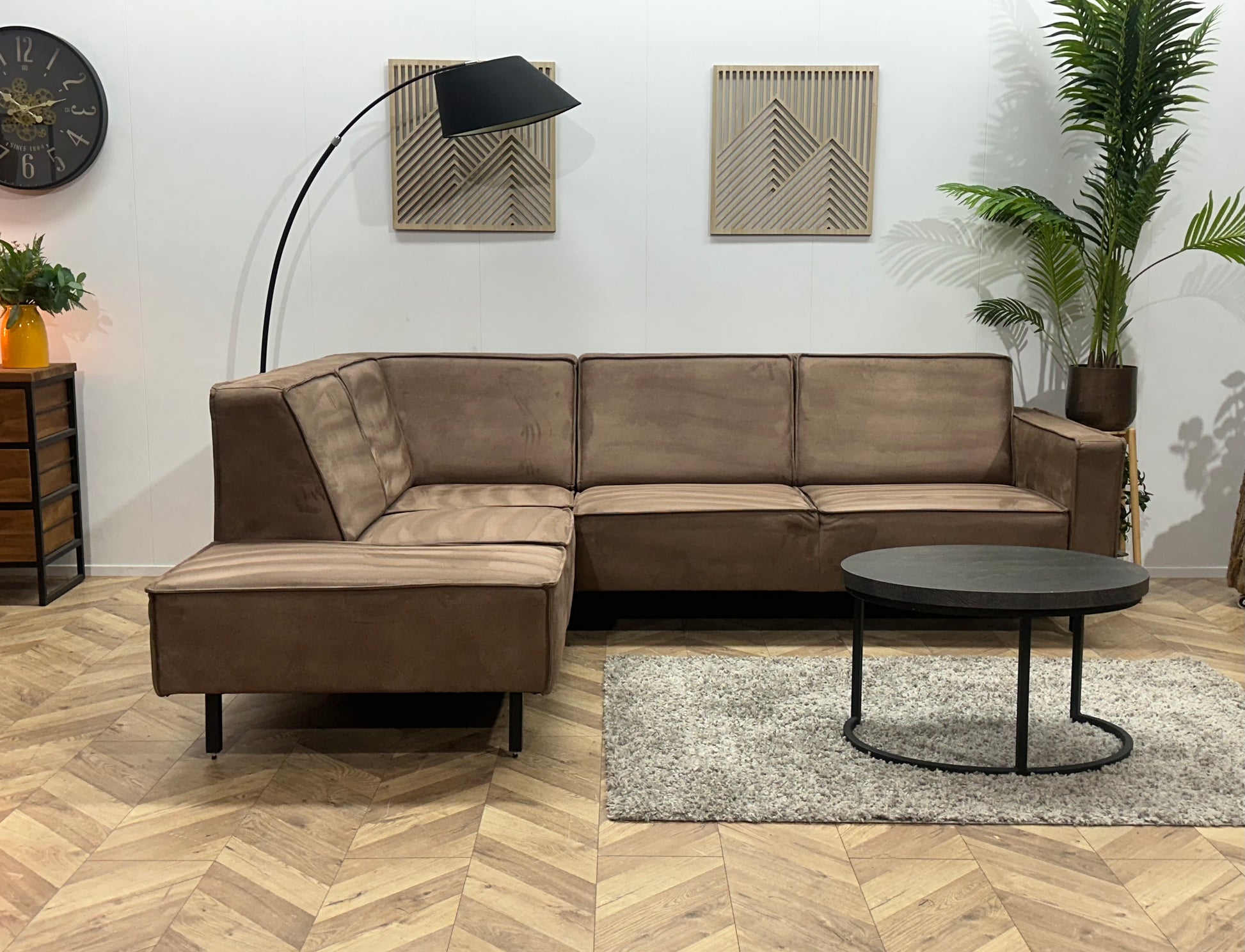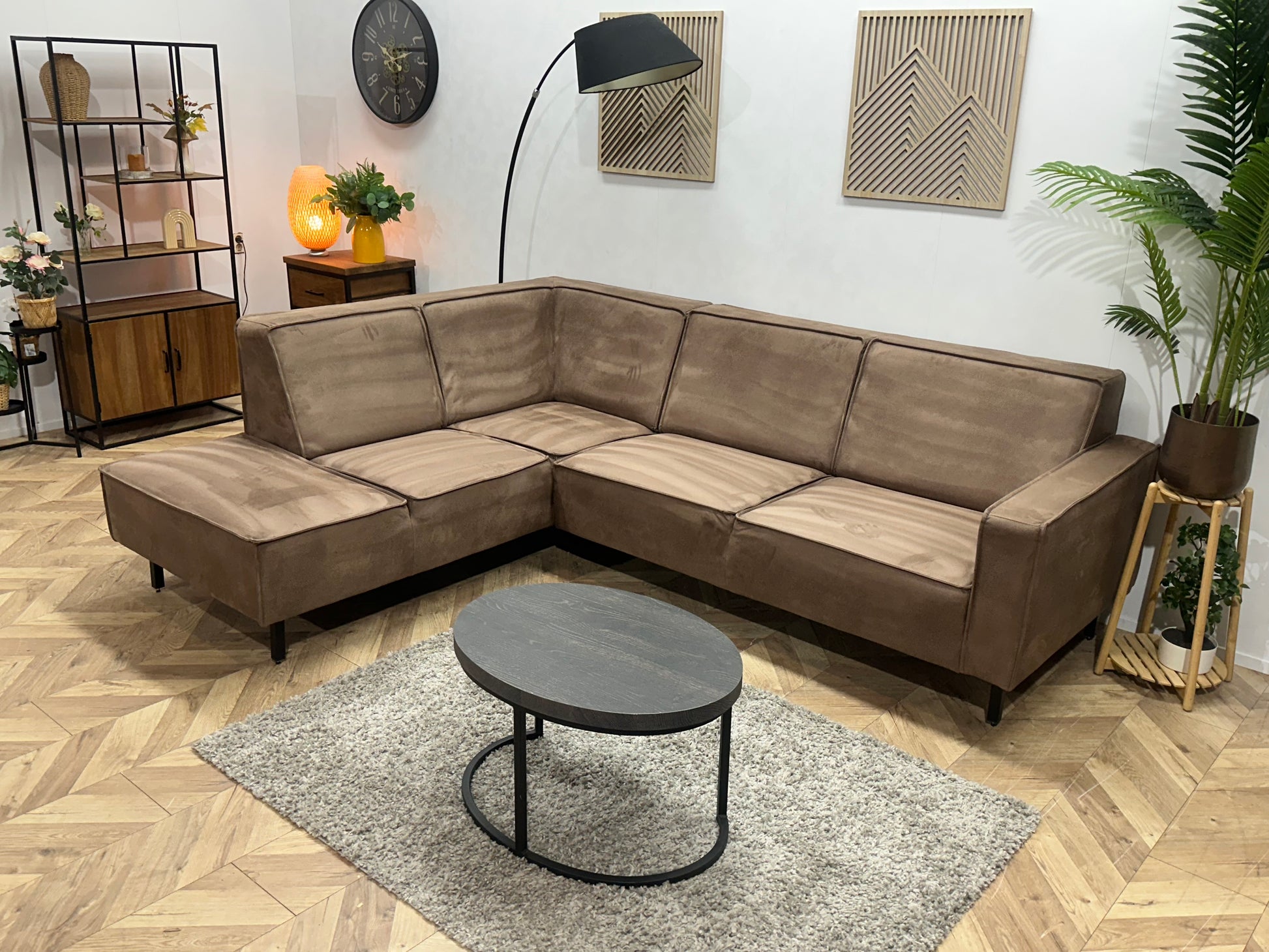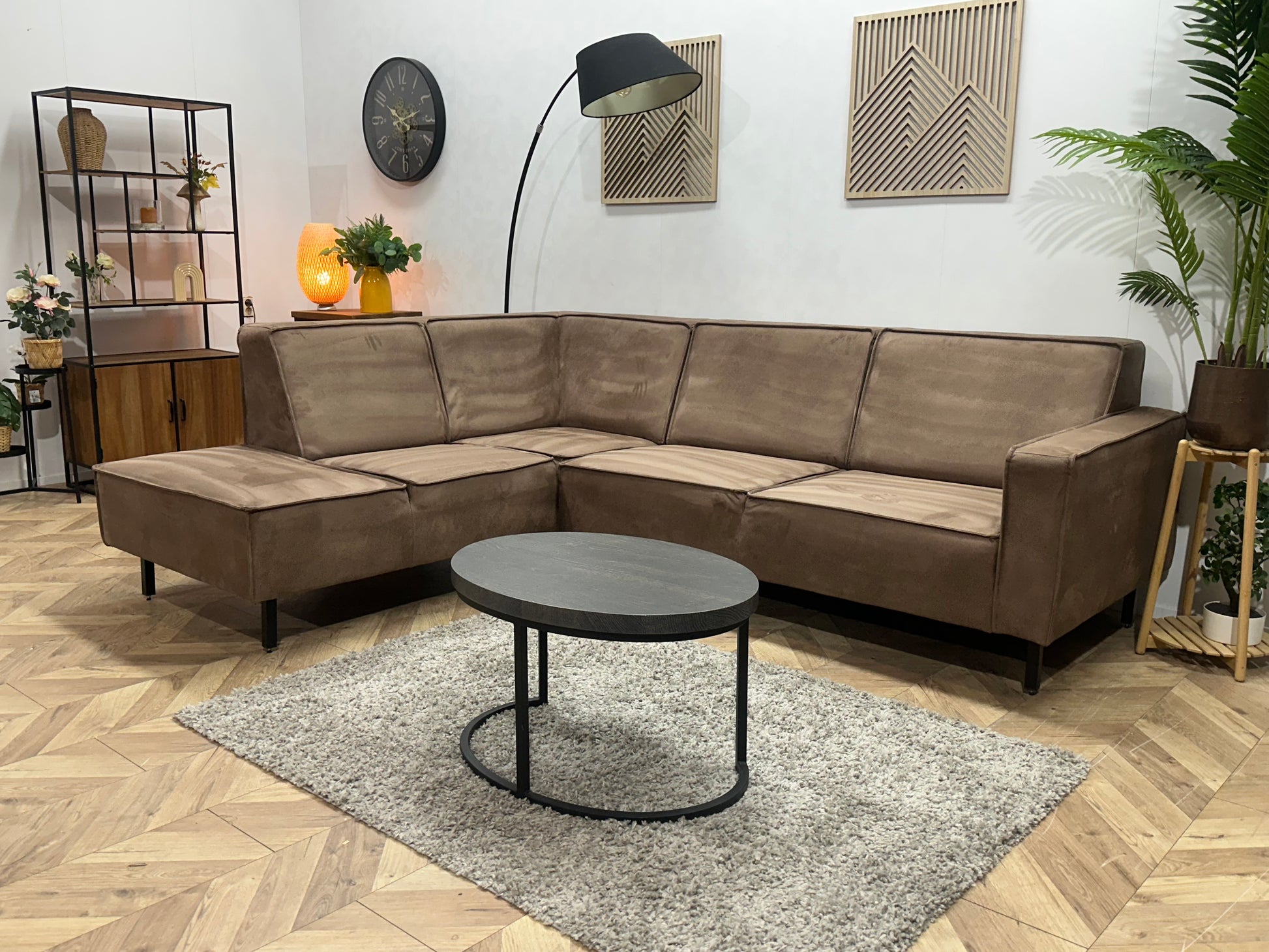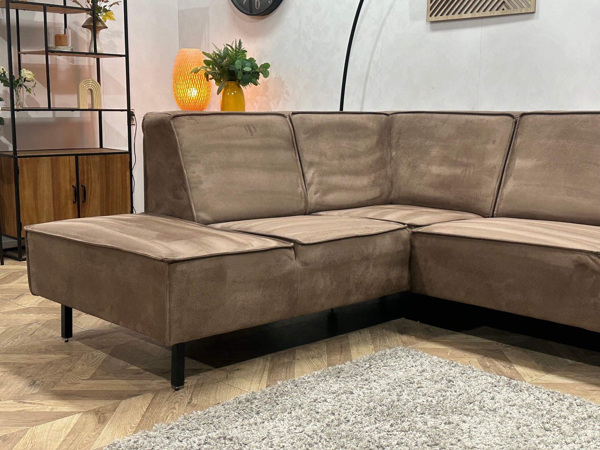 Bruine Suède Stoffen Hoekbank ~ Vaste Kussens
