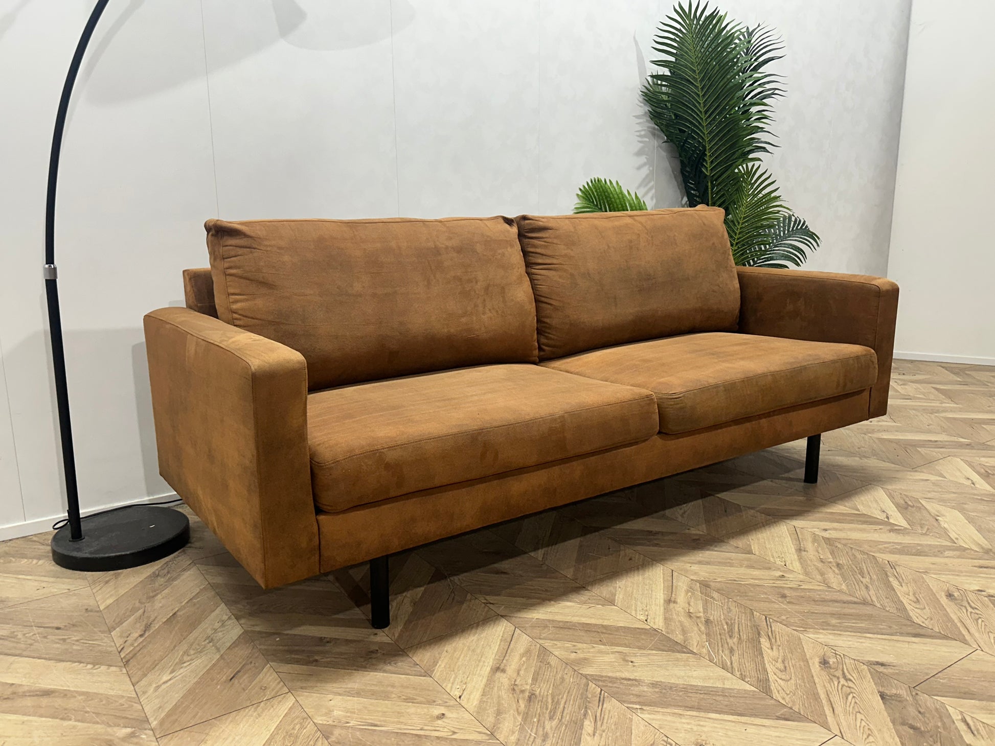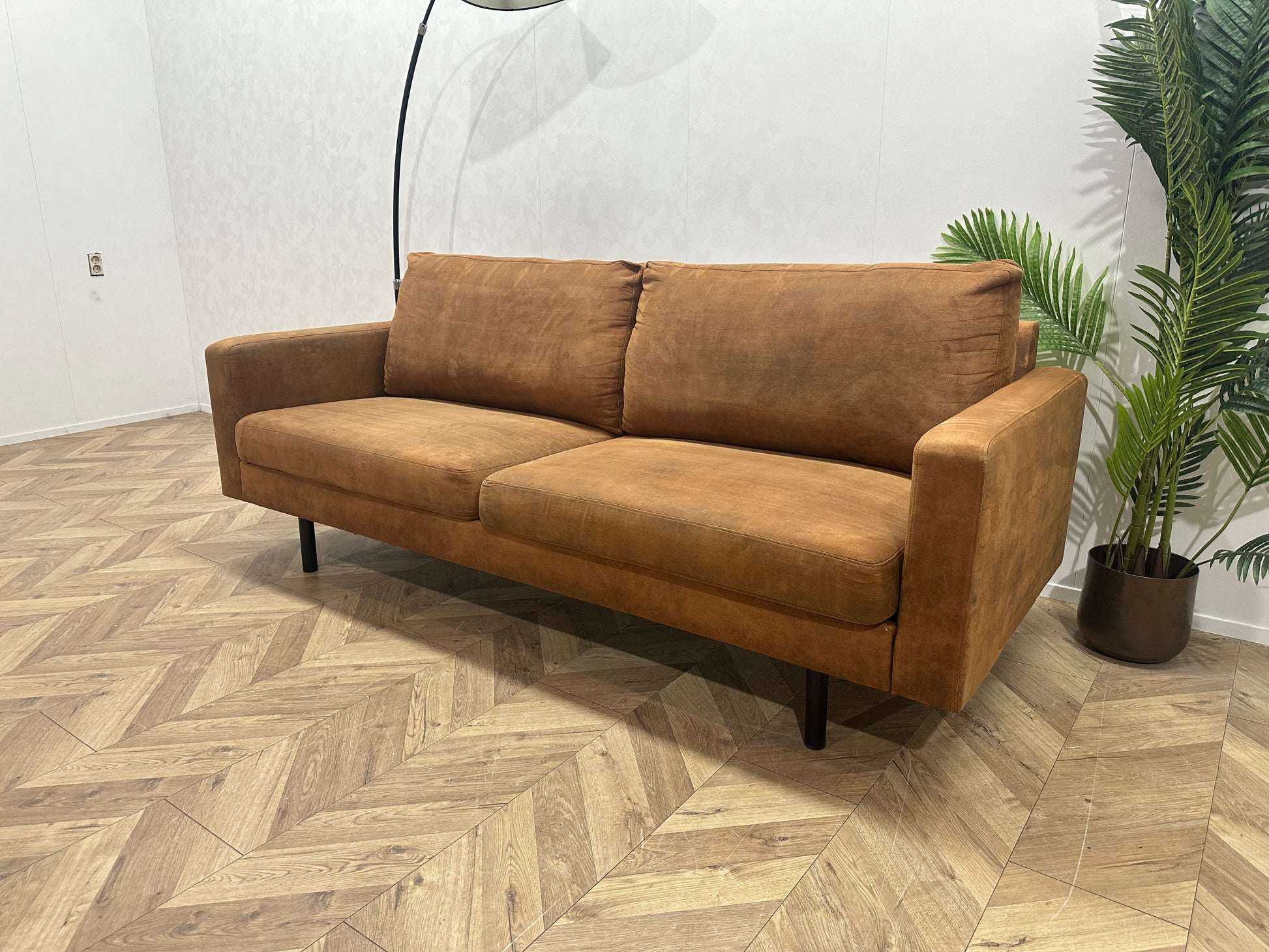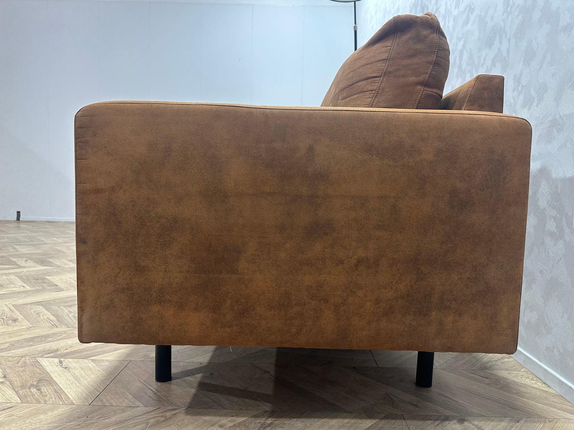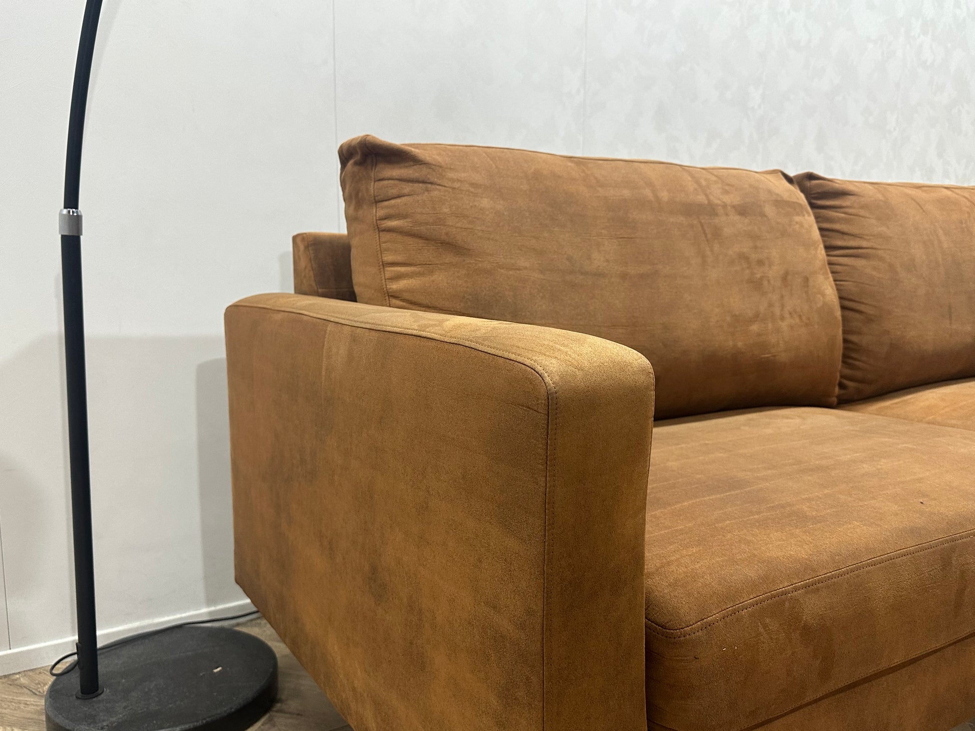 Cognac Bruine Suède Lederen 2.5-Zits Bank ~ Losse Kussens Met Afneembare Hoezen