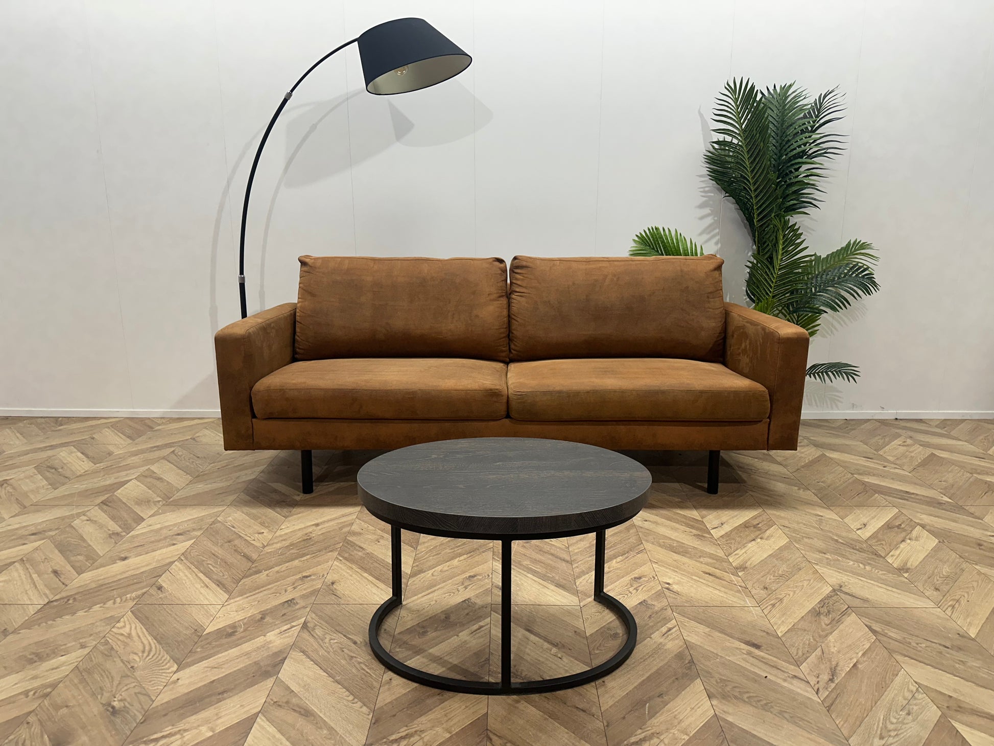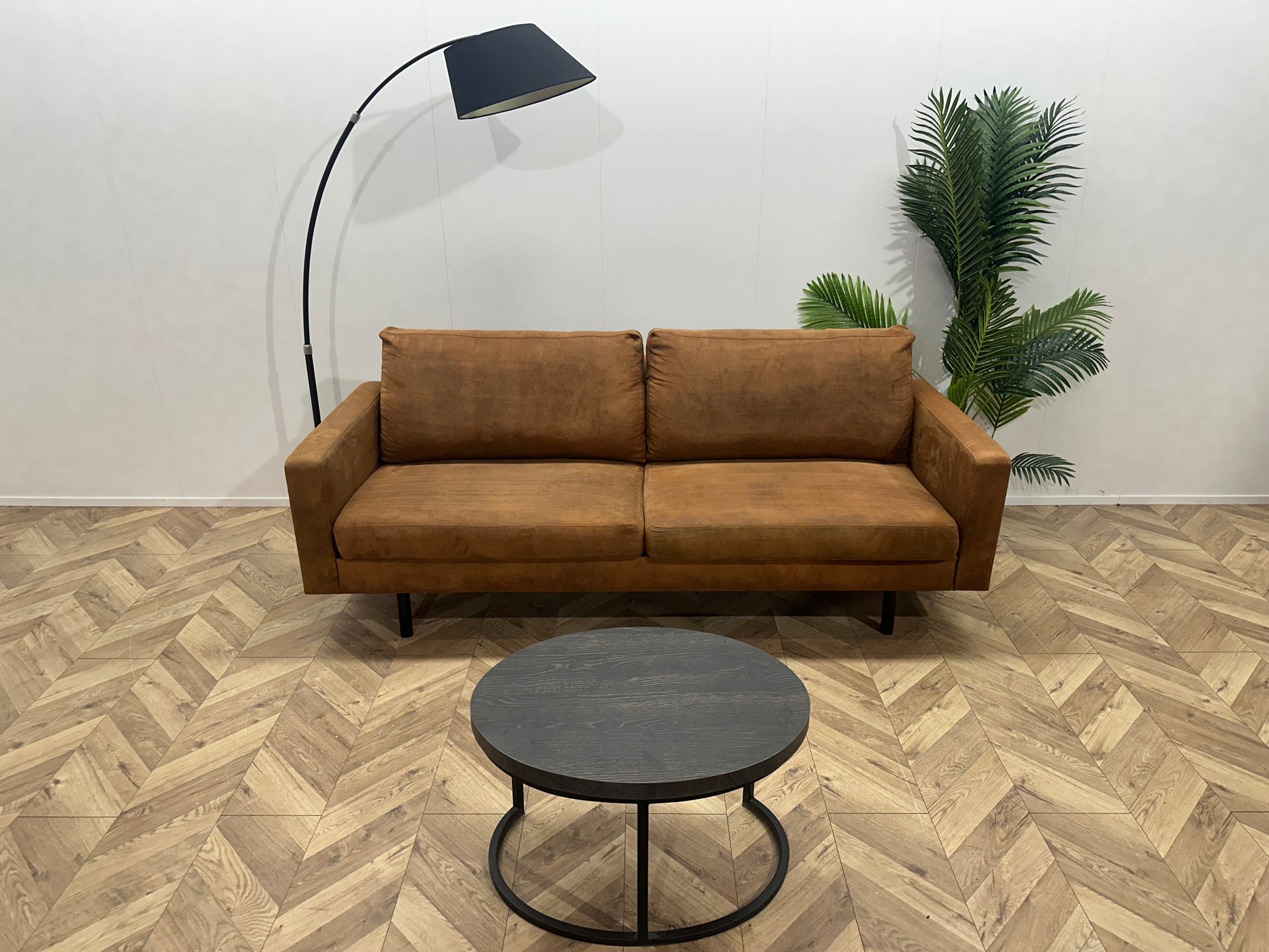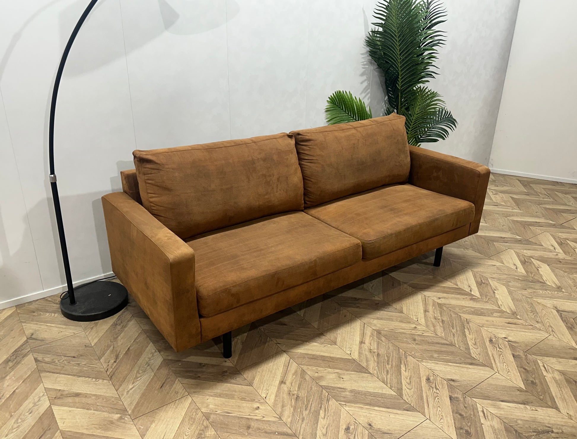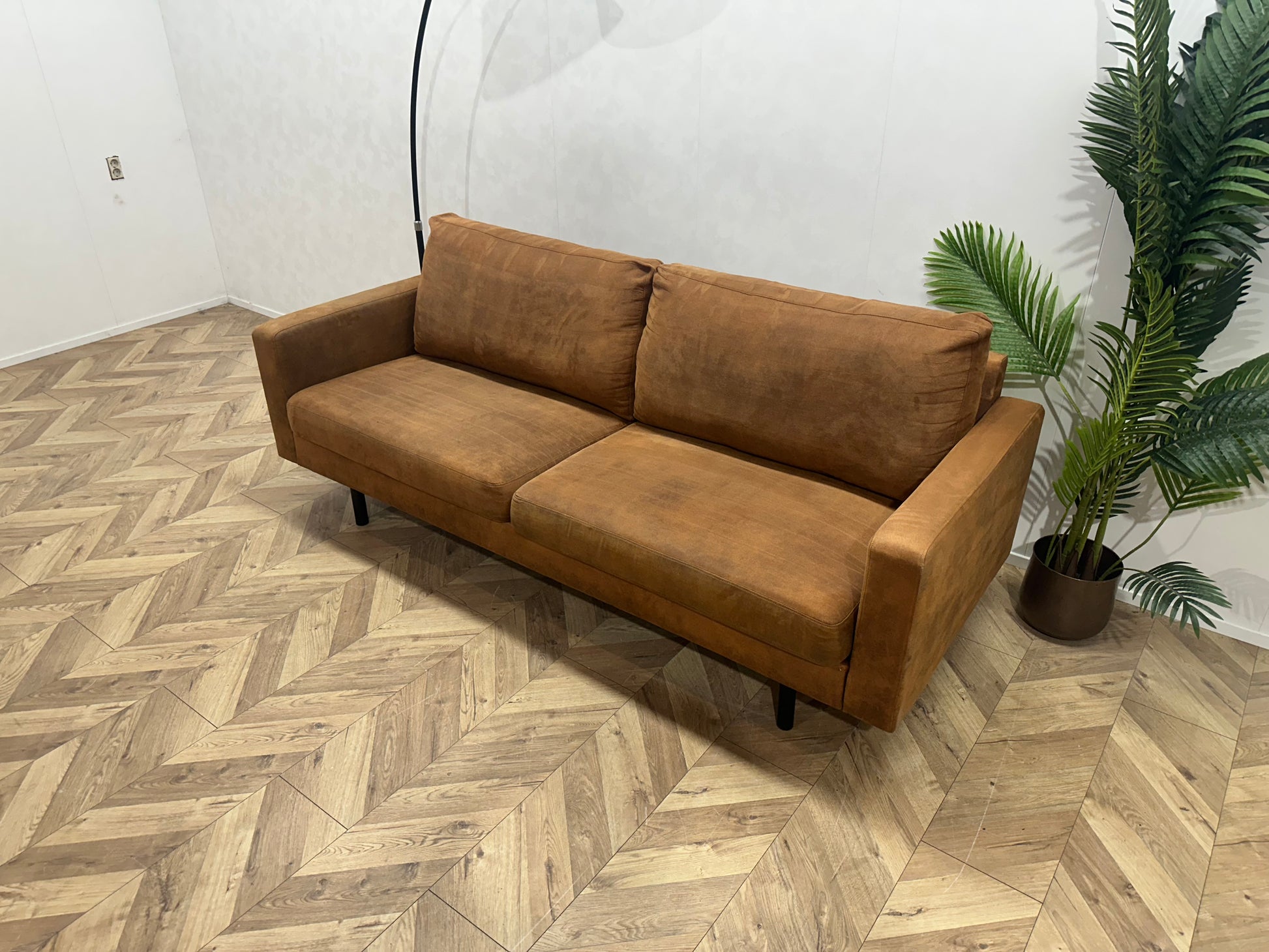 Cognac Bruine Suède Lederen 2.5-Zits Bank ~ Losse Kussens Met Afneembare Hoezen