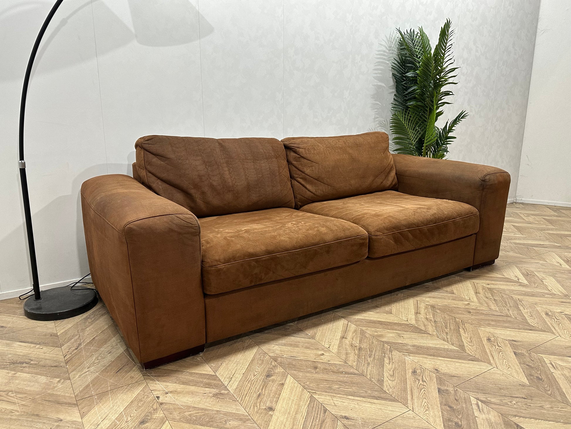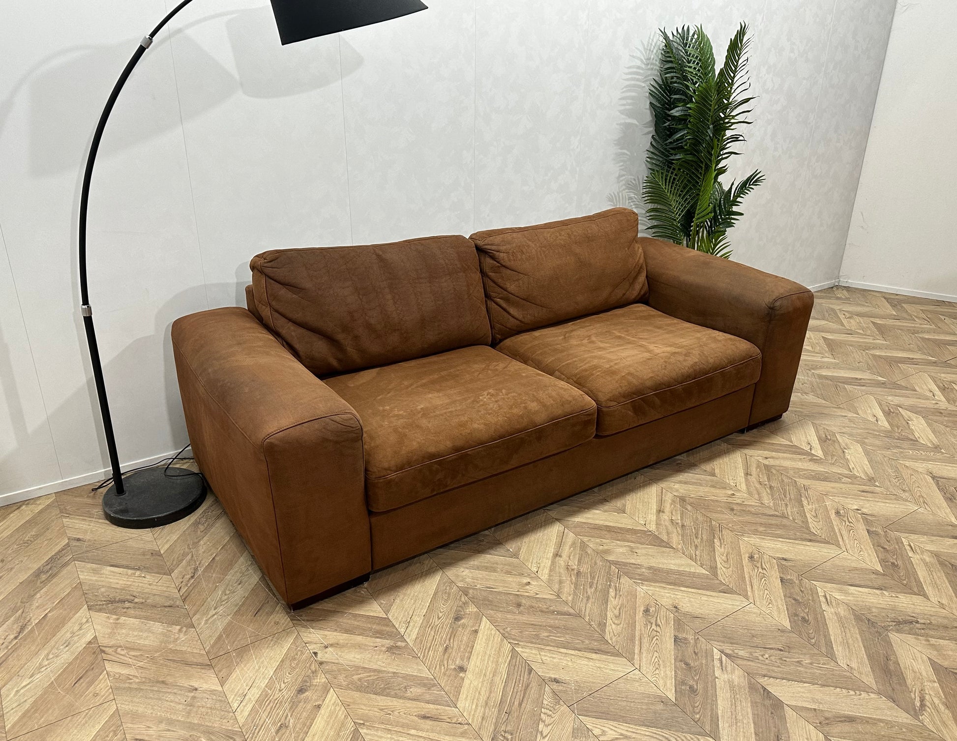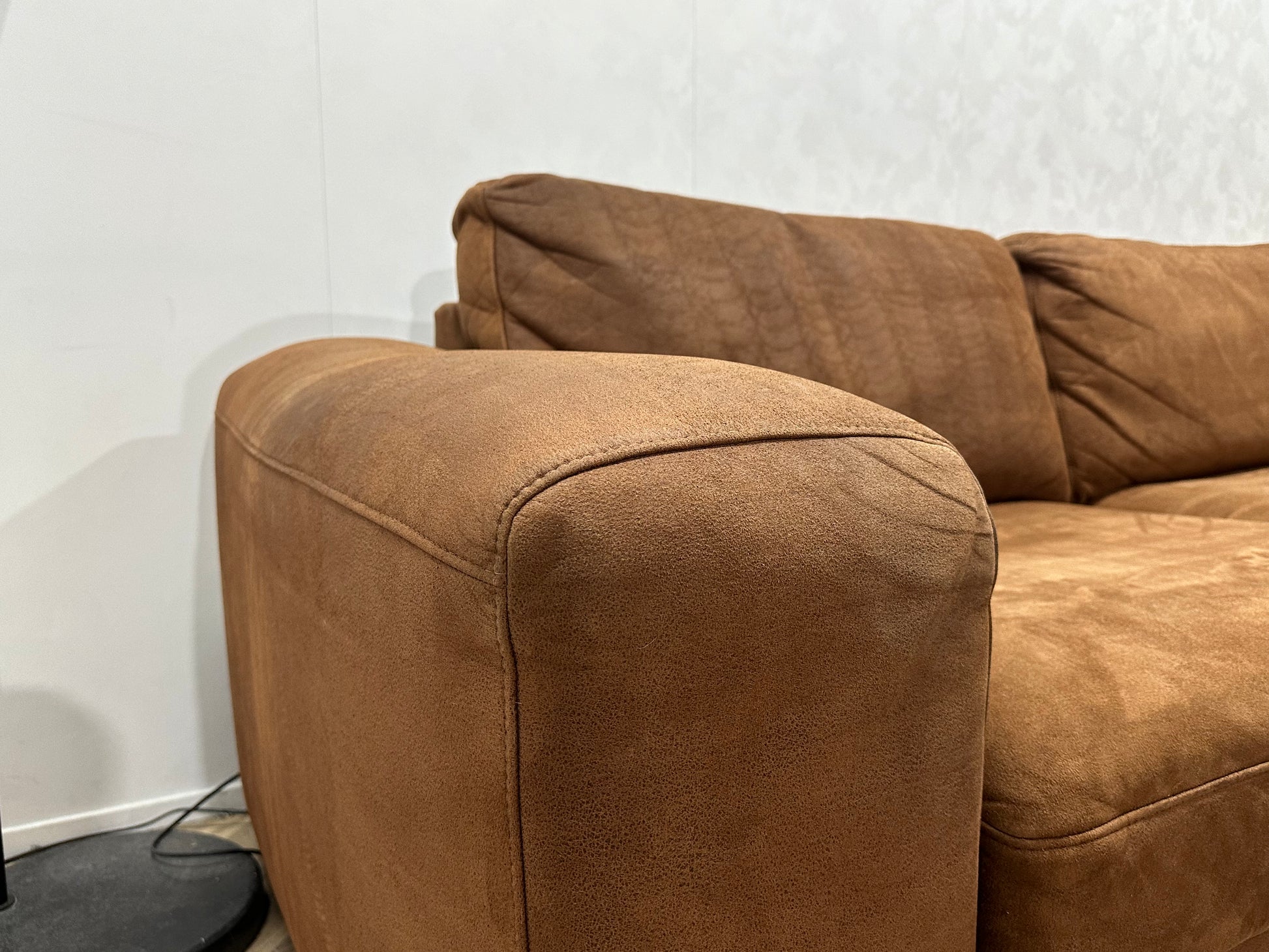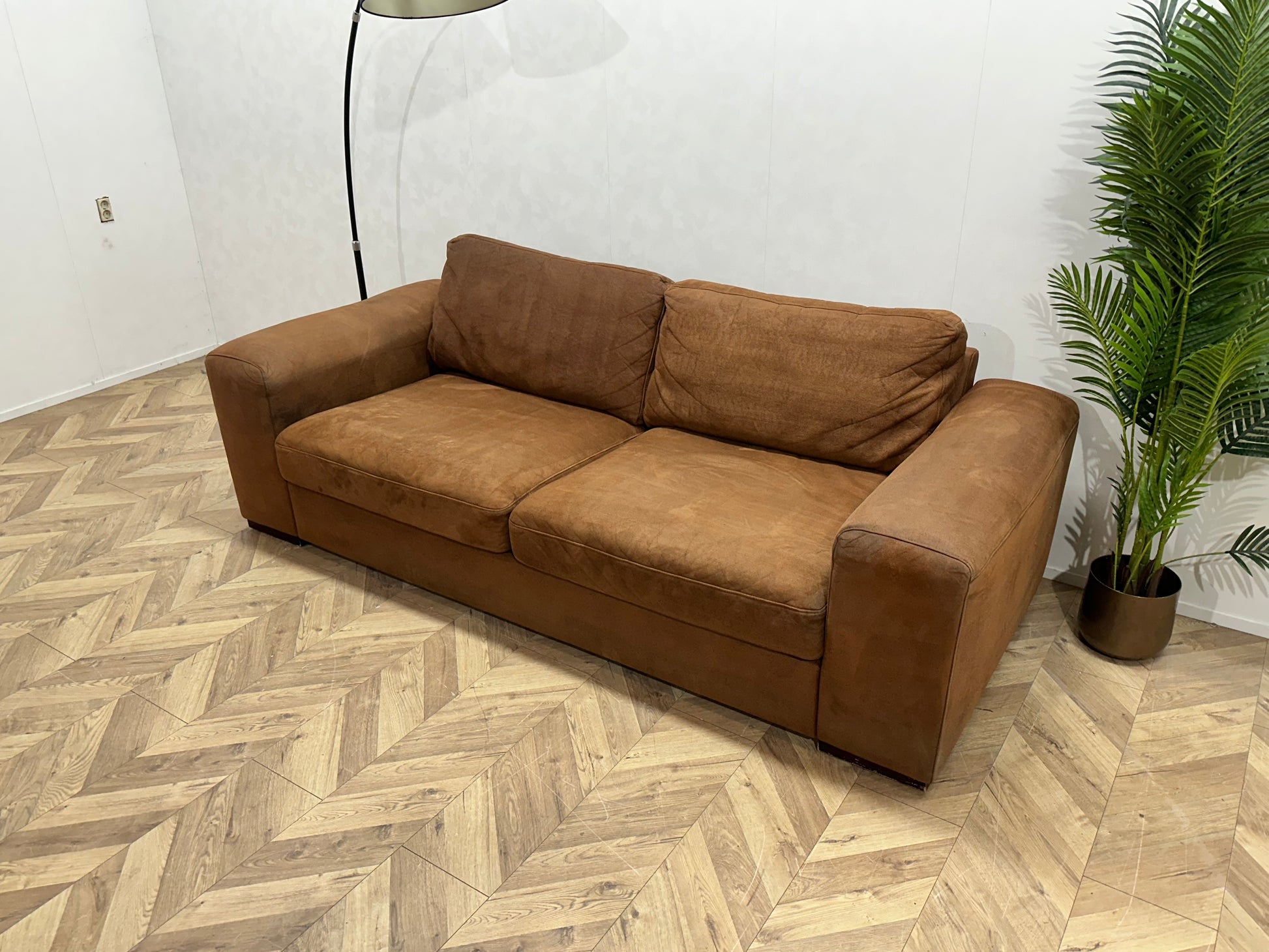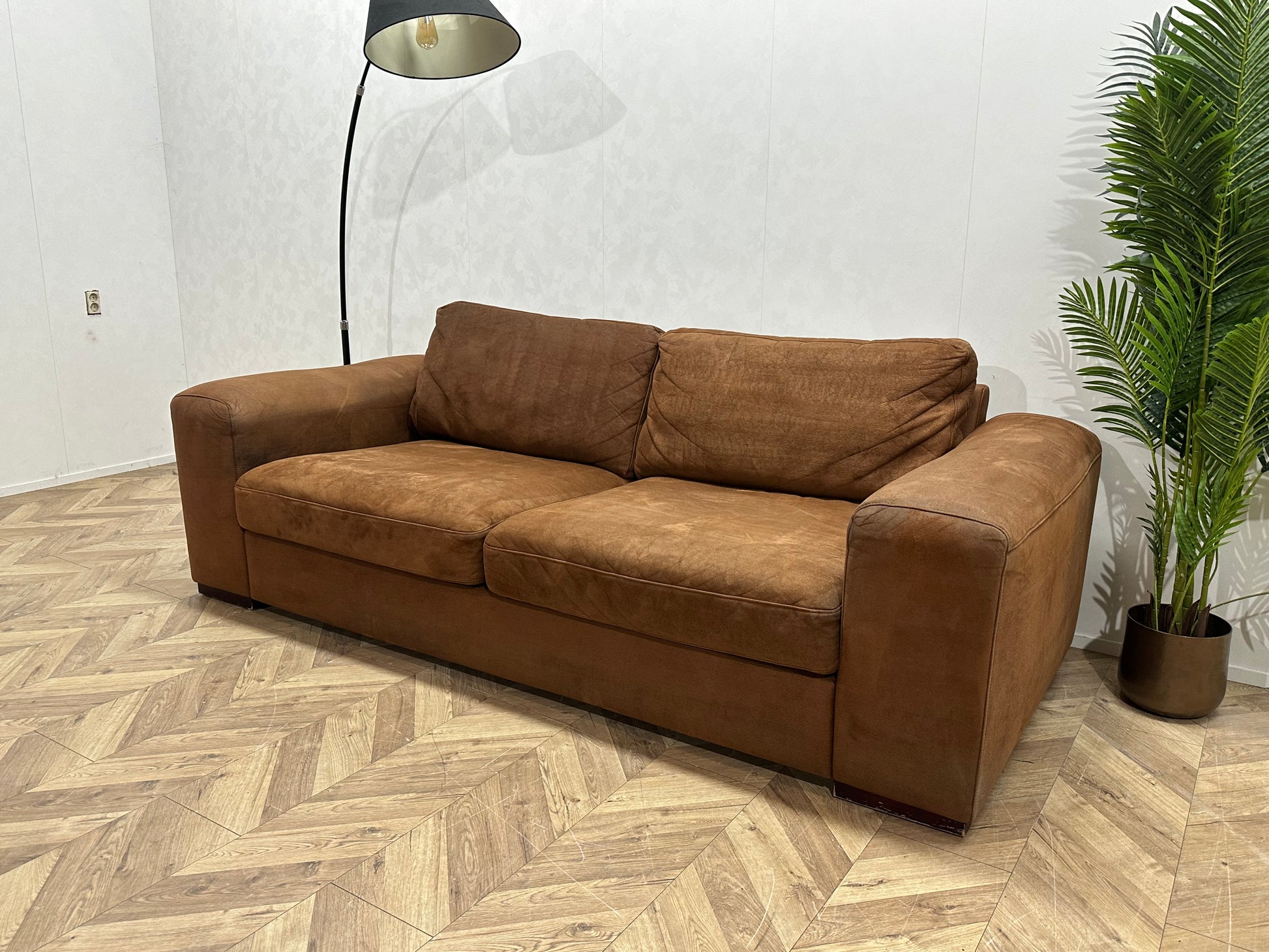 Cognac Bruine Suède Lederen 2.5-Zits Bank ~ Losse Kussens Met Afneembare Hoezen