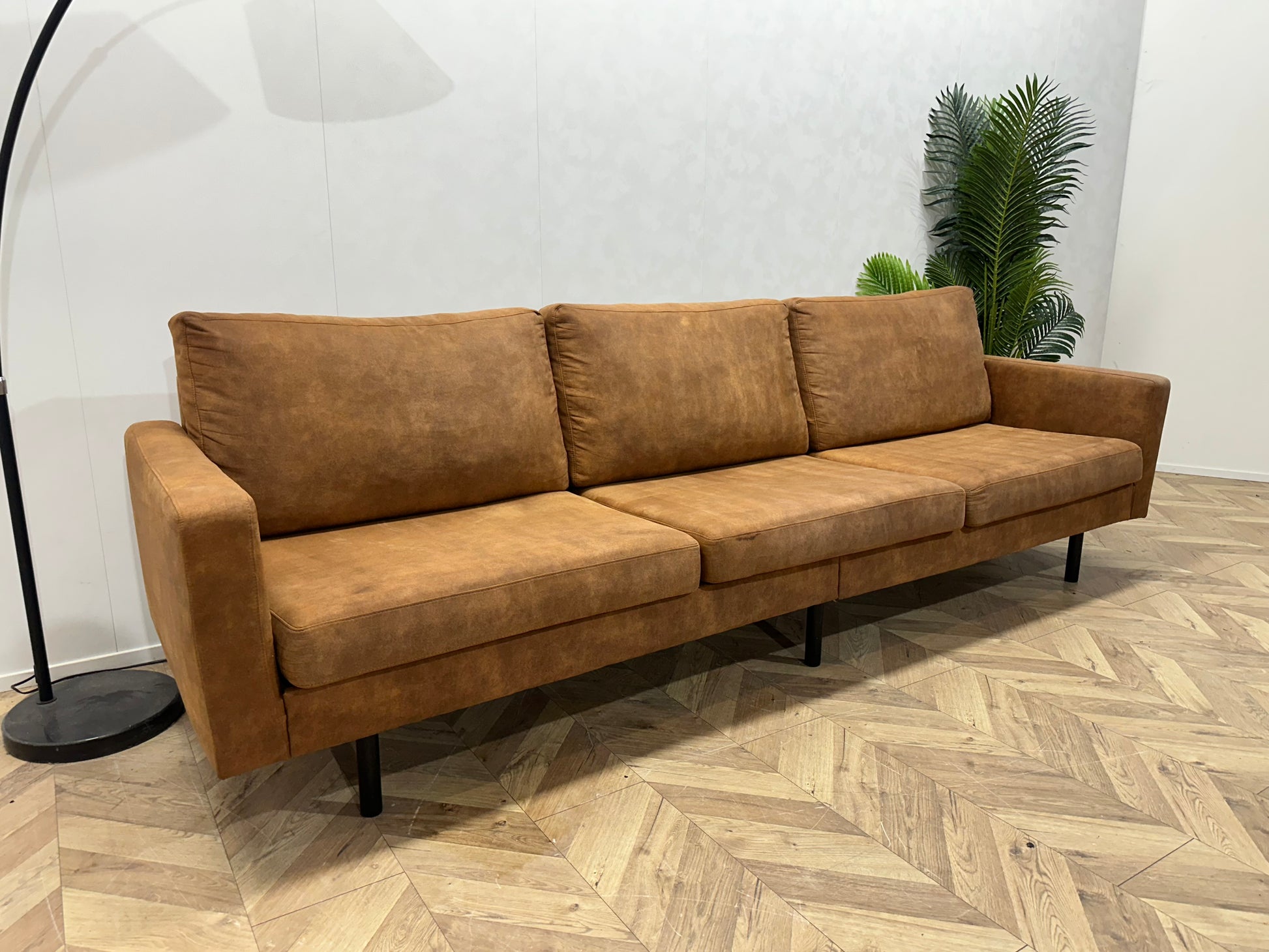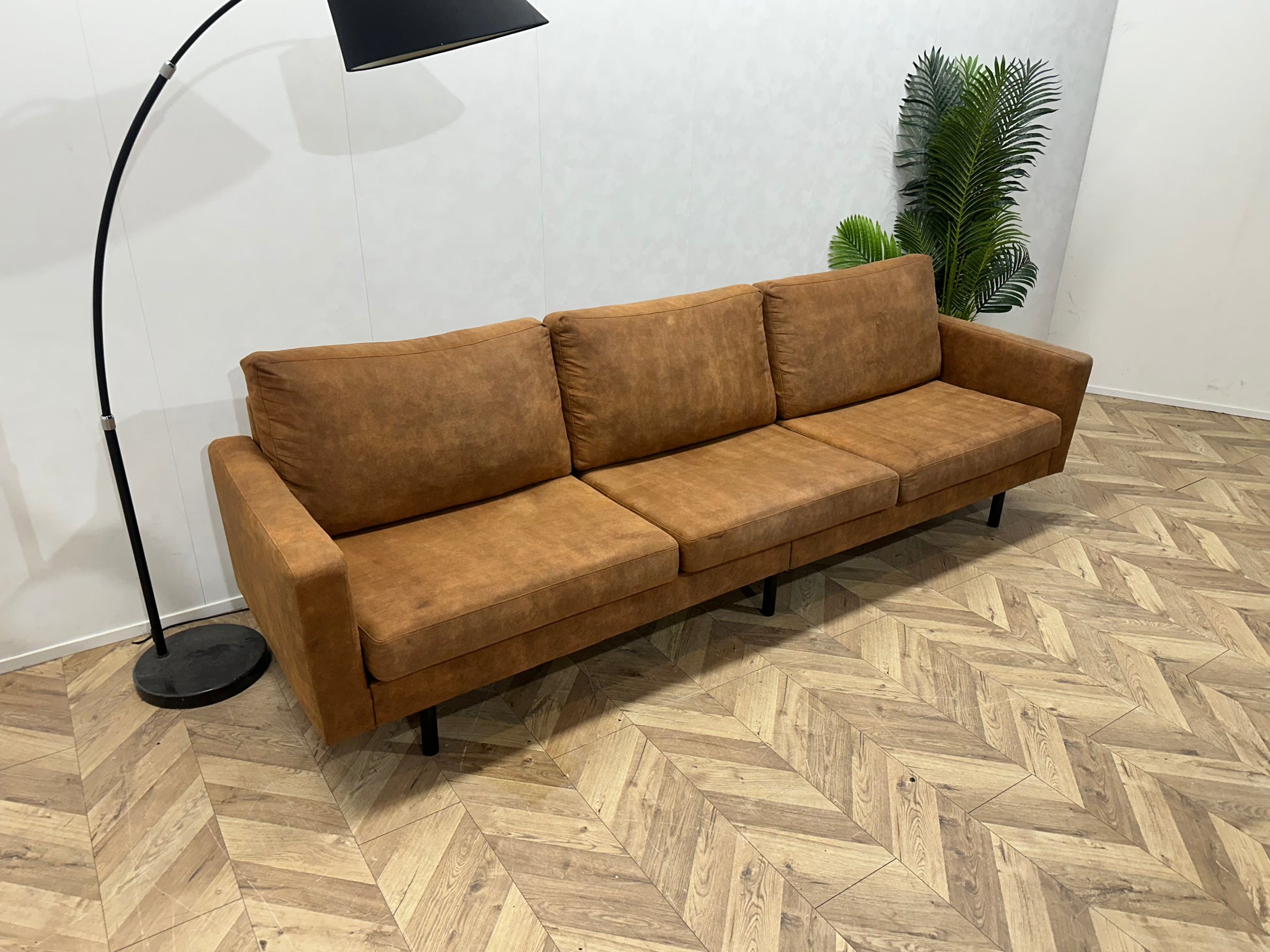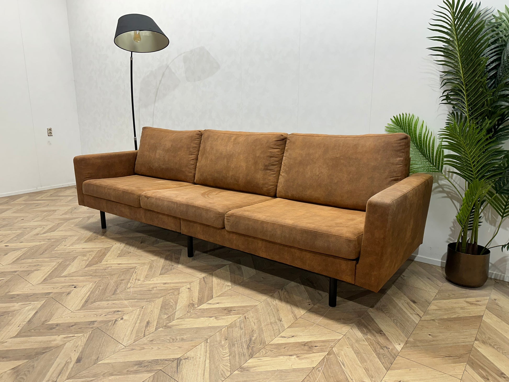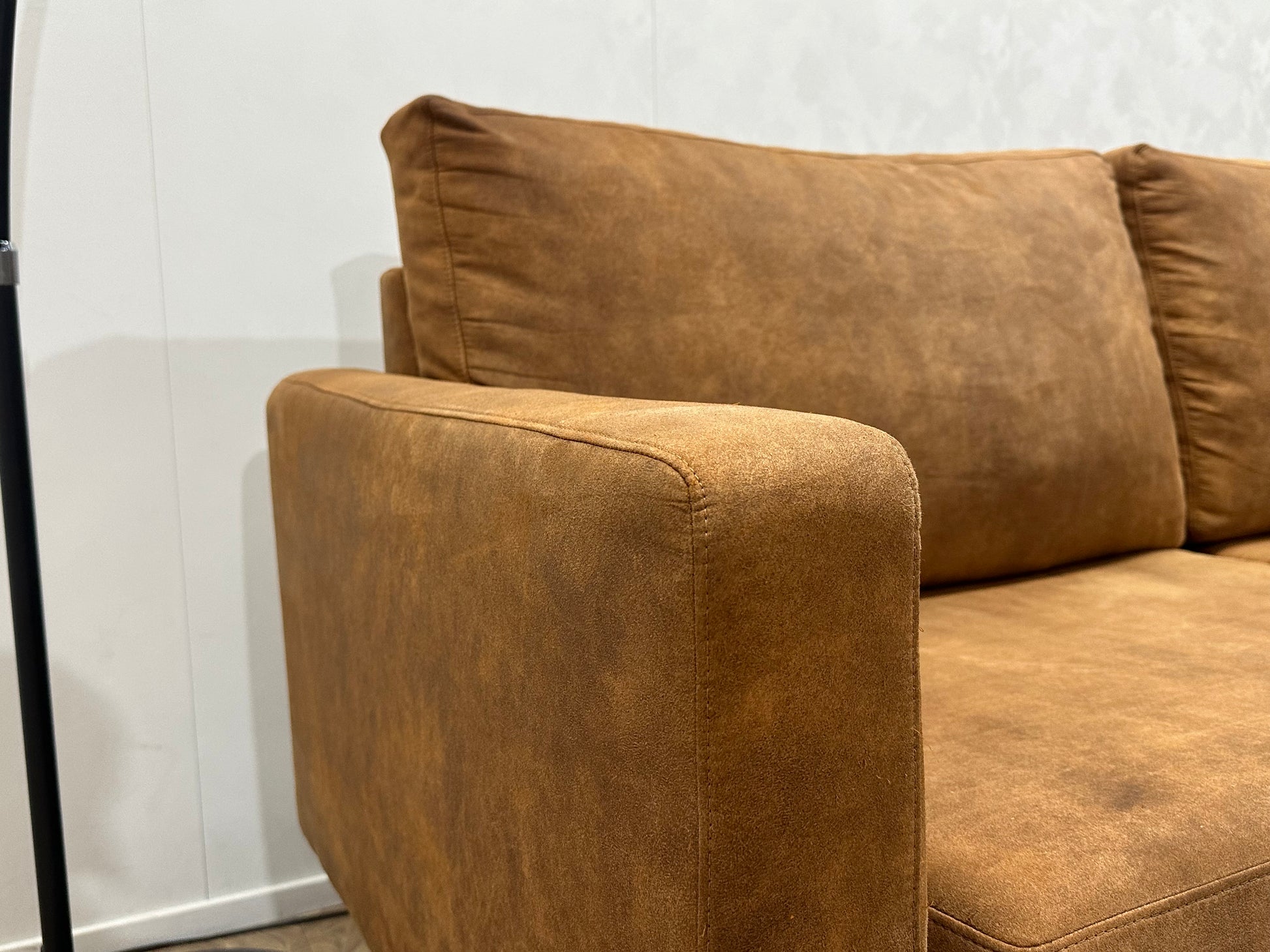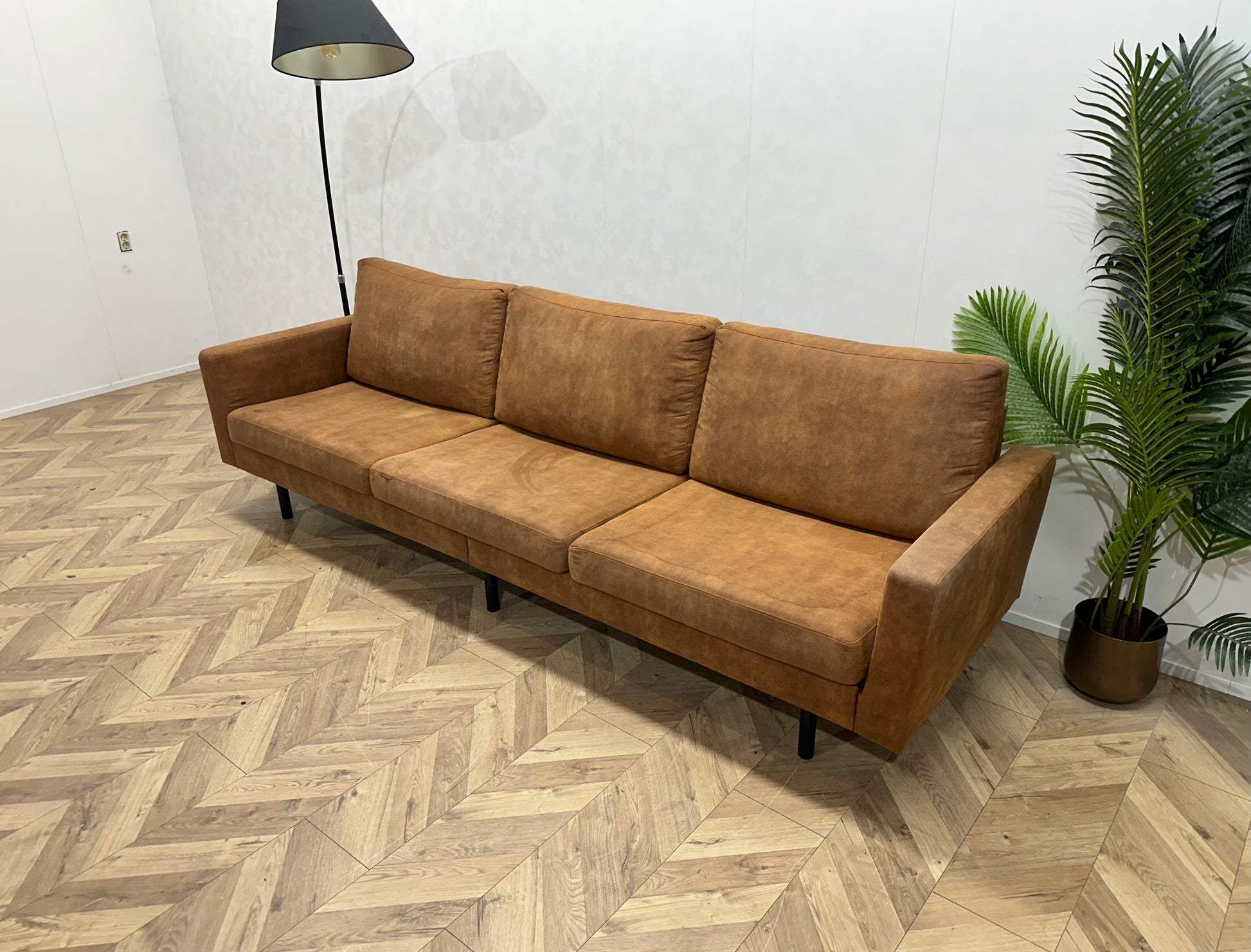 Cognac Bruine Suède Lederen 3-Zits Bank ~ Losse Kussens Met Afneembare Hoezen