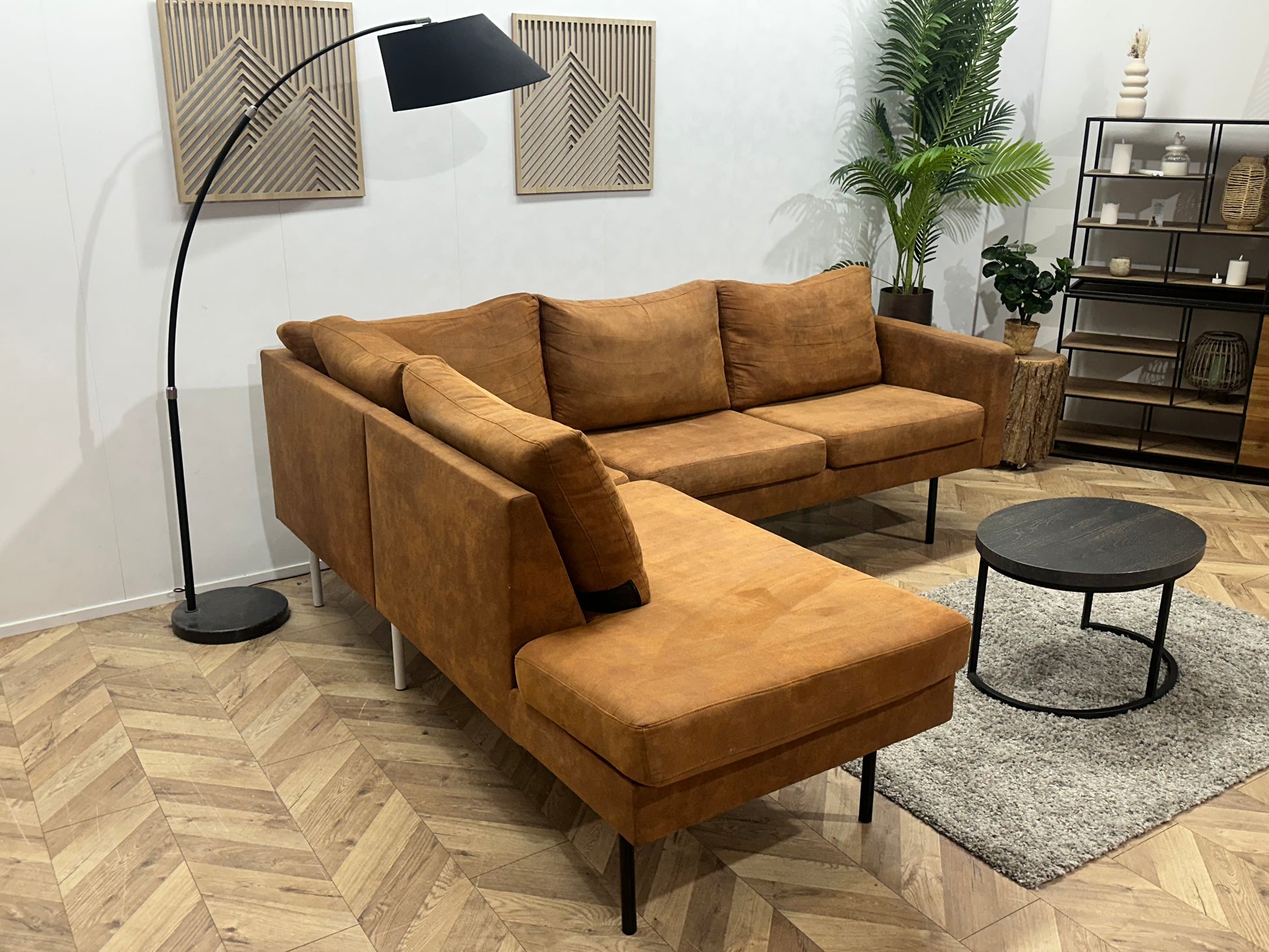 Cognac Bruine Suede Stoffen Hoekbank ~ Losse Kussens Met Afneembare Hoezen