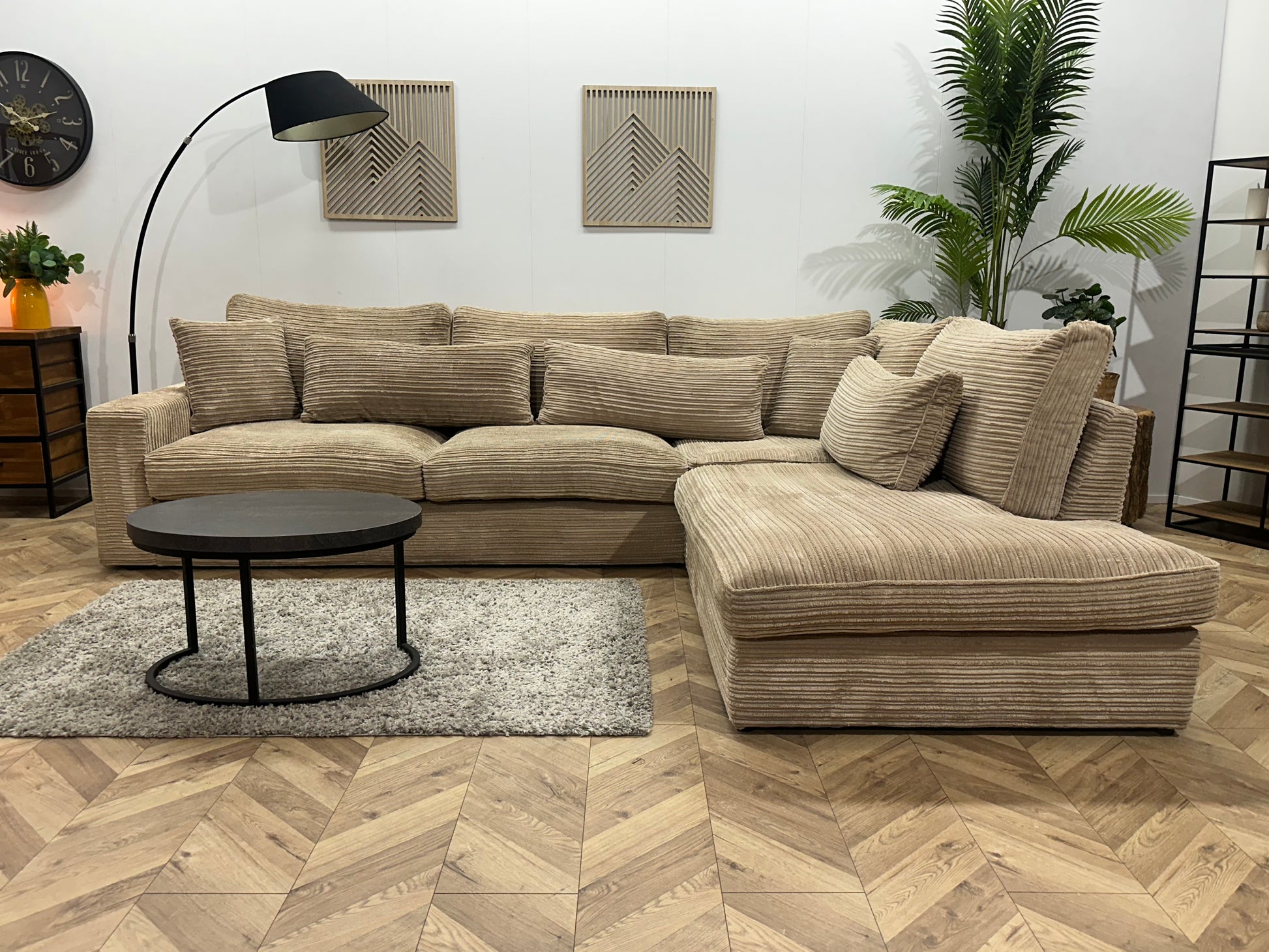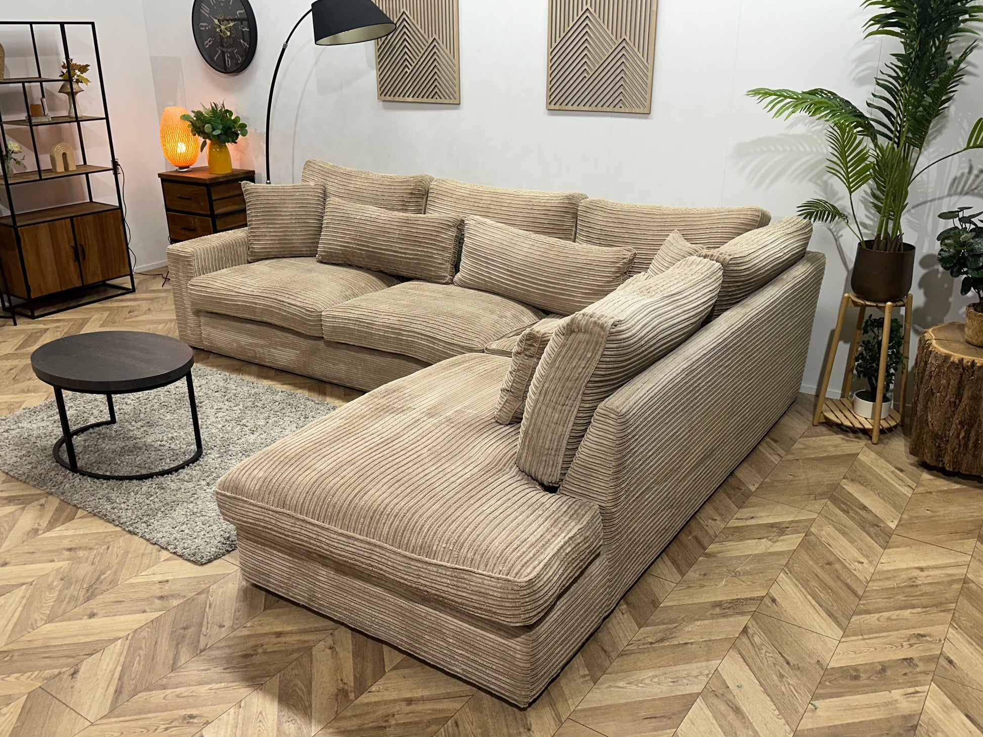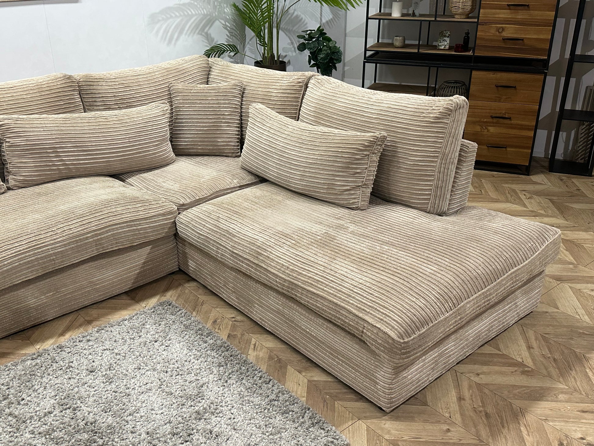 Crème/Beige Ribstof Hoekbank ~ Losse Kussens Met Afneembare Hoezen