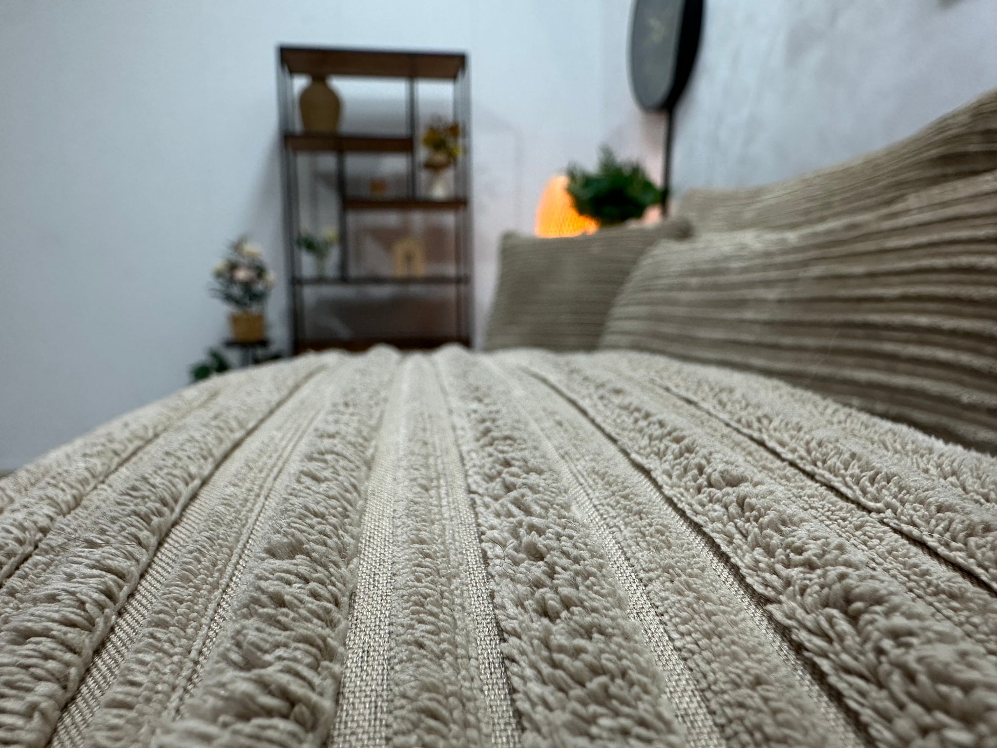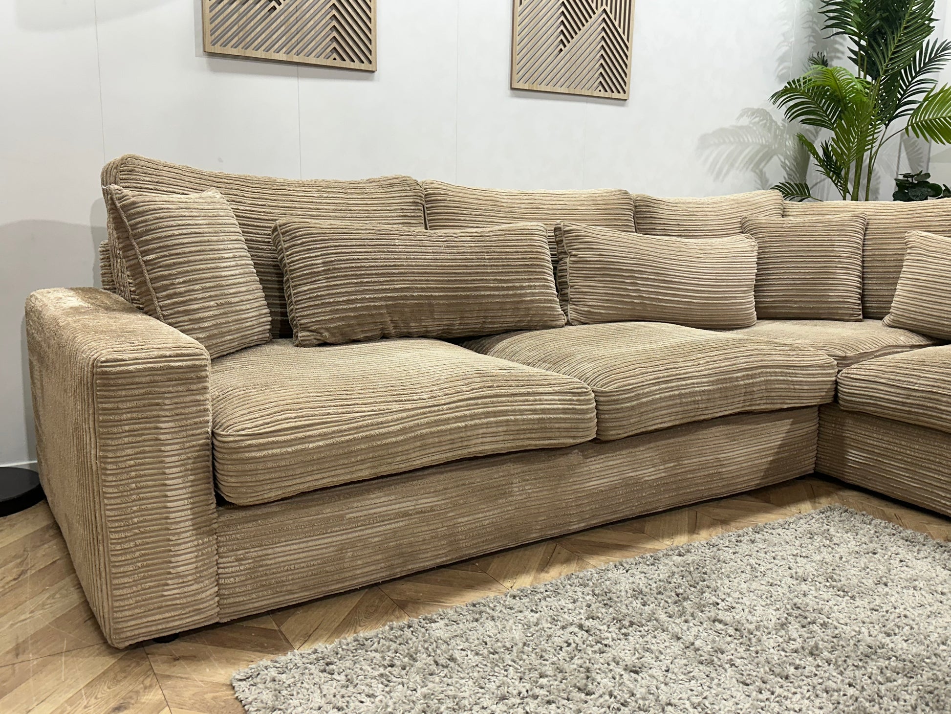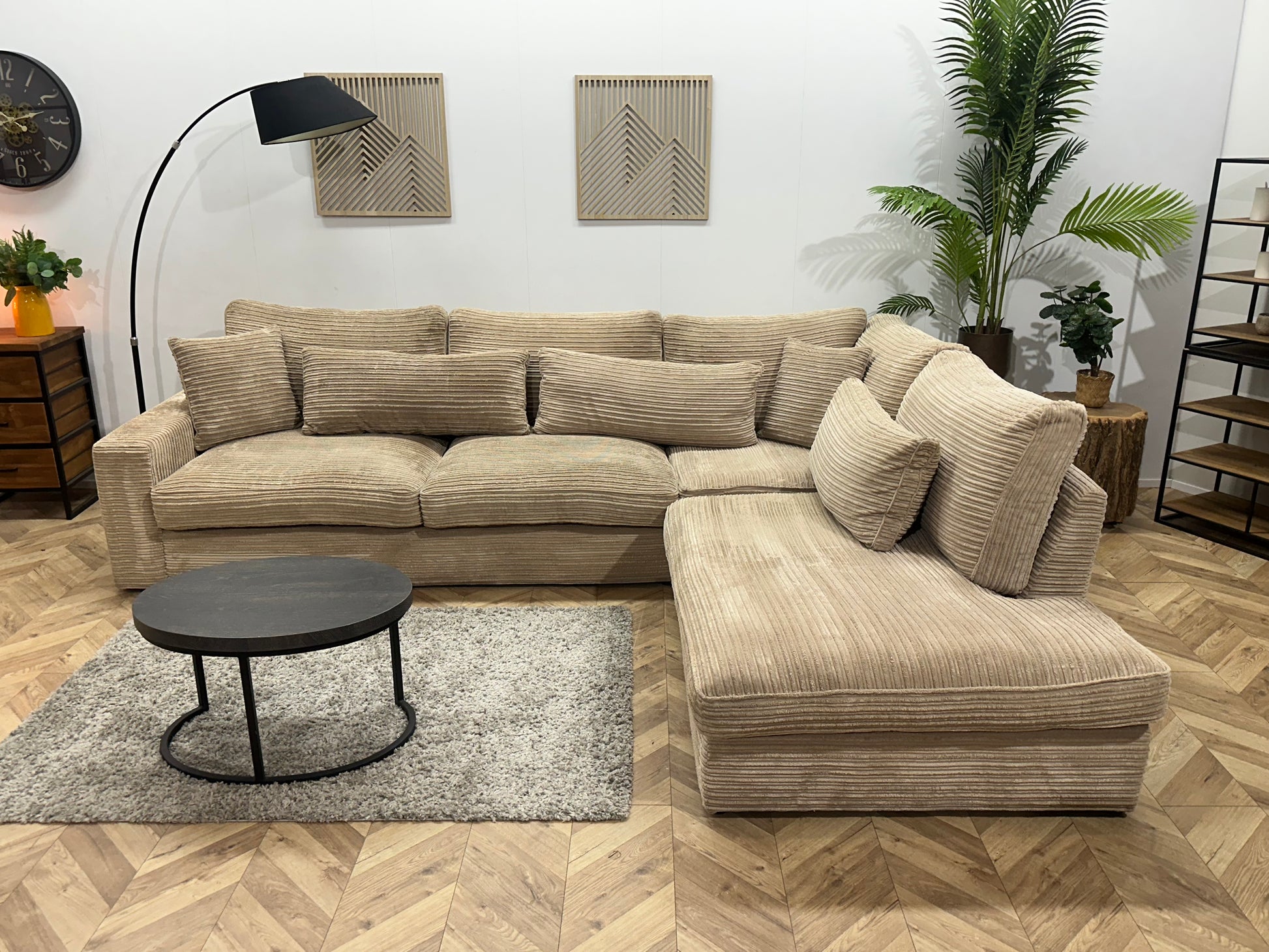 Crème/Beige Ribstof Hoekbank ~ Losse Kussens Met Afneembare Hoezen