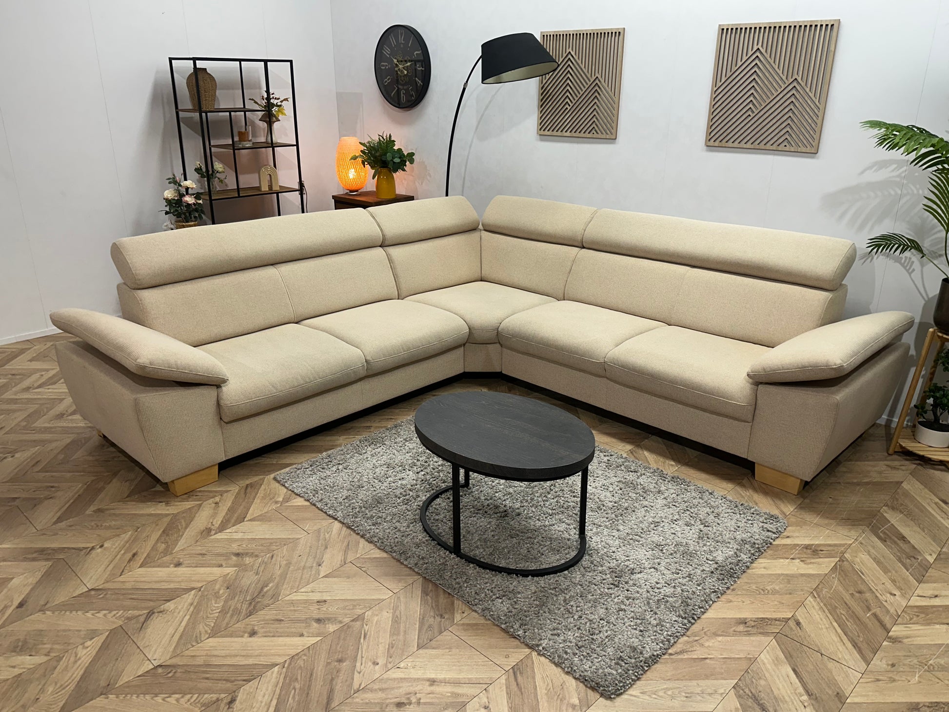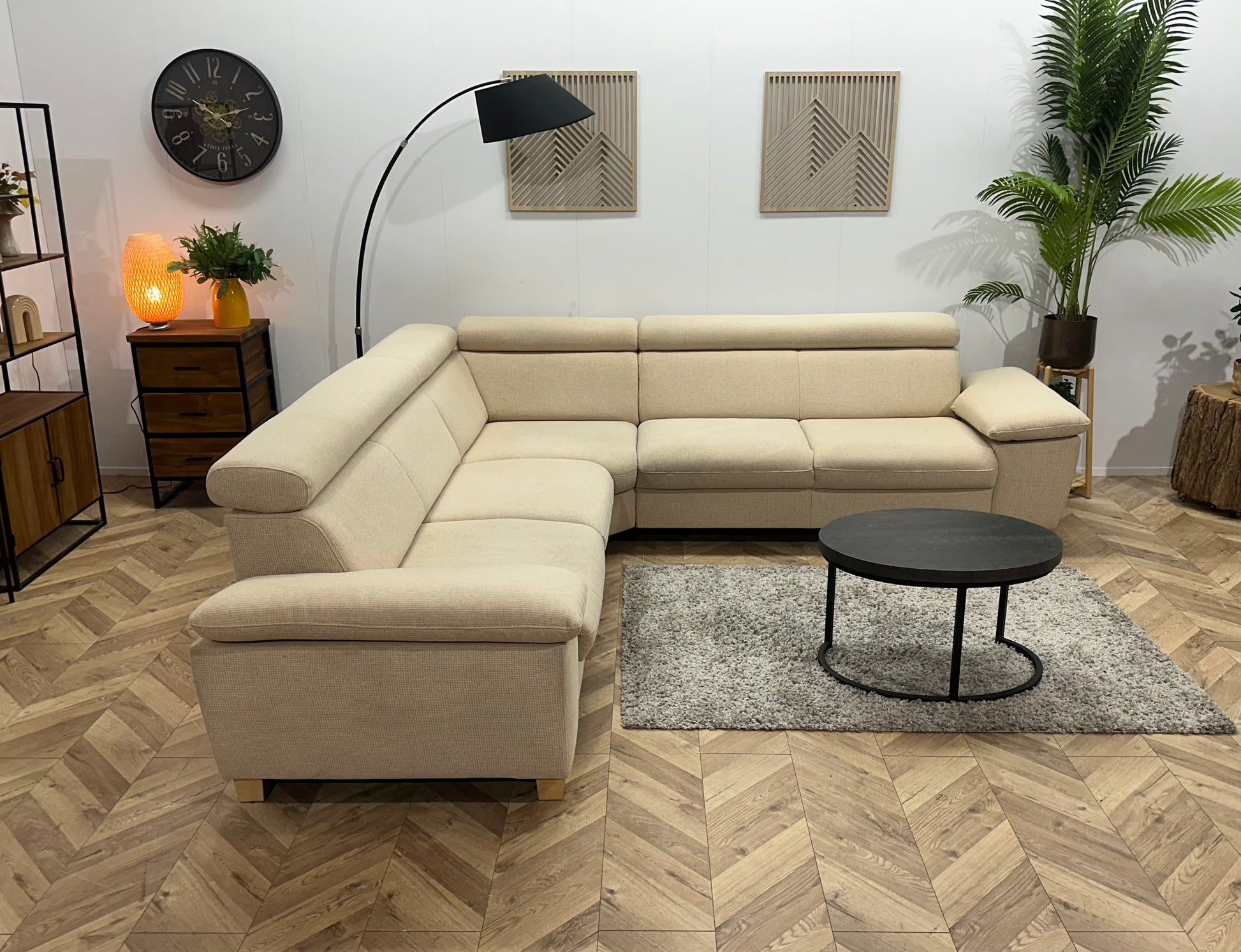 Crème Hoekbank ~ Verstelbare Arm/Hoofdsteunen