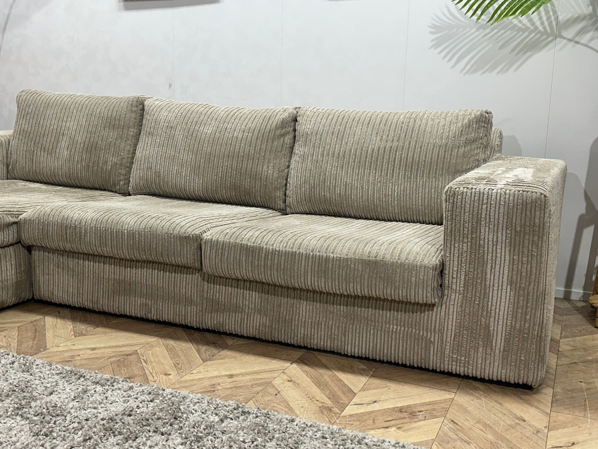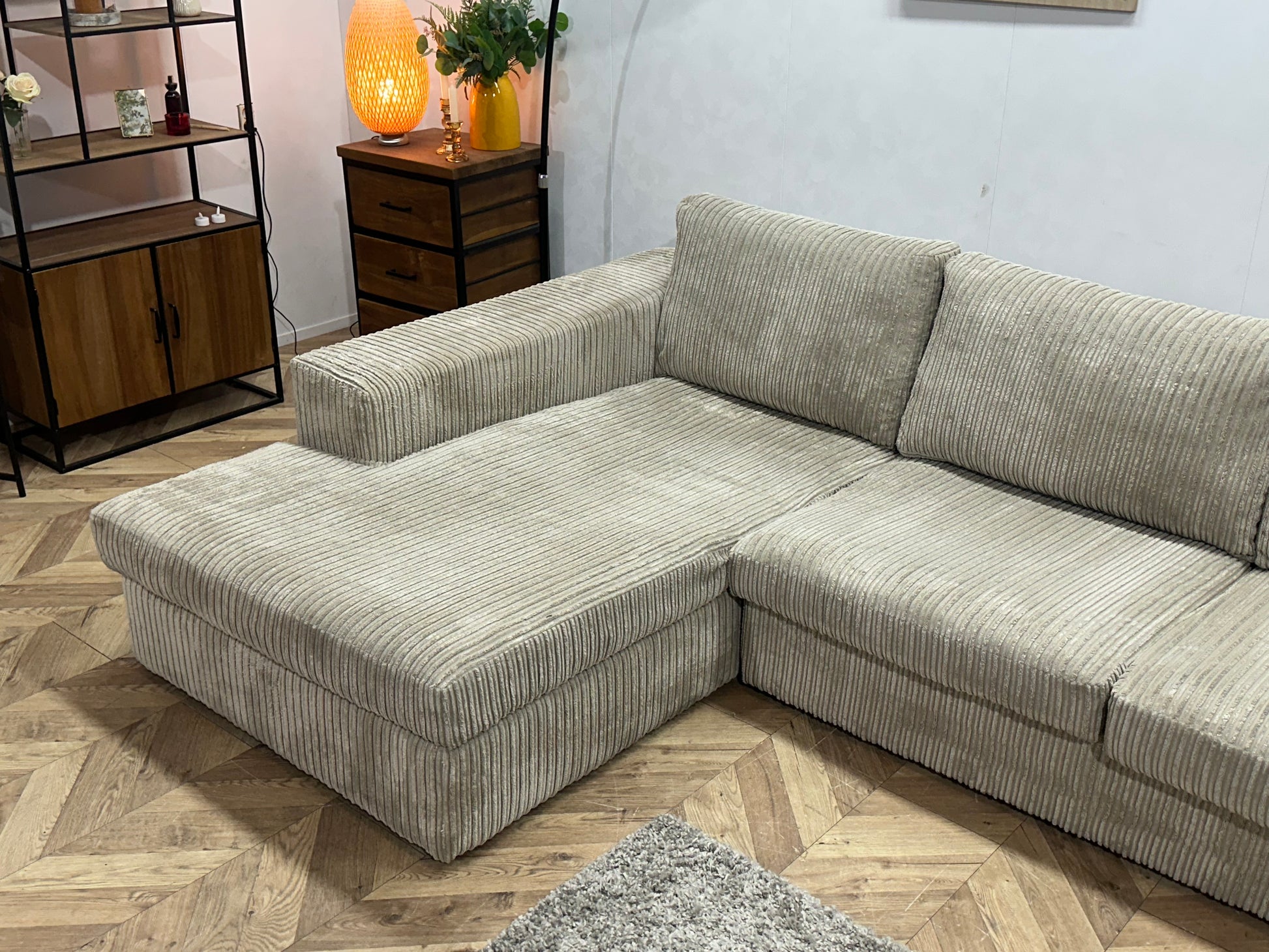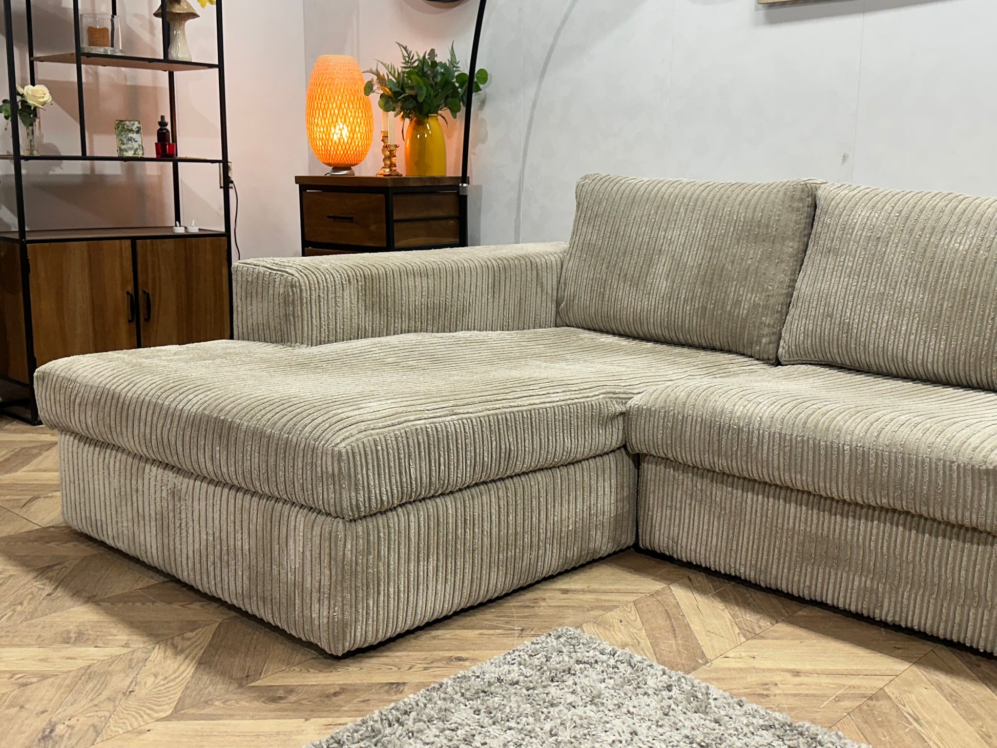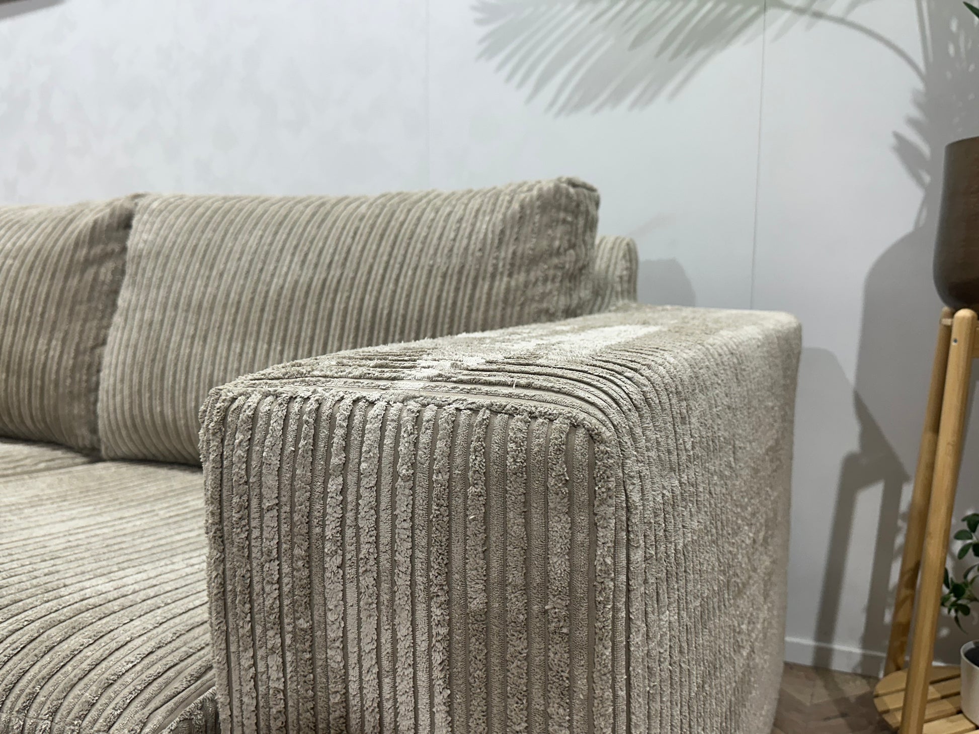 Crème Ribstof Hoekbank ~ Losse Kussens Met Afneembare Hoezen