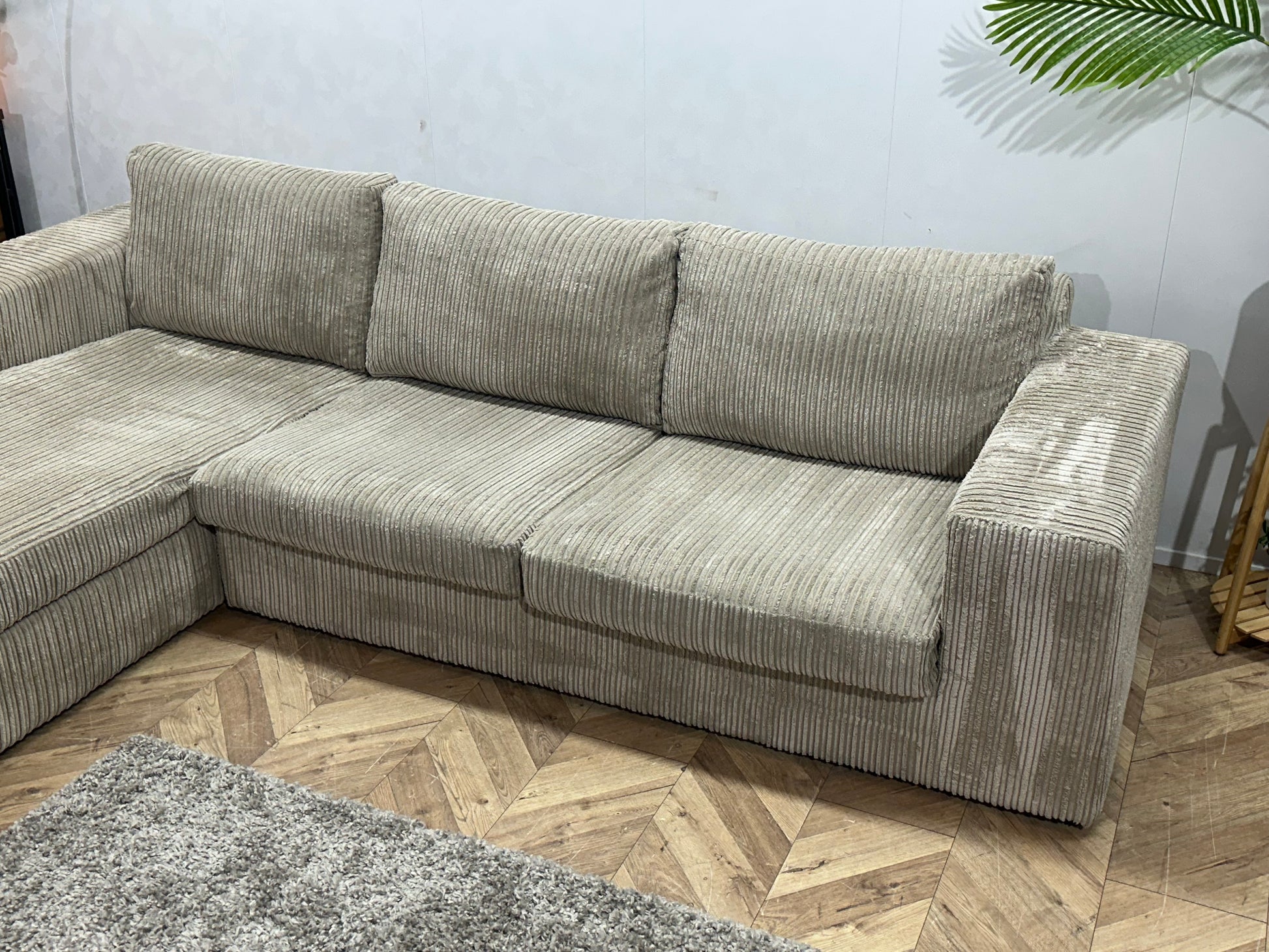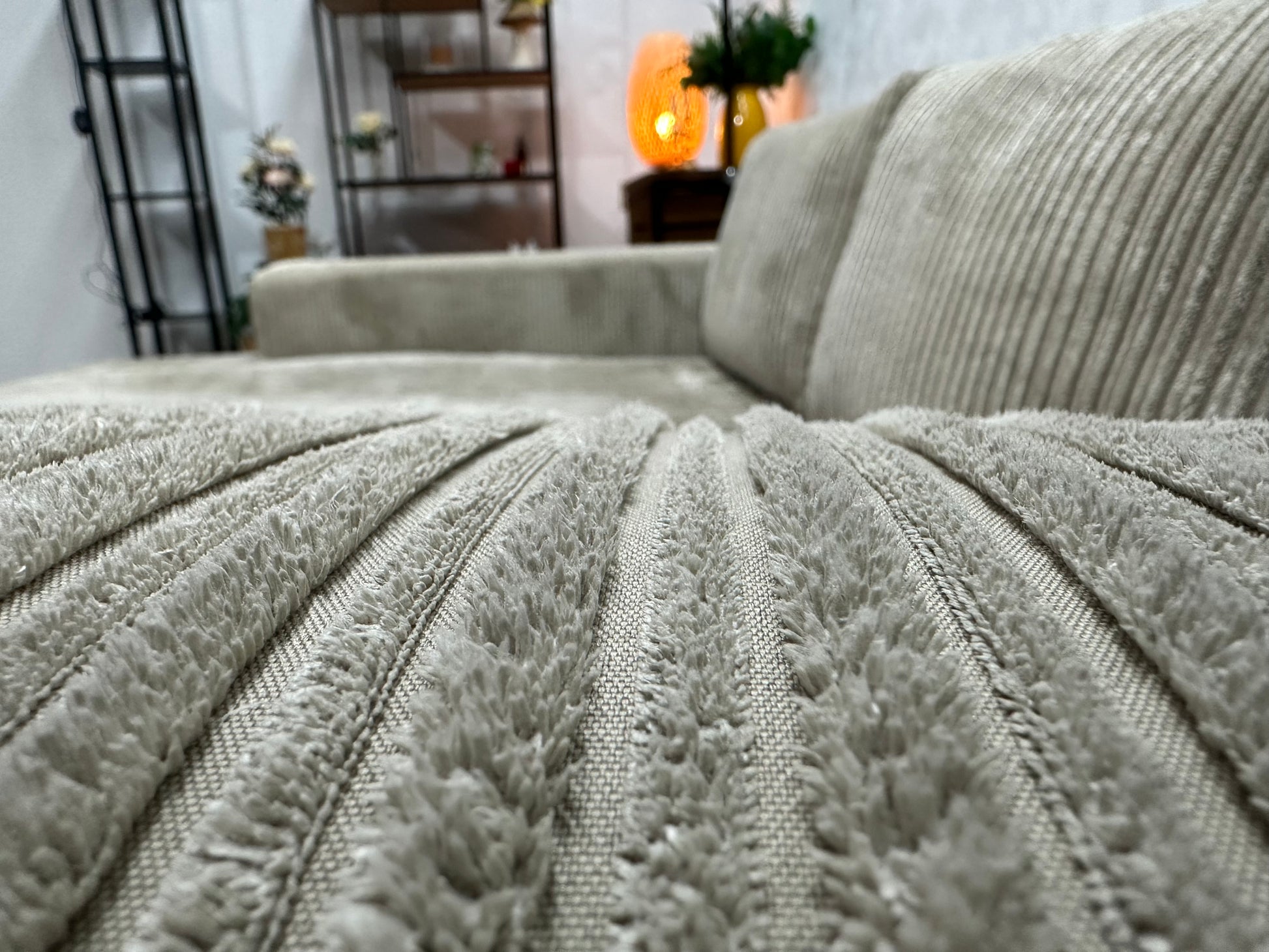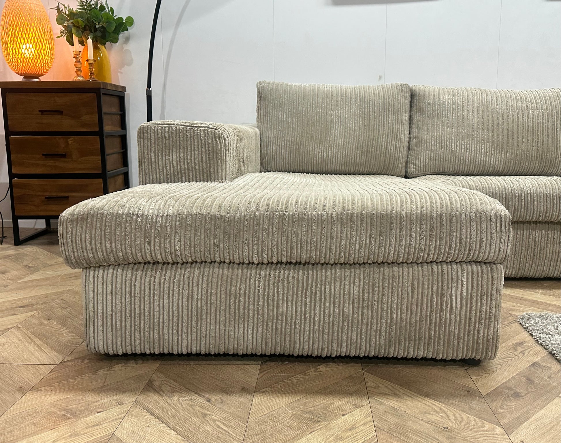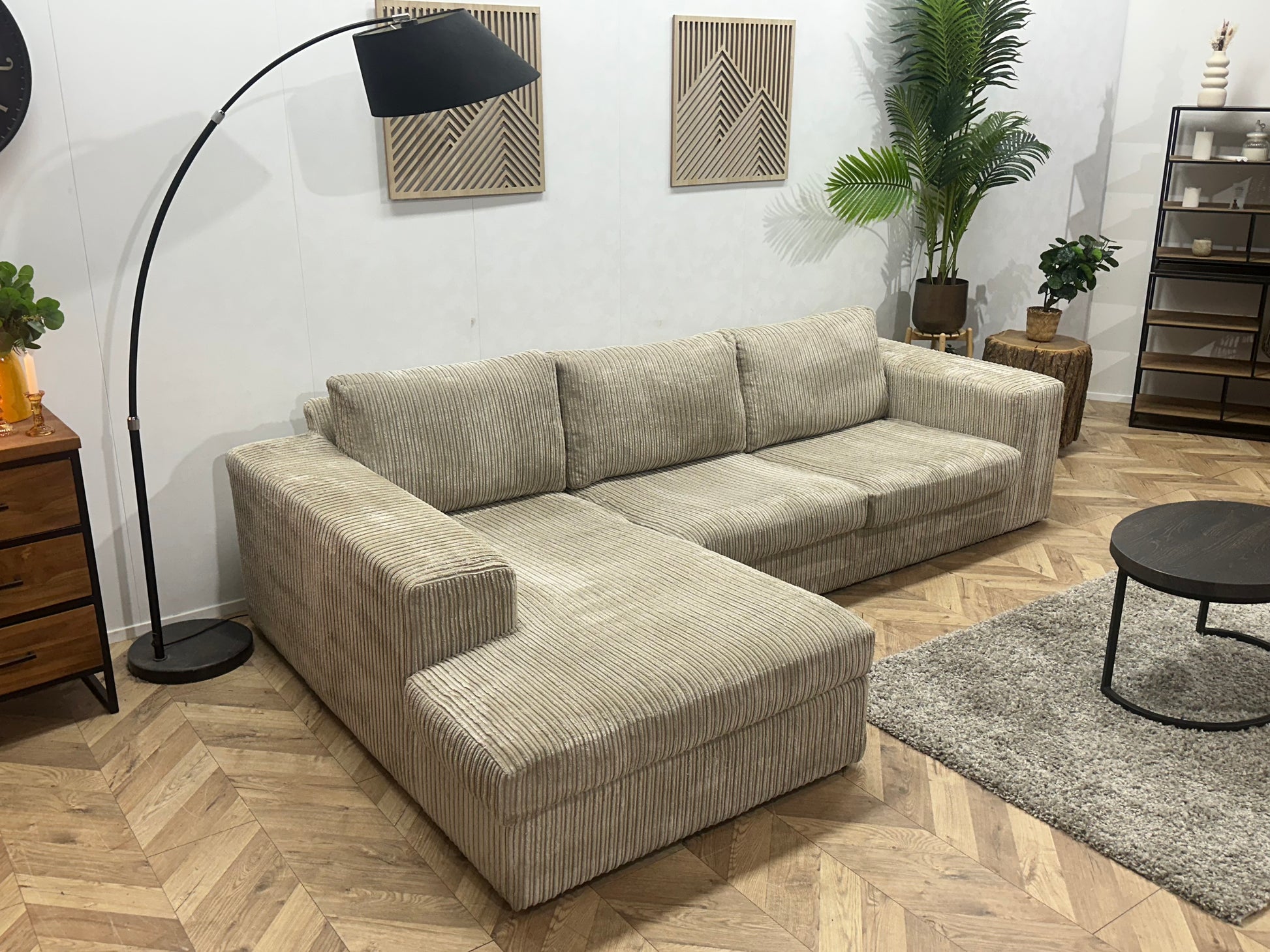 Crème Ribstof Hoekbank ~ Losse Kussens Met Afneembare Hoezen
