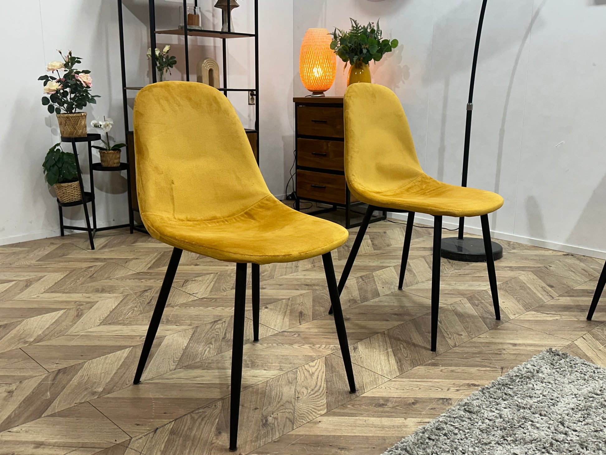 Gele Velvet Eetkamer Stoelen
