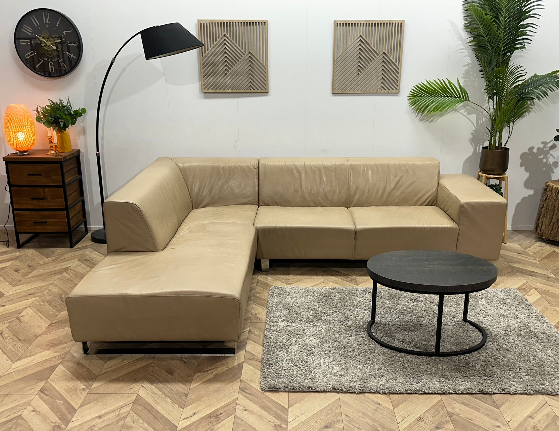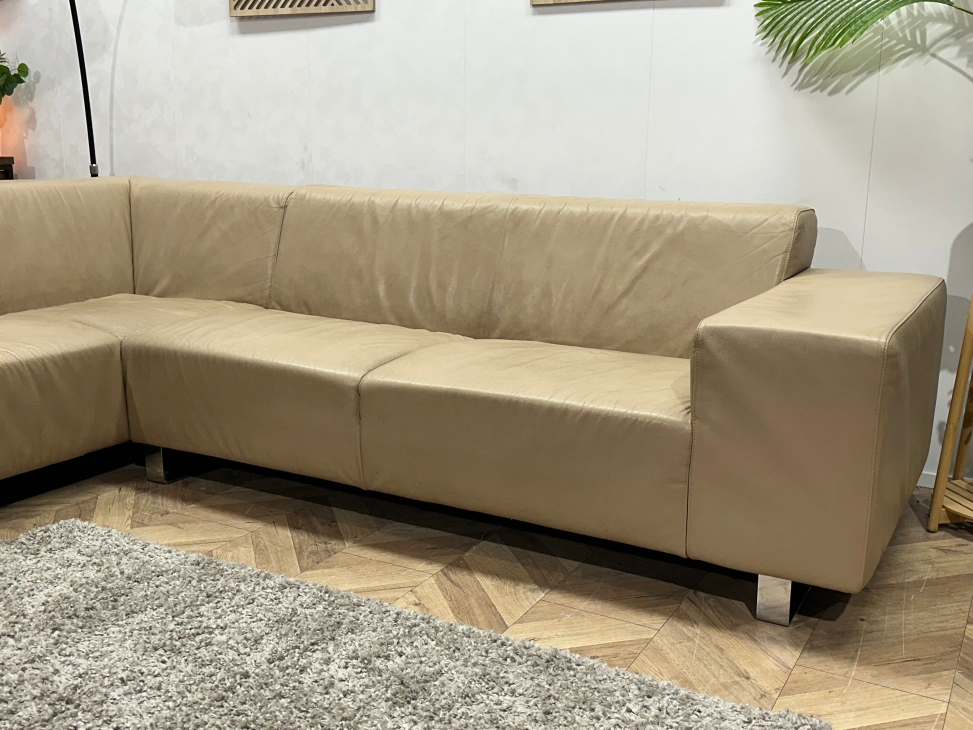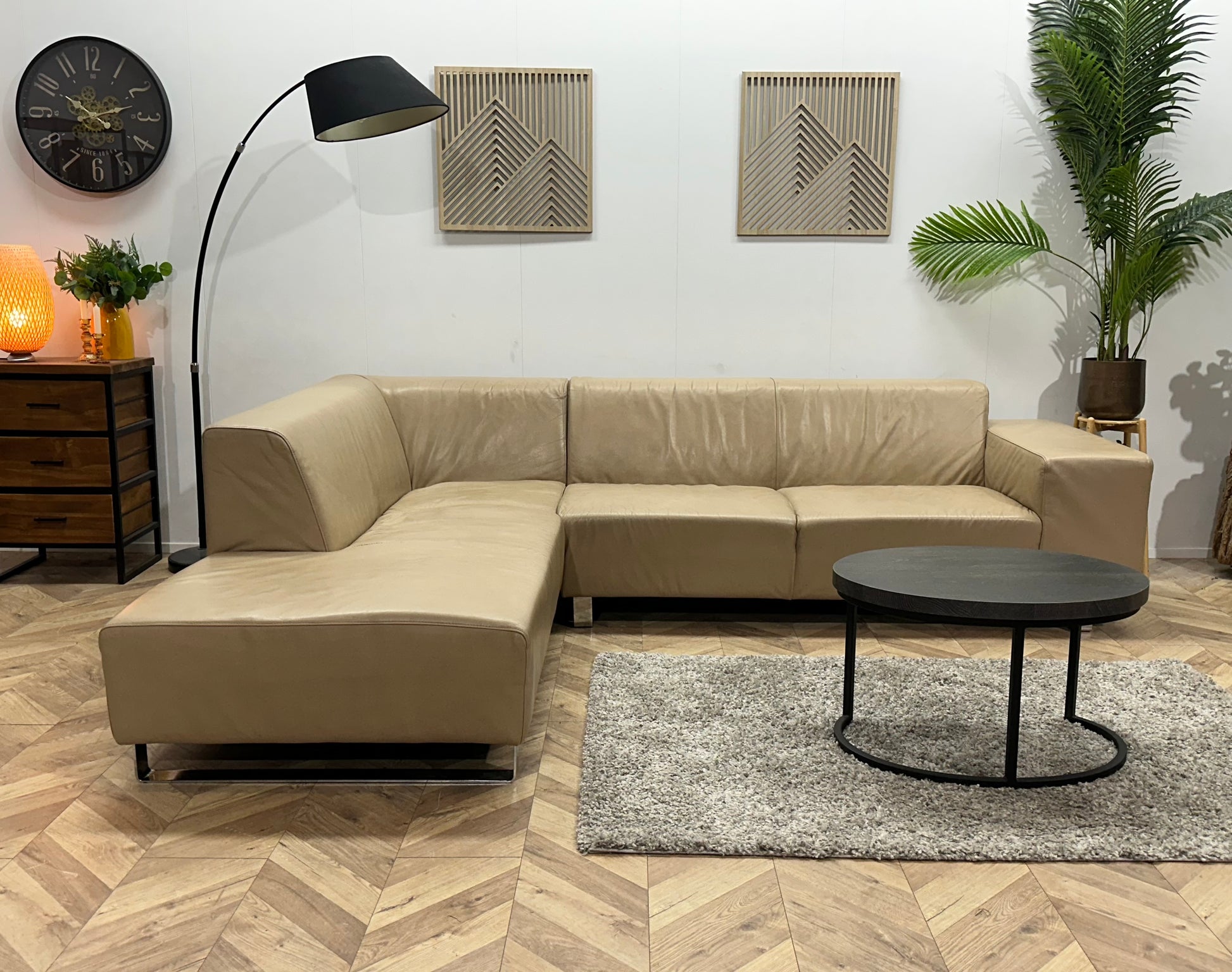 Goossens Crème Echt Lederen Hoekbank ~ Vaste Kussens