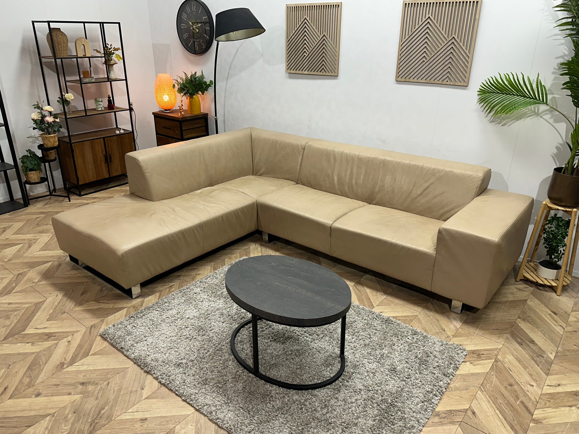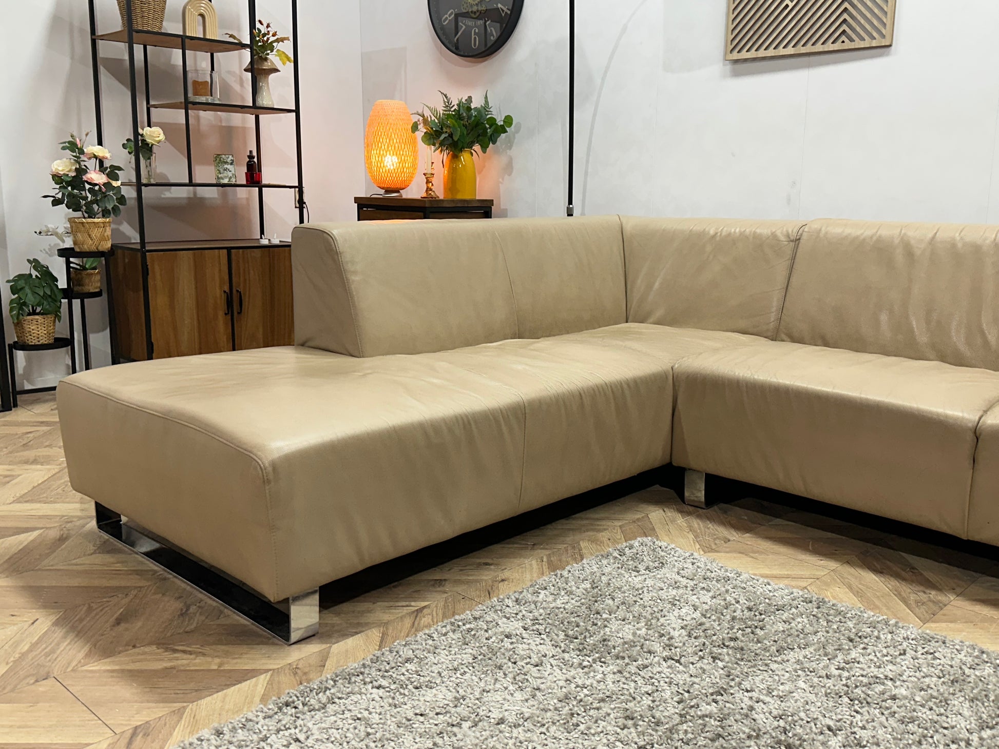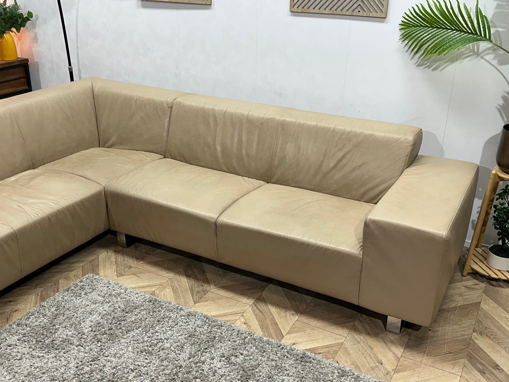 Goossens Crème Echt Lederen Hoekbank ~ Vaste Kussens