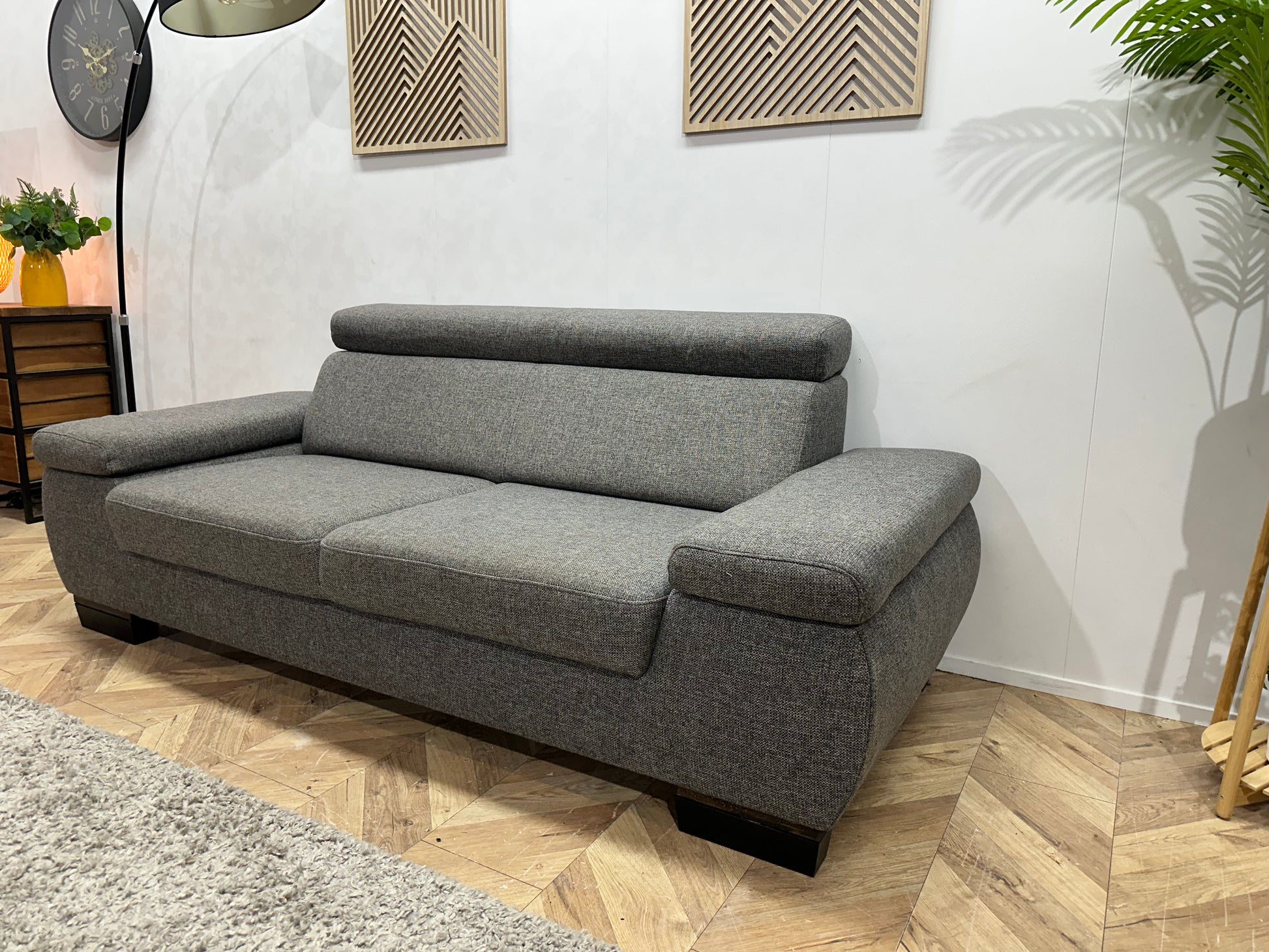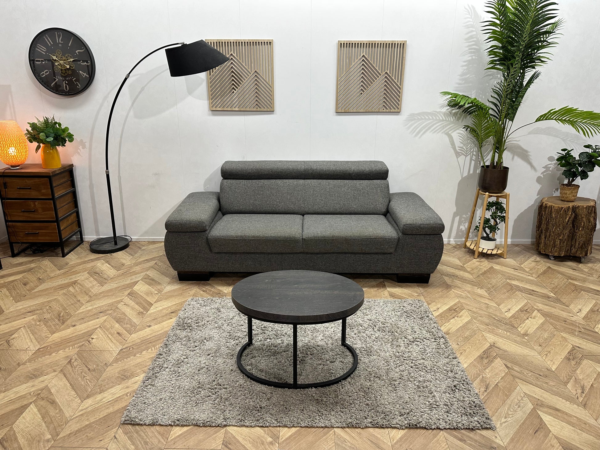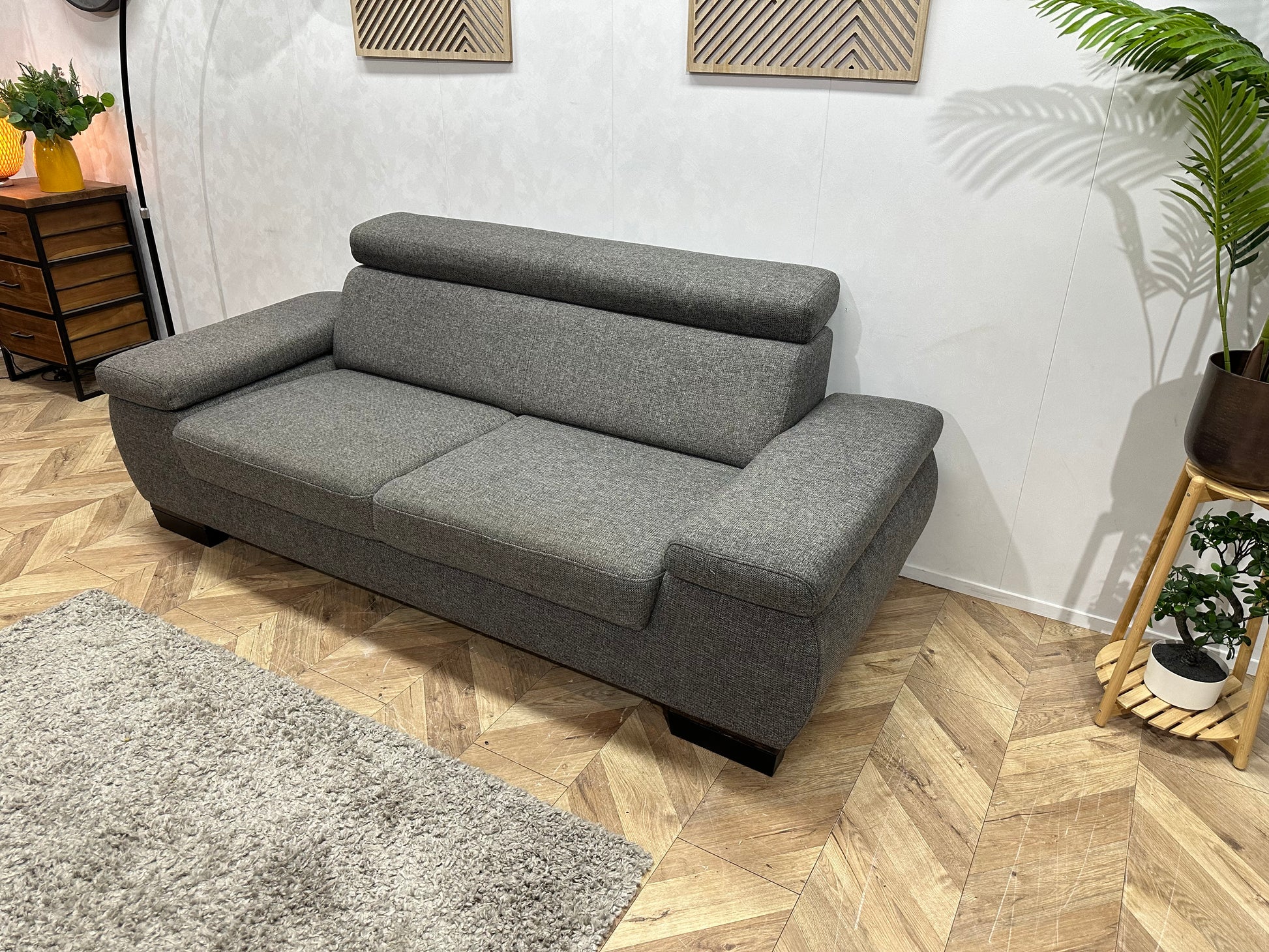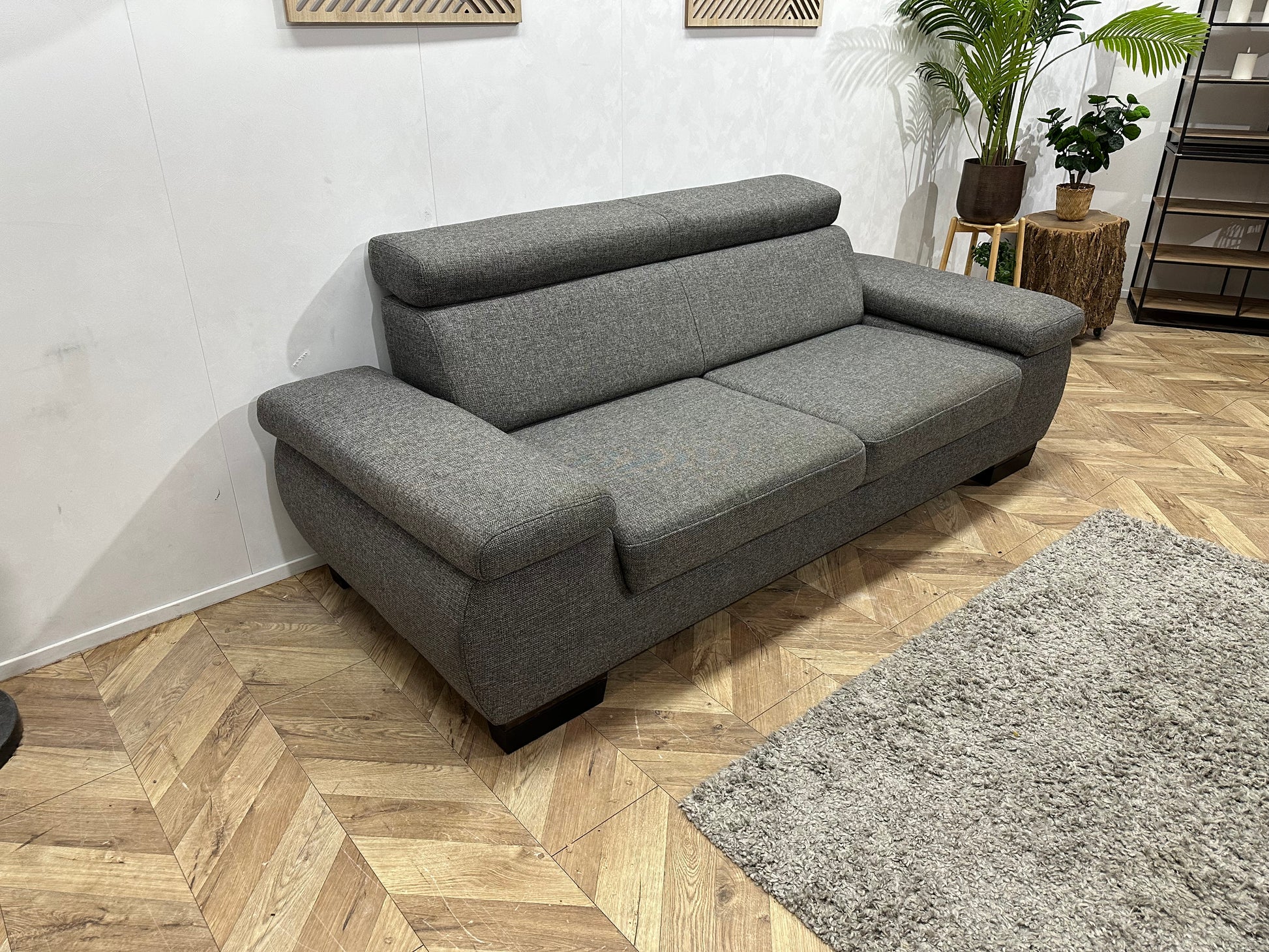 Grijze 2.5-Zits Bank ~ Vaste Kussens Met Verstelbare Arm/Hoofdleuningen
