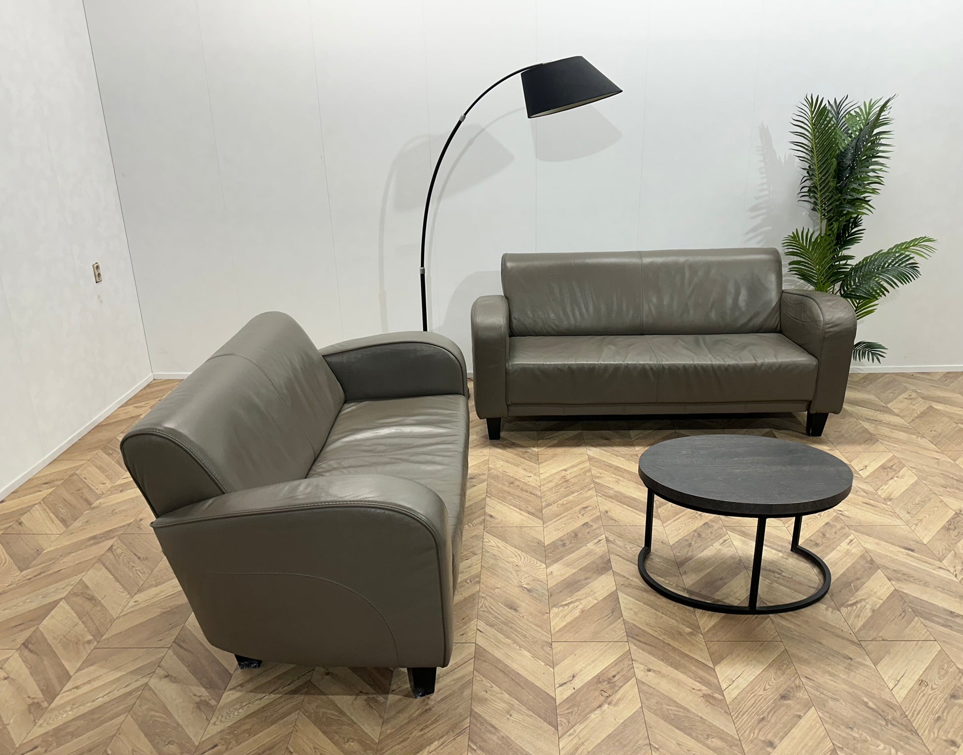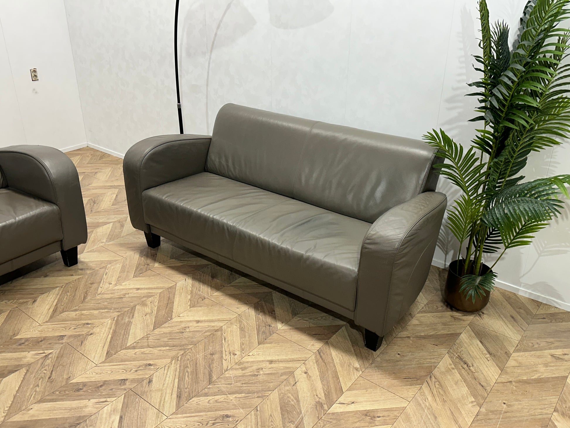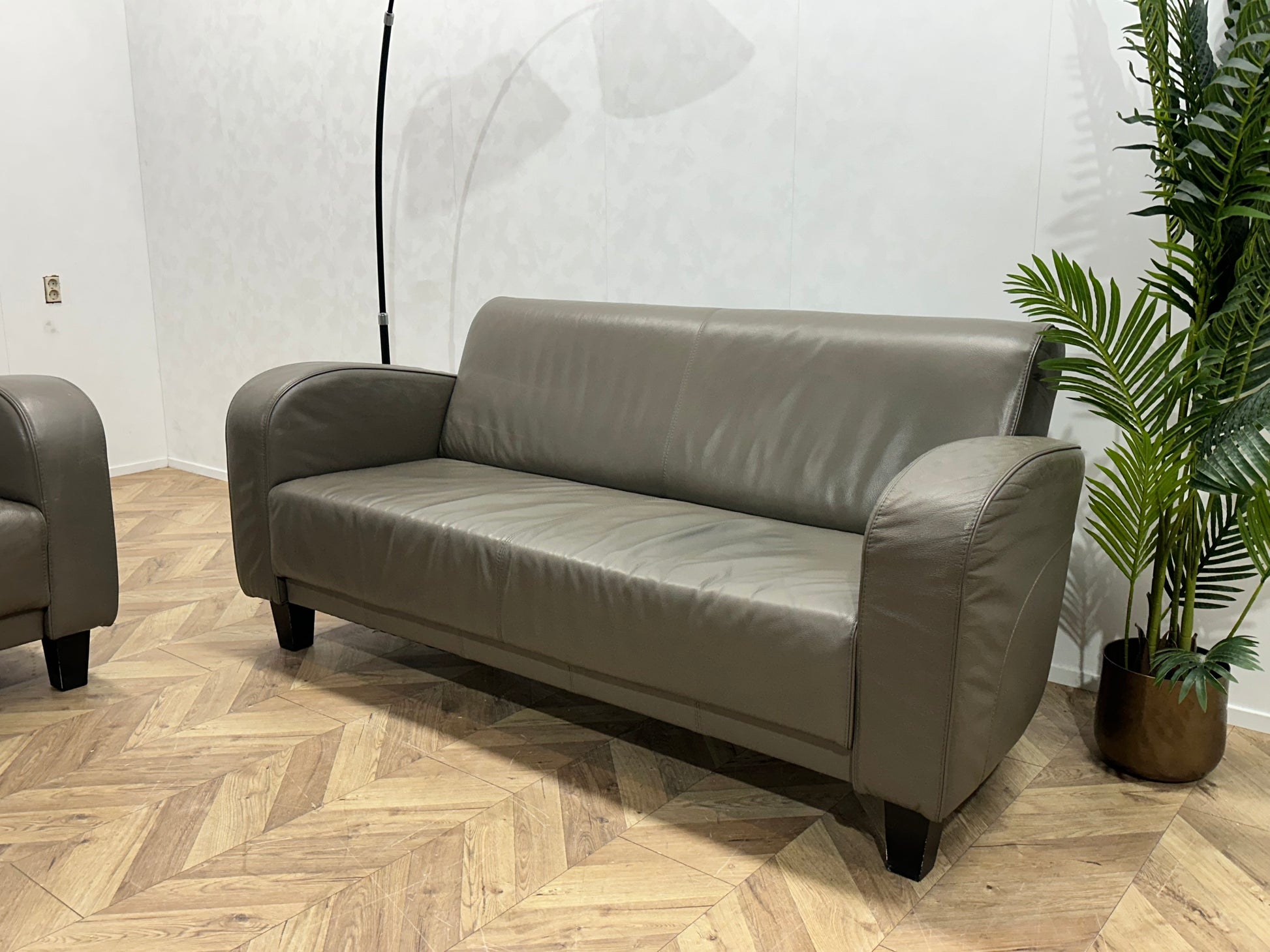 Grijze Echt Lederen Banken Set ~ Vaste Kussens