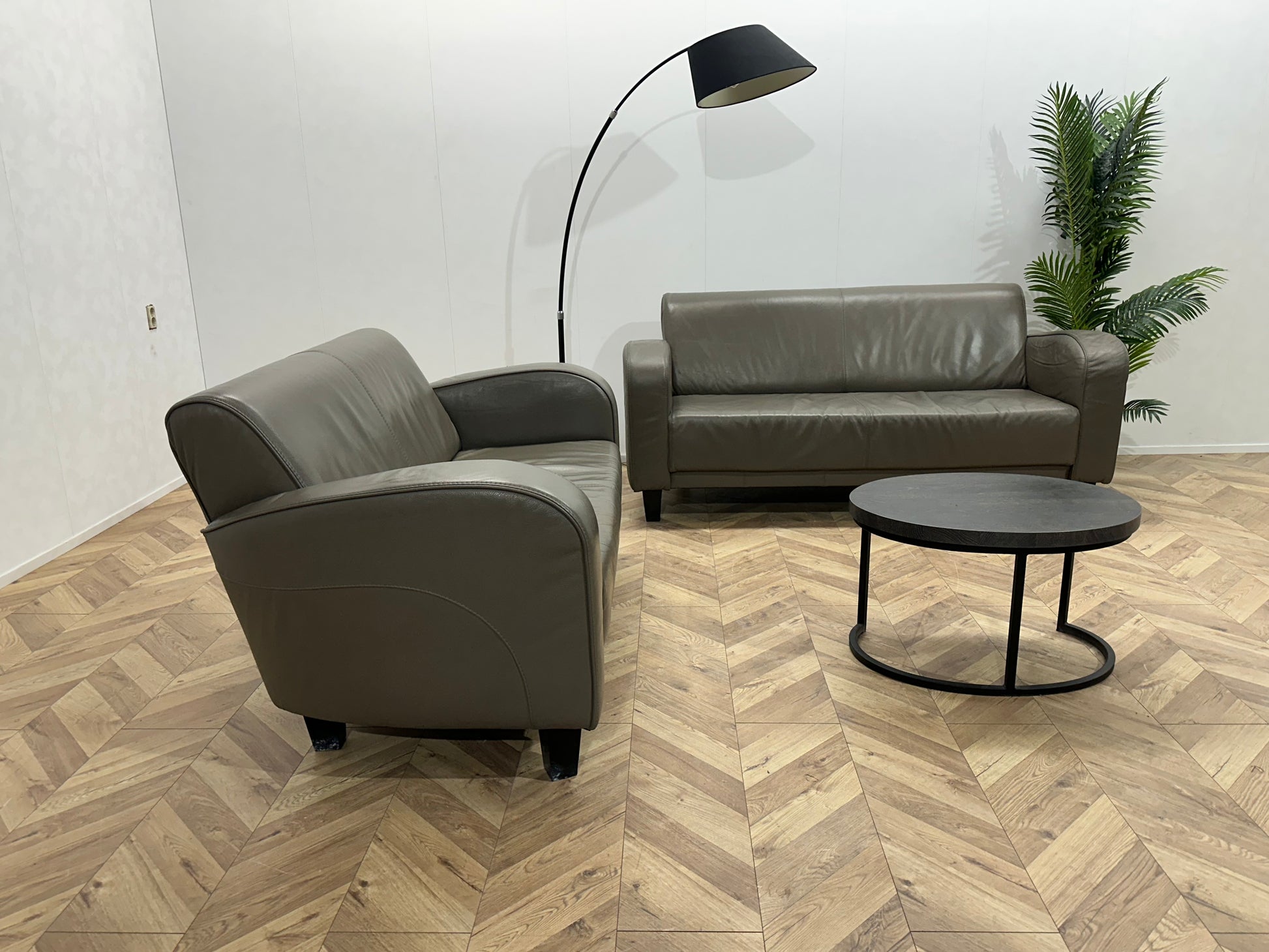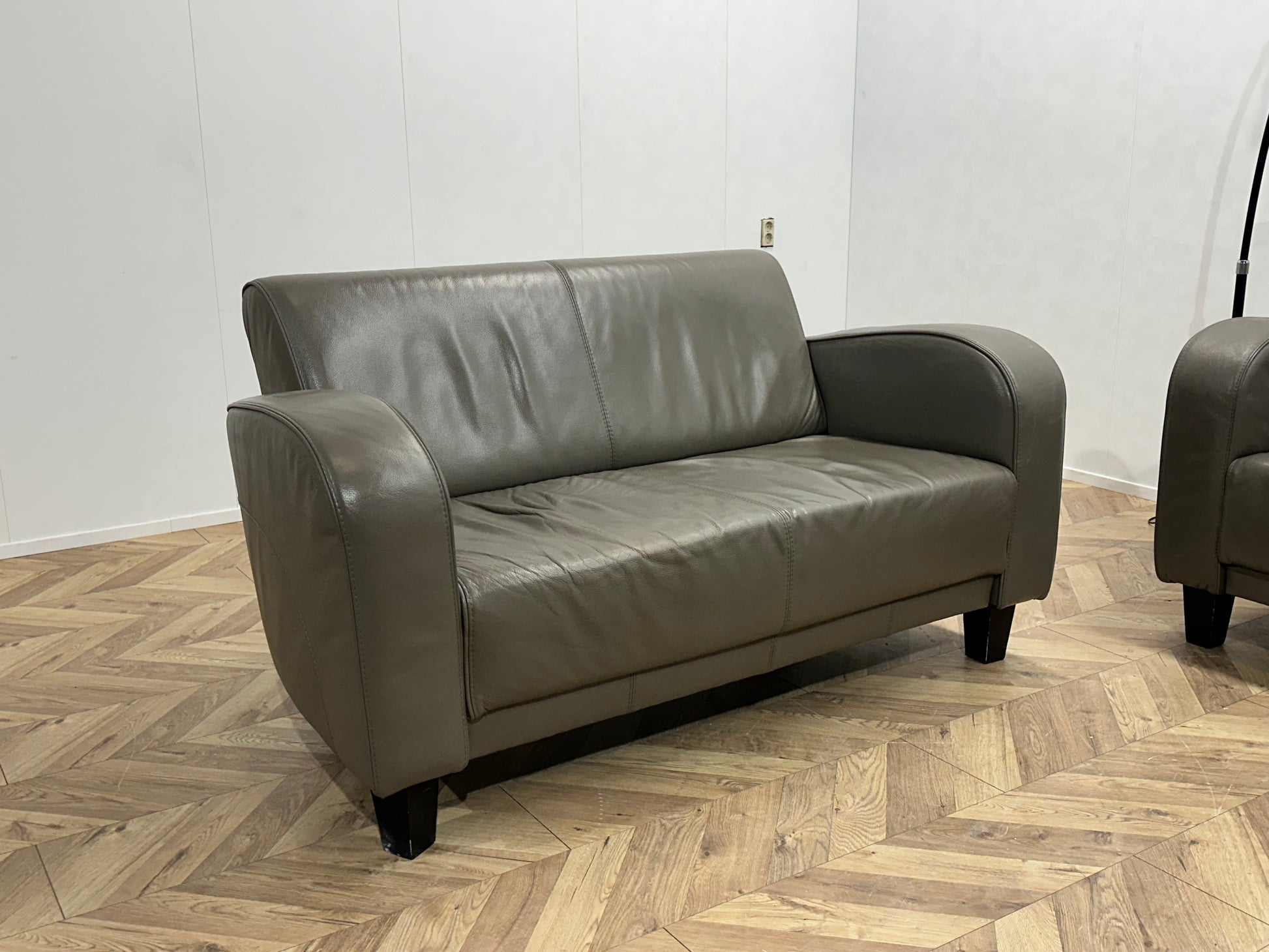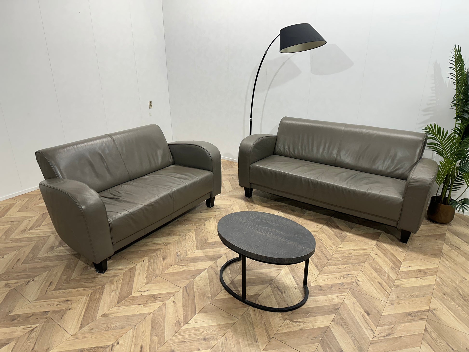 Grijze Echt Lederen Banken Set ~ Vaste Kussens