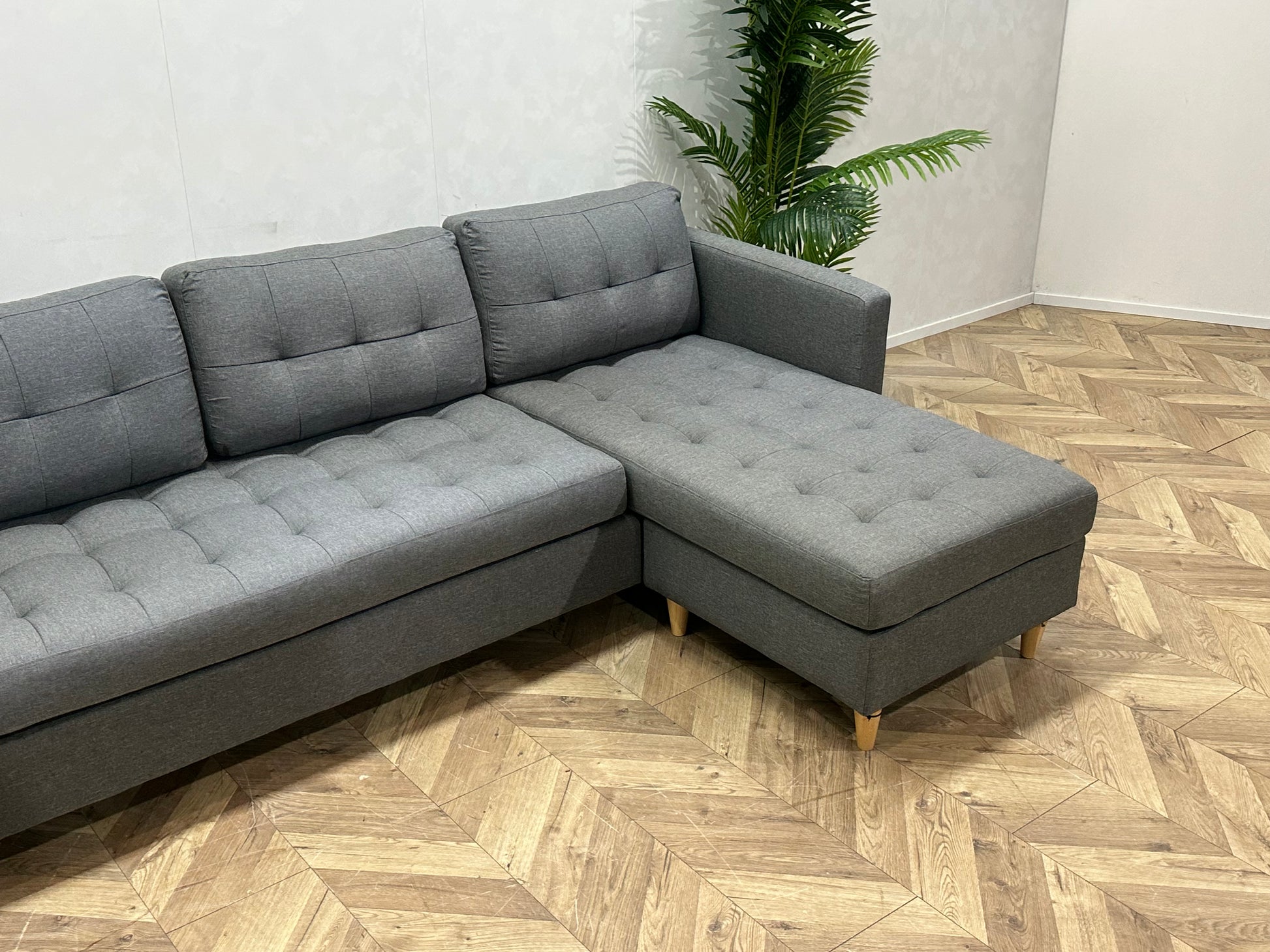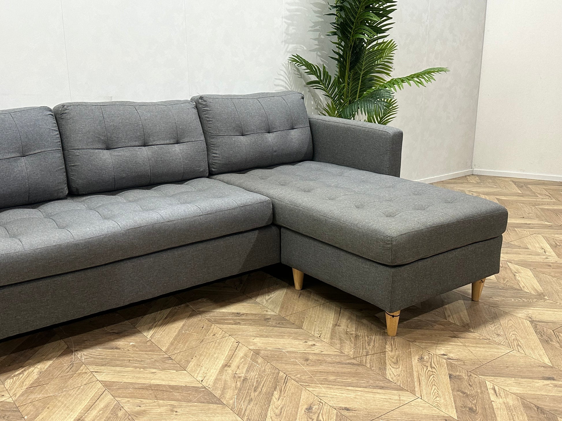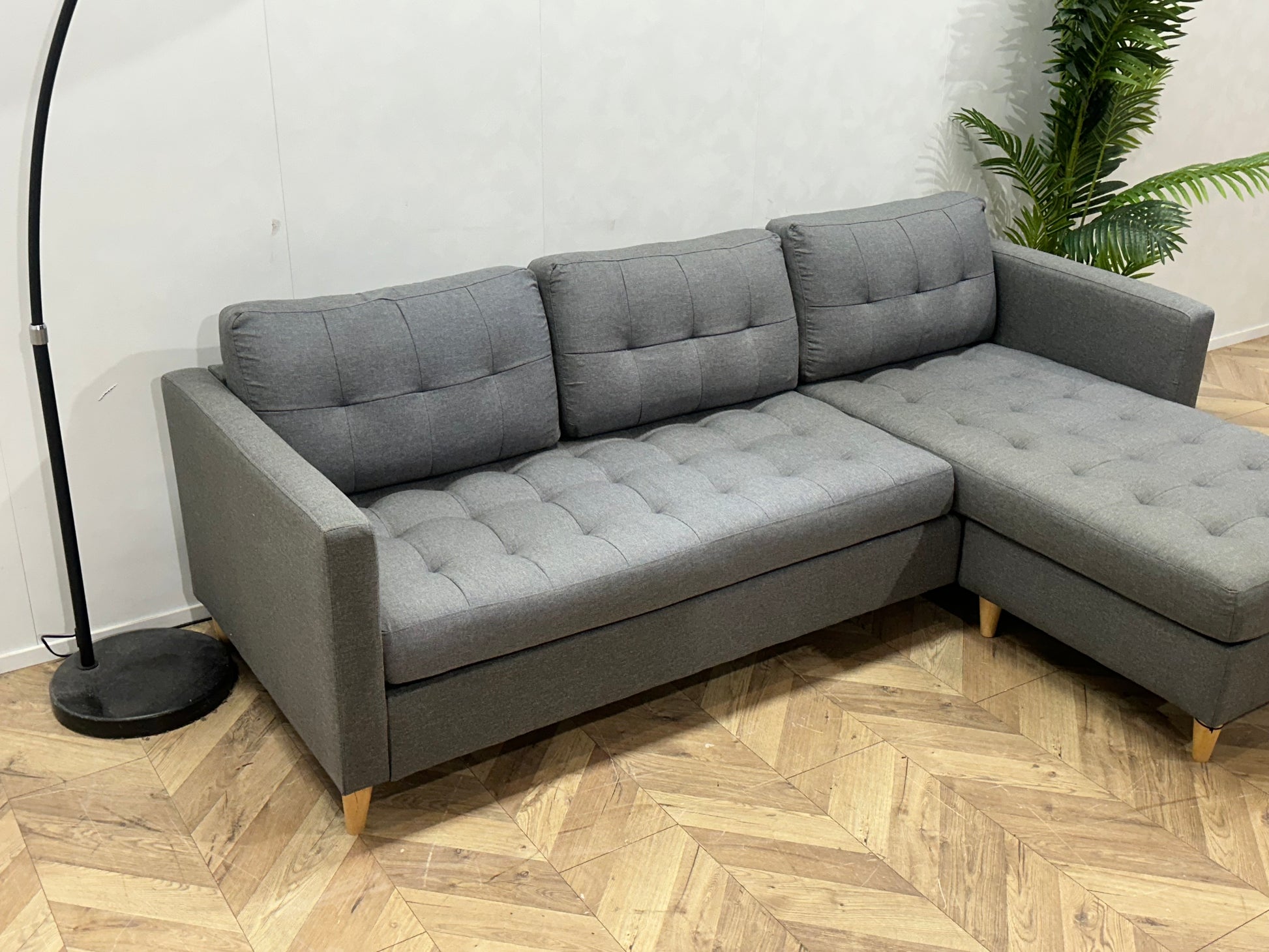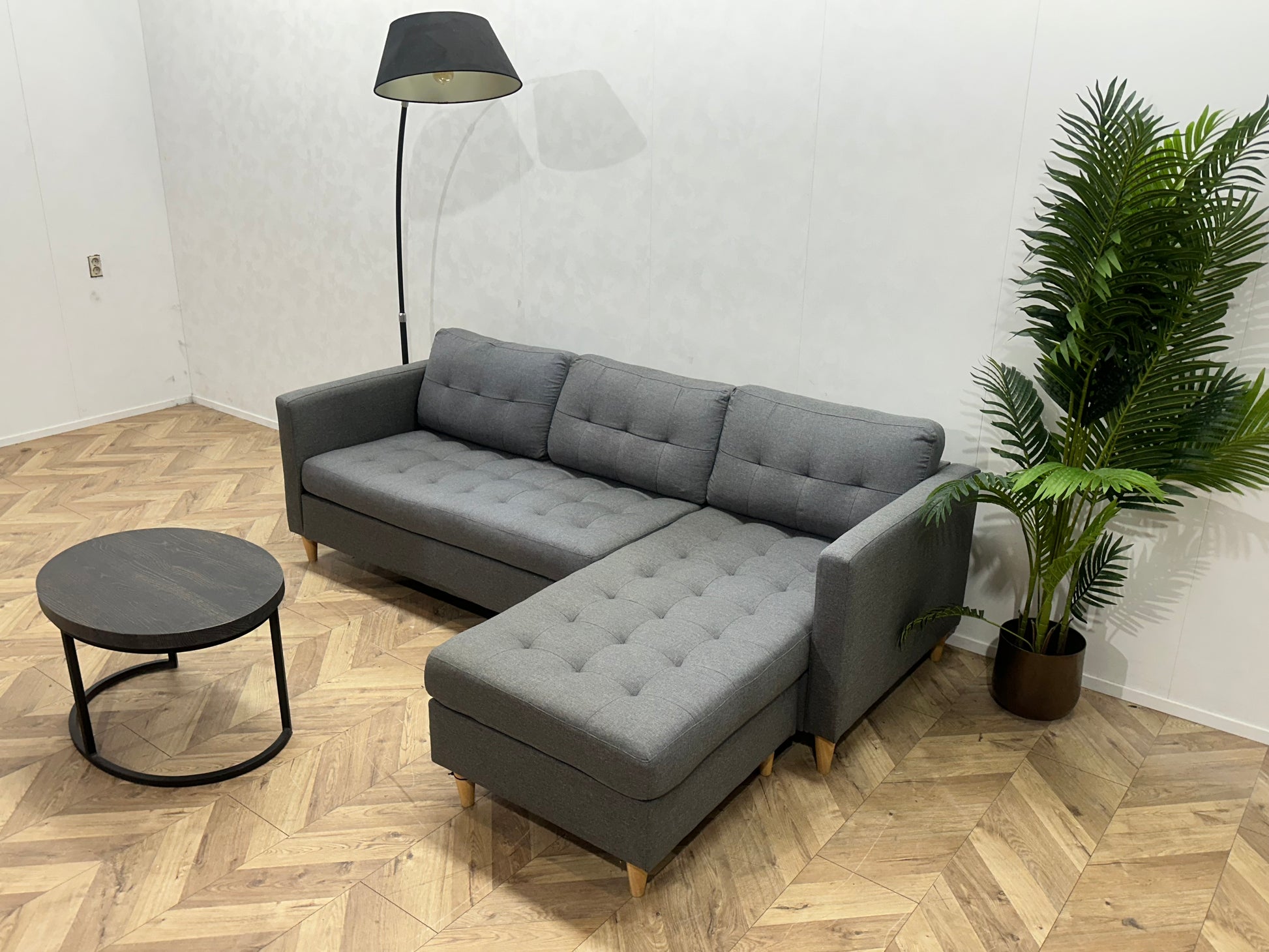 Deze stijlvolle grijze hoekbank combineert comfort, functionaliteit en een tijdloos design. Dankzij de strakke lijnen en neutrale kleur past deze bank moeiteloos in zowel moderne als klassieke interieurs. De royale zit en chaise longue maken deze bank perfect voor ontspannen avonden of gezellig samenzijn.