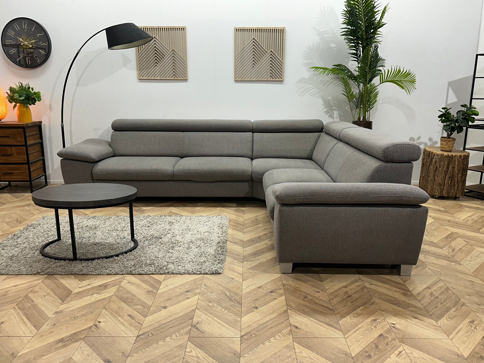 Grijze Hoekbank ~ Verstelbare Arm/Hoofdsteunen