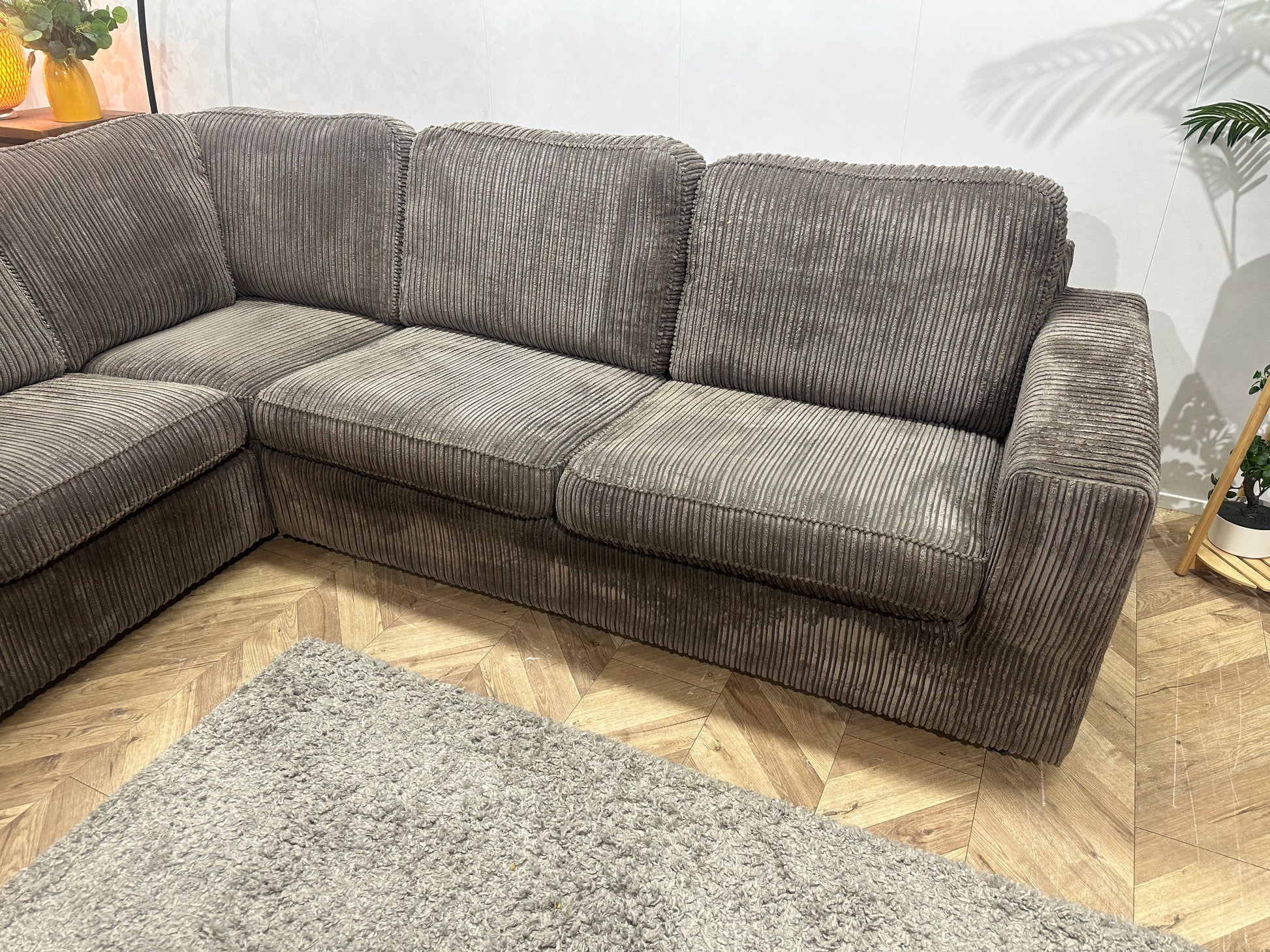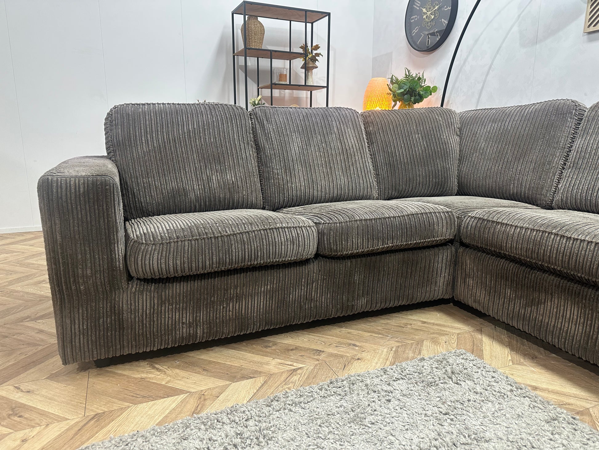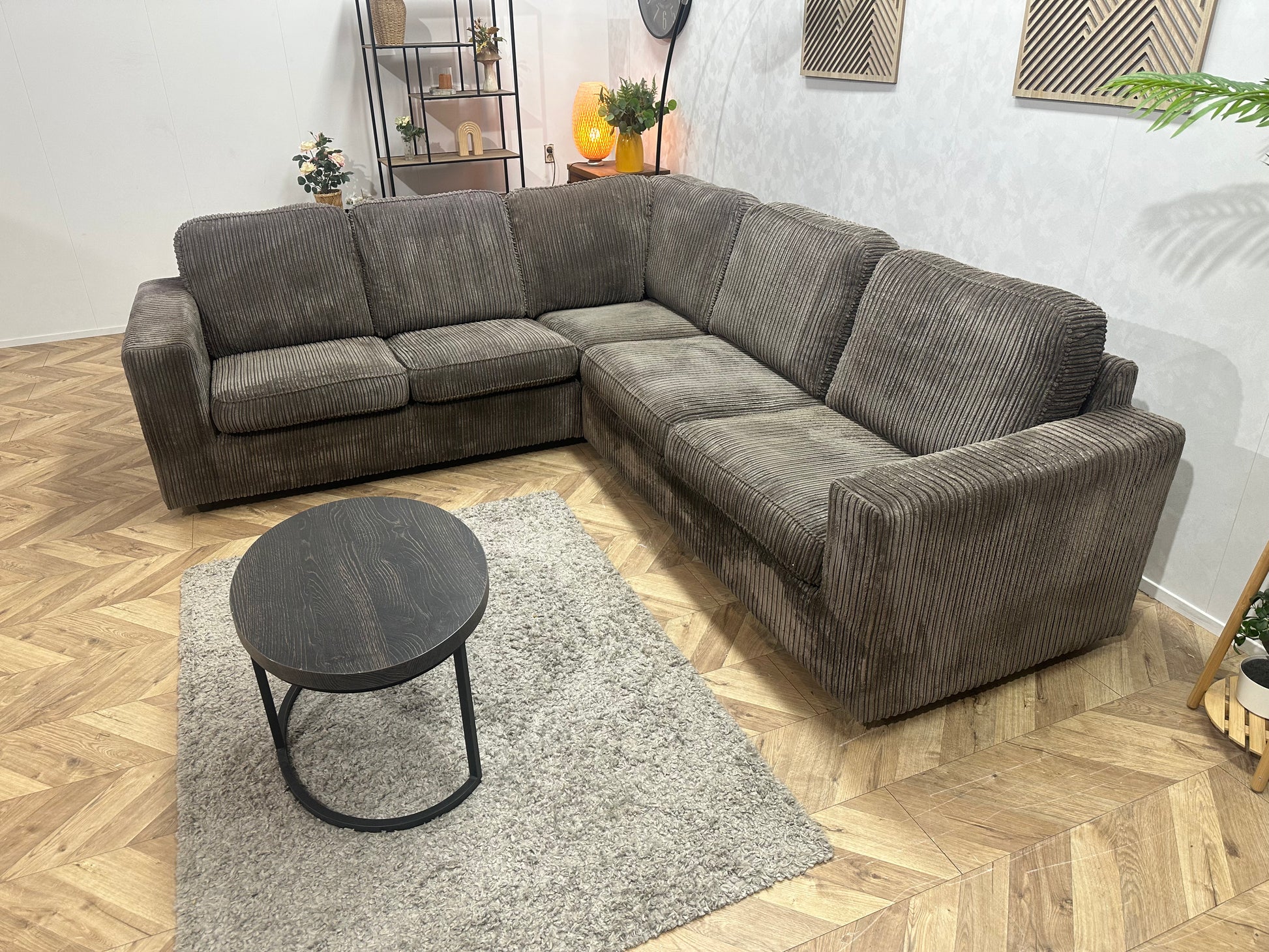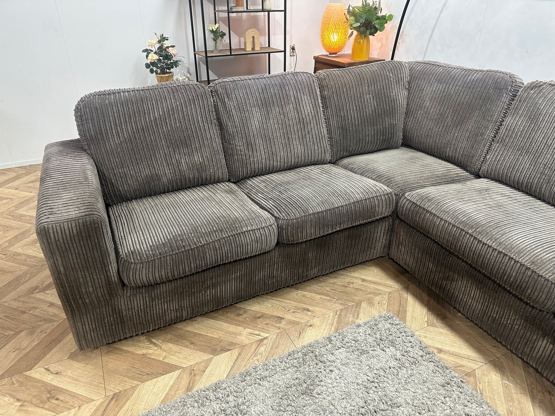 Grijze Ribstof Hoekbank ~ Losse Kussens Met Afneembare Hoezen