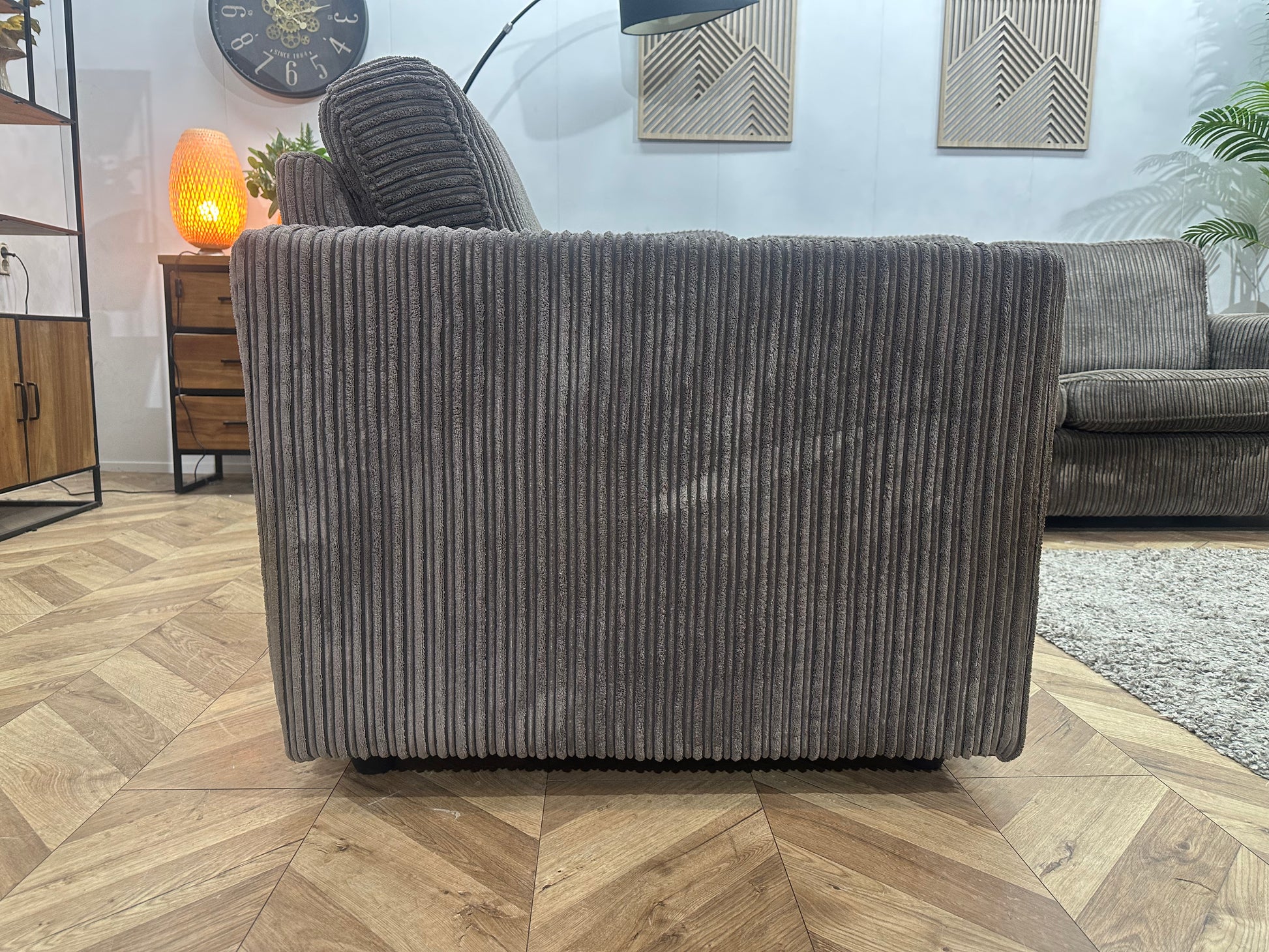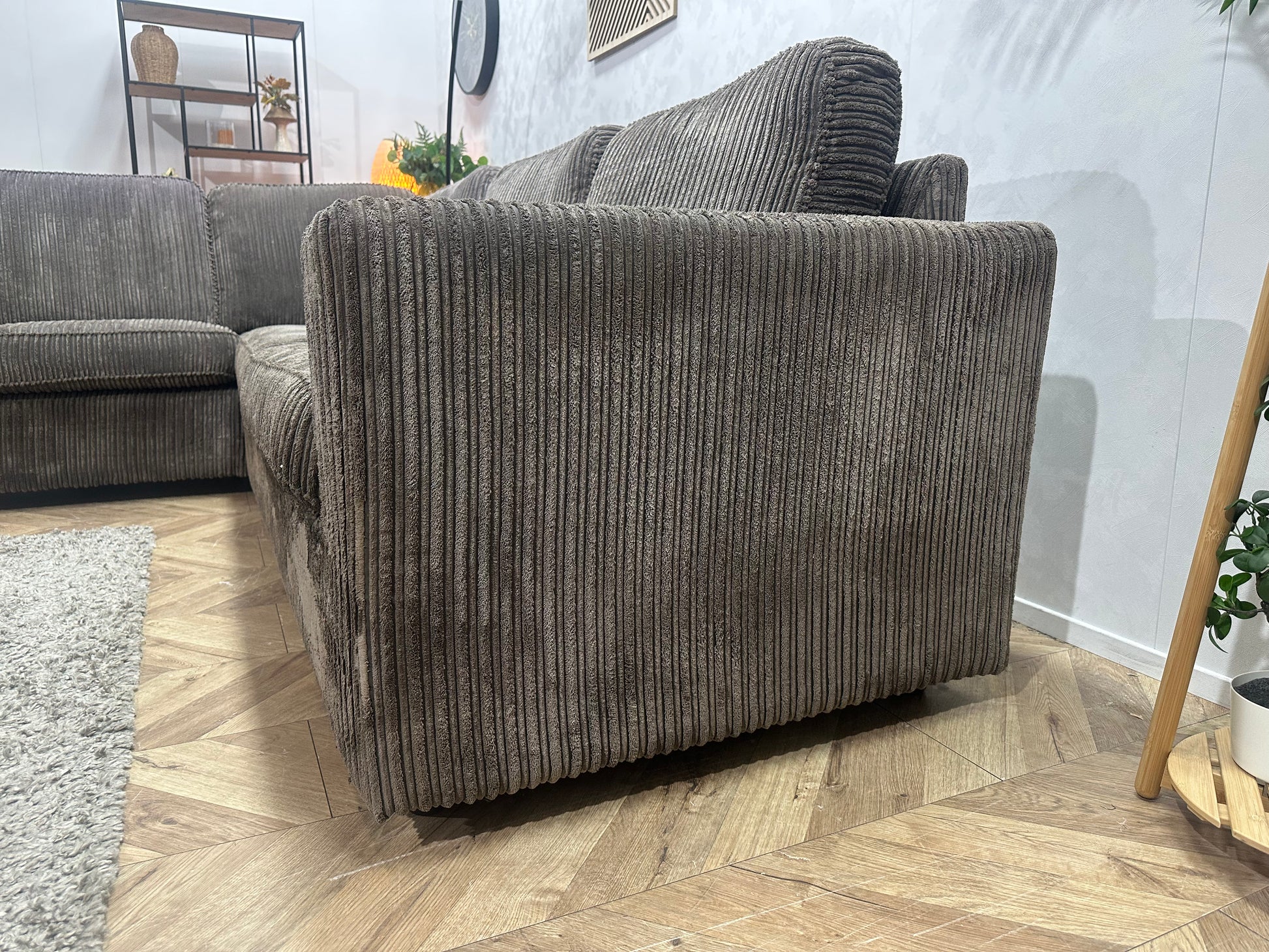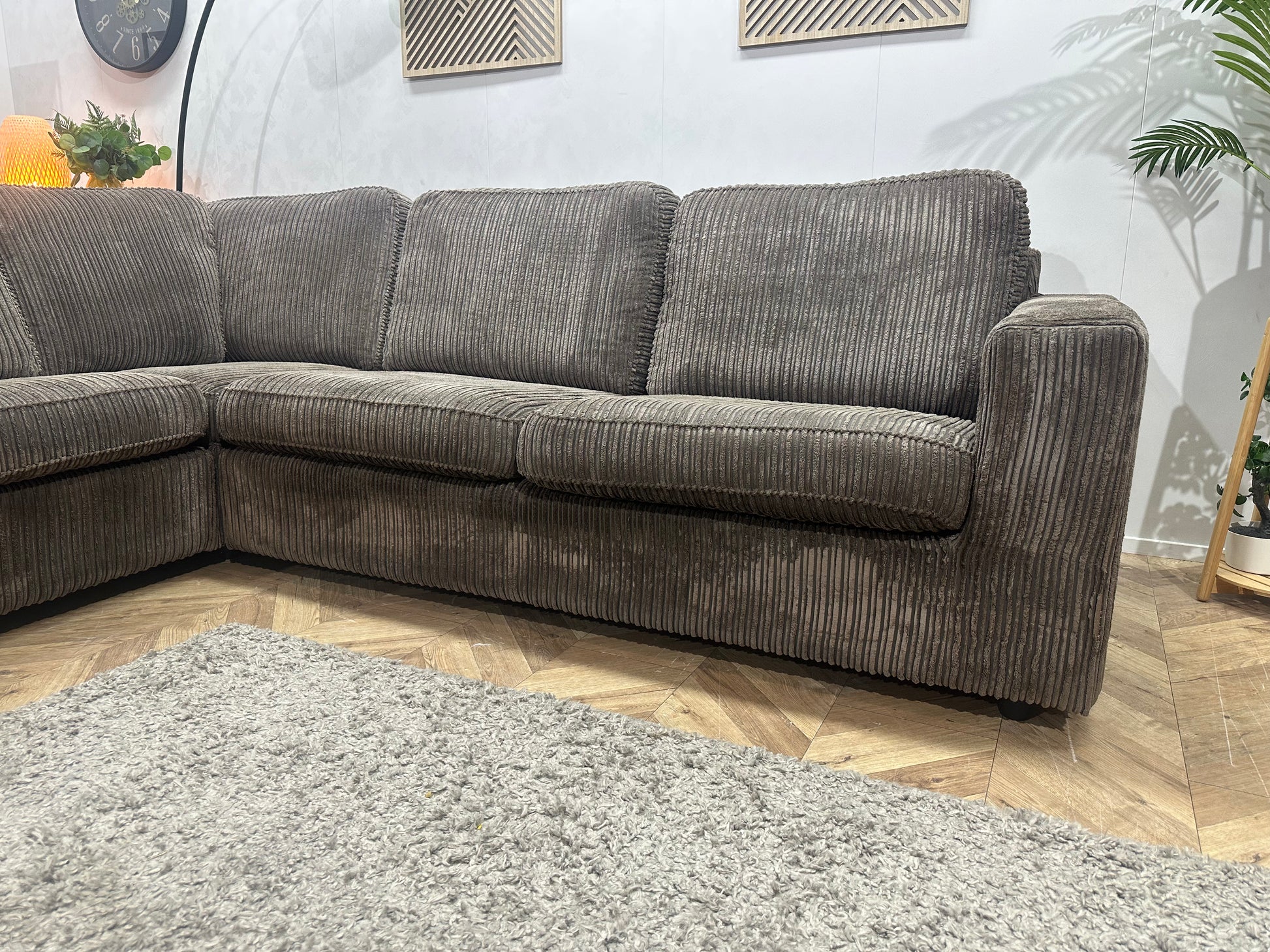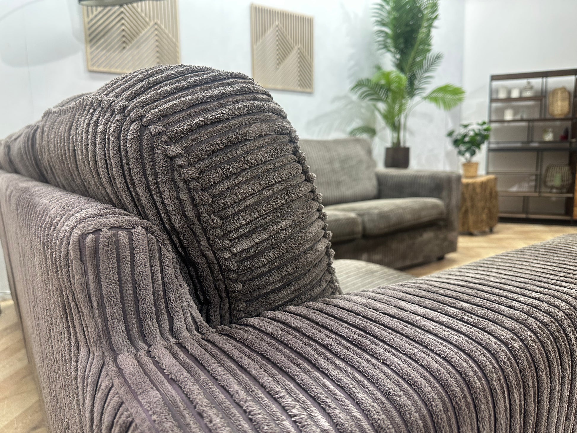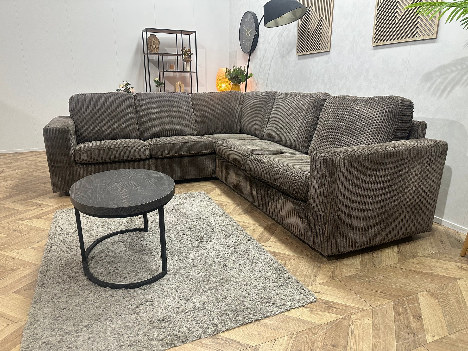 Grijze Ribstof Hoekbank ~ Losse Kussens Met Afneembare Hoezen