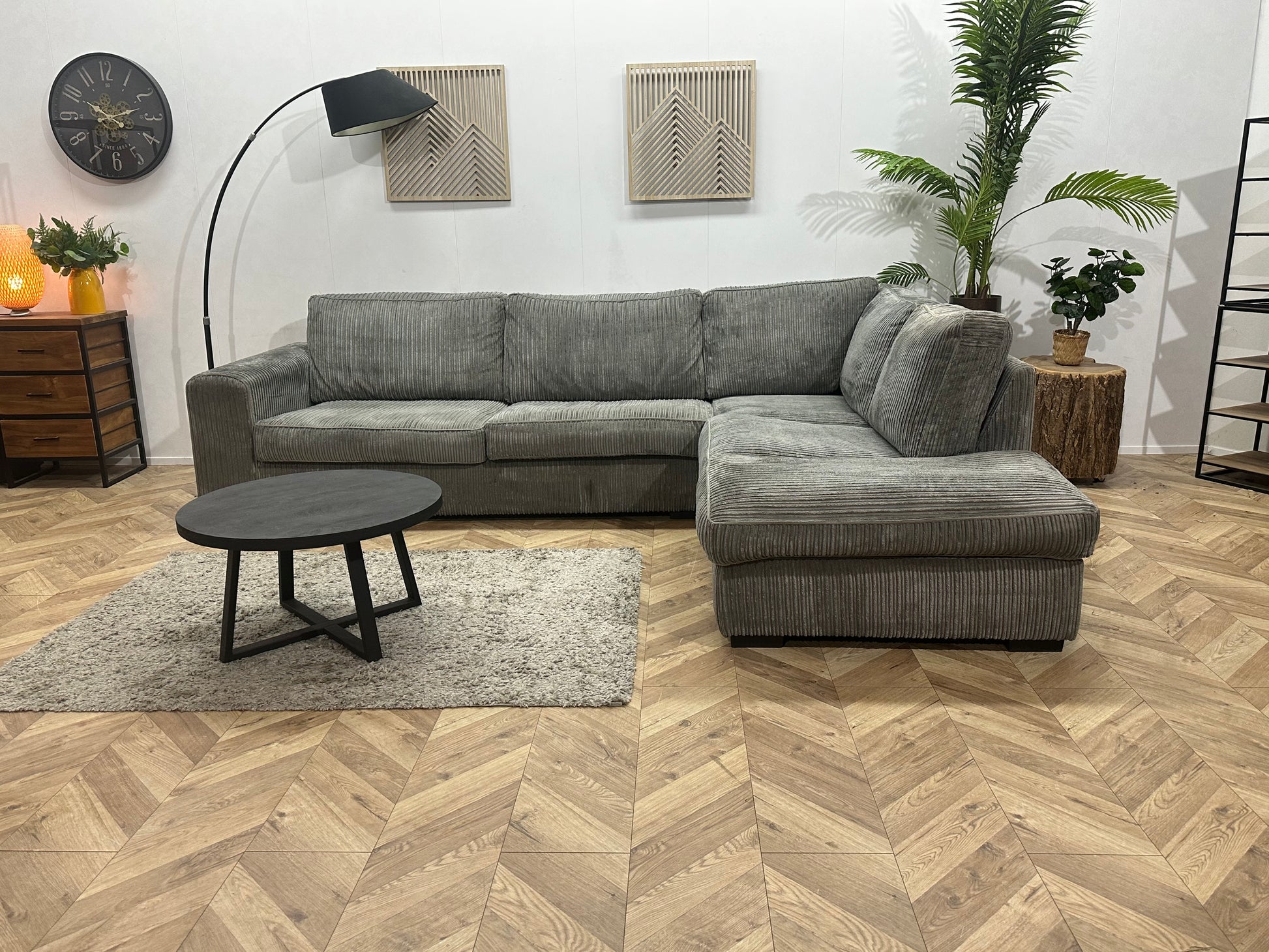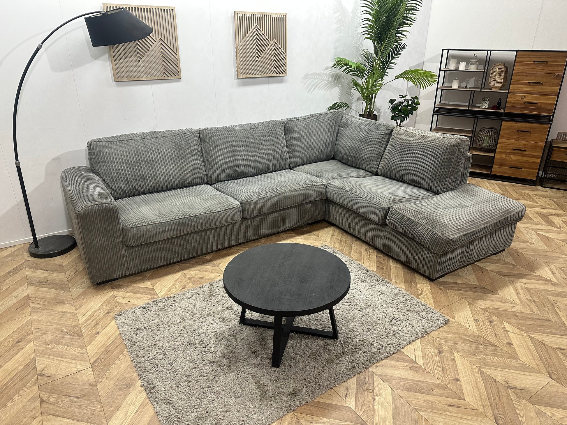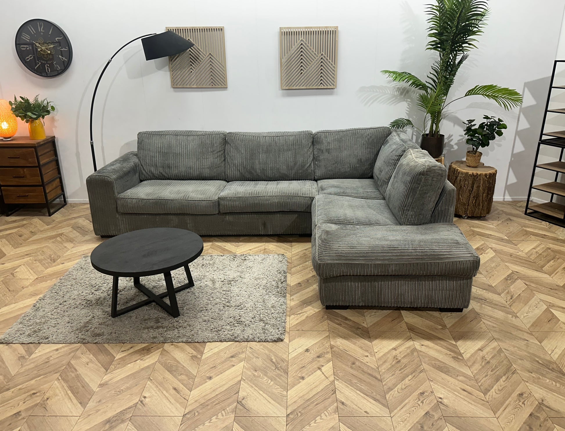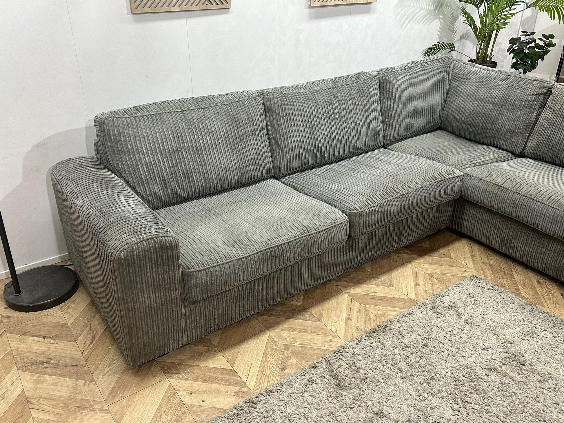 Grijze Ribstof Hoekbank ~ Losse Kussens Met Afneembare Hoezen