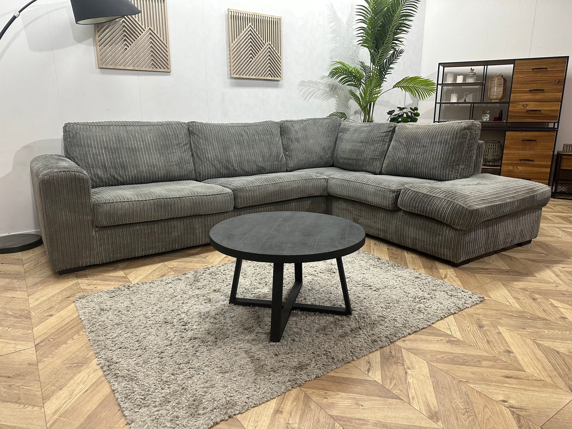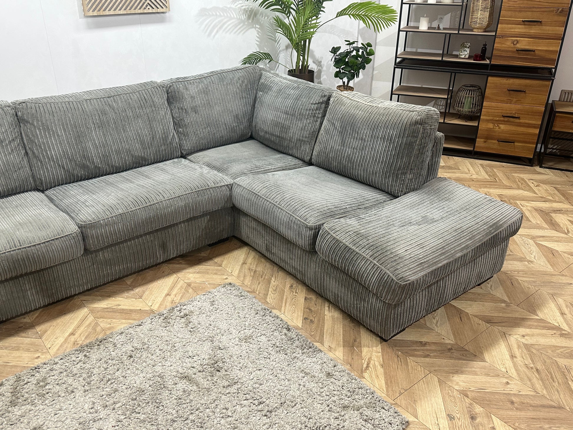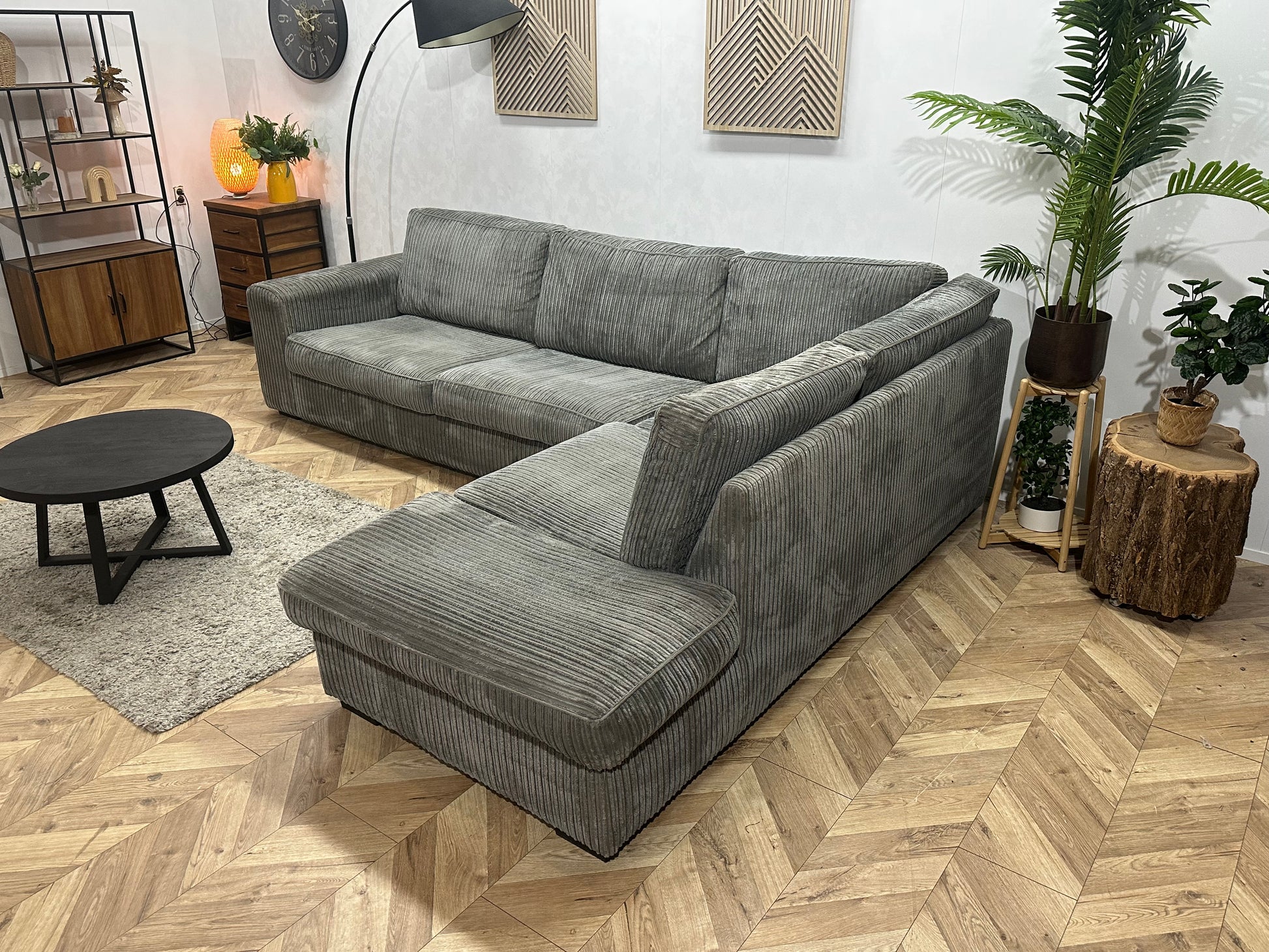 Grijze Ribstof Hoekbank ~ Losse Kussens Met Afneembare Hoezen