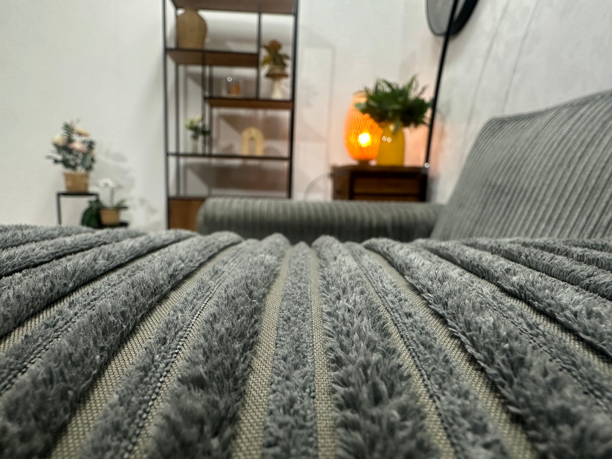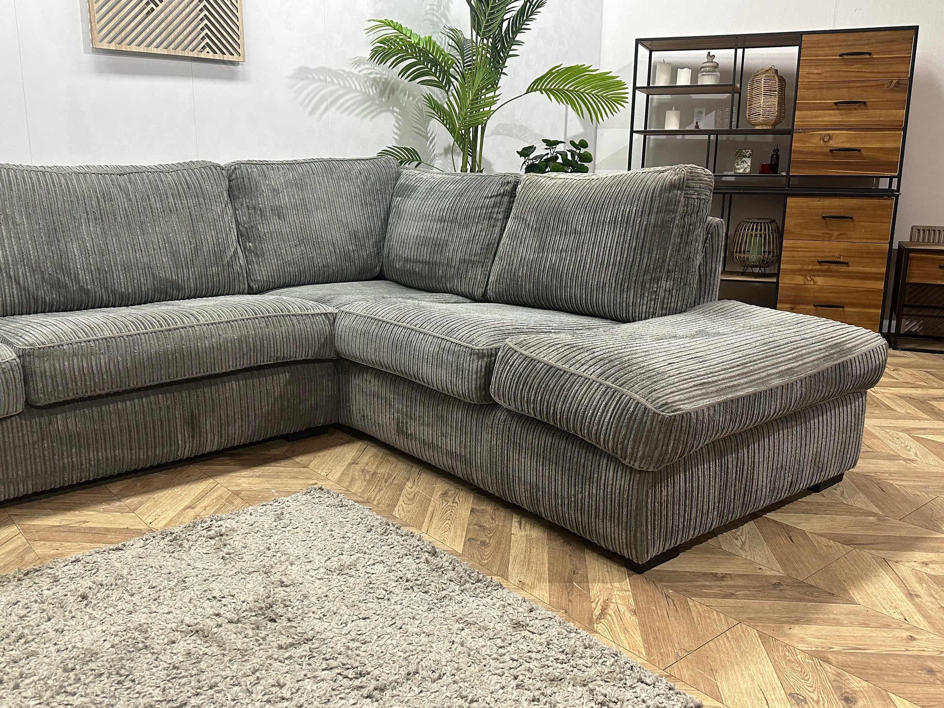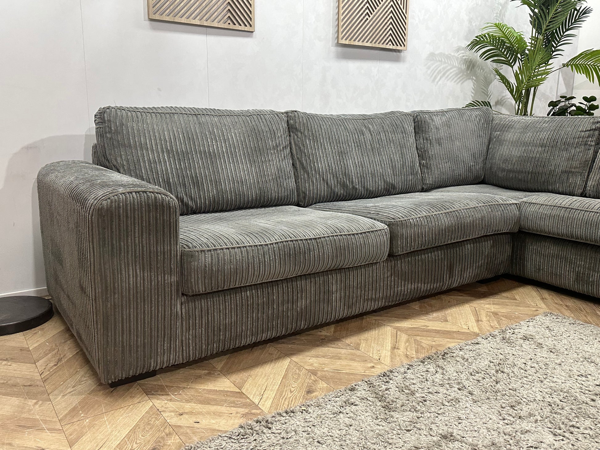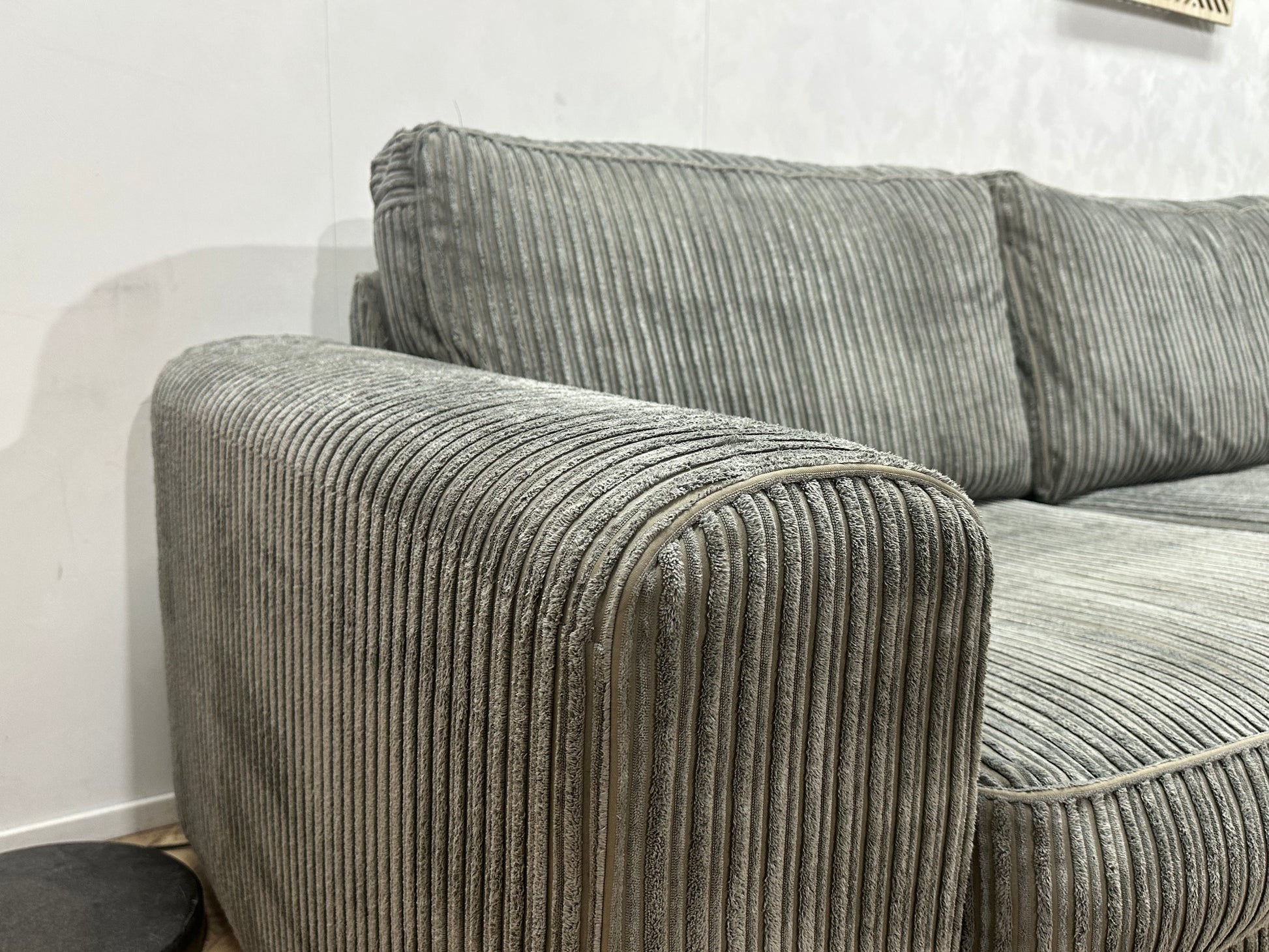 Grijze Ribstof Hoekbank ~ Losse Kussens Met Afneembare Hoezen