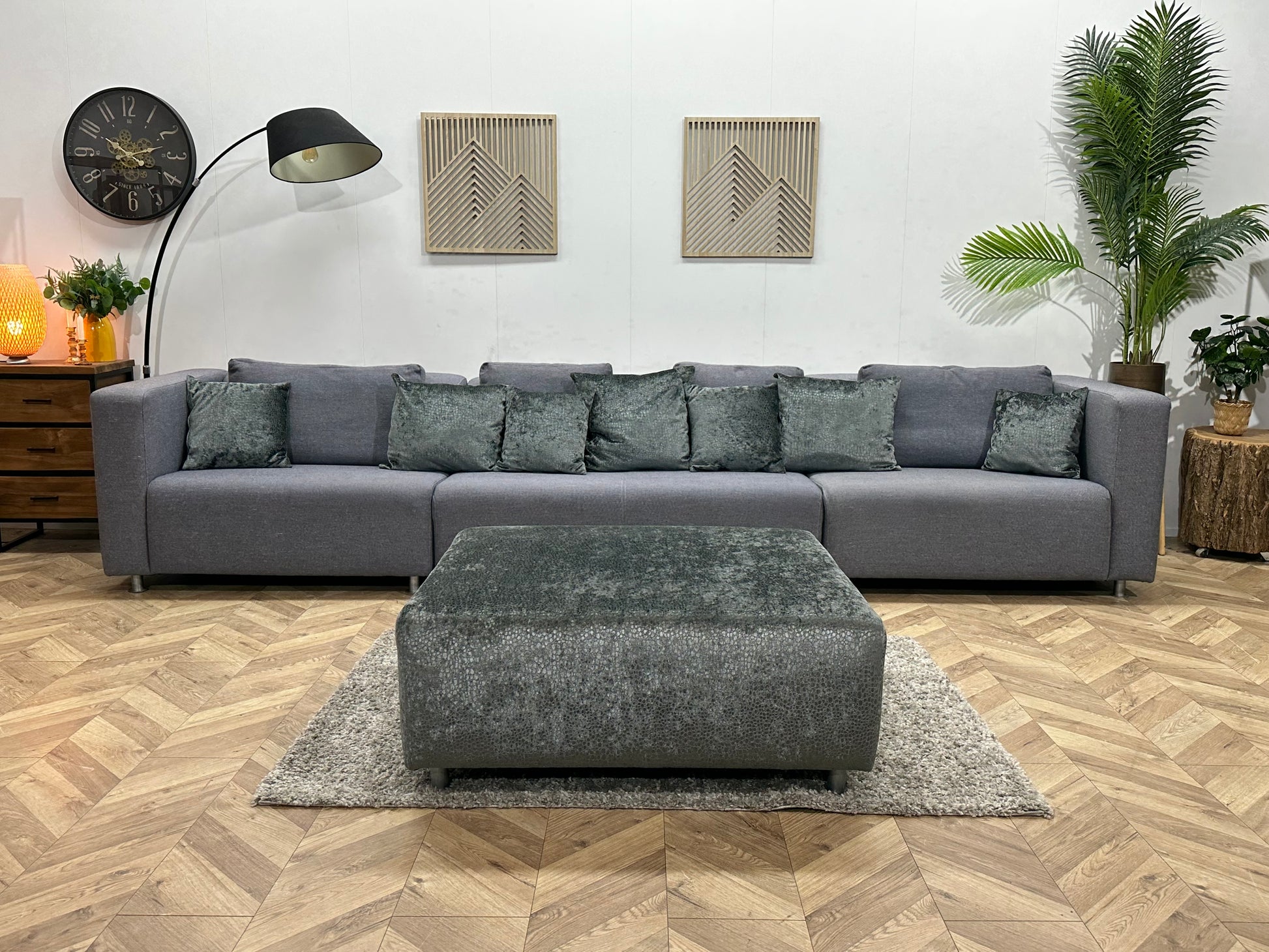 Grijze Ruime Hybride 3-Zits Bank Inc Hocker ~ Losse Rugkussens Met Afneembare Hoezen