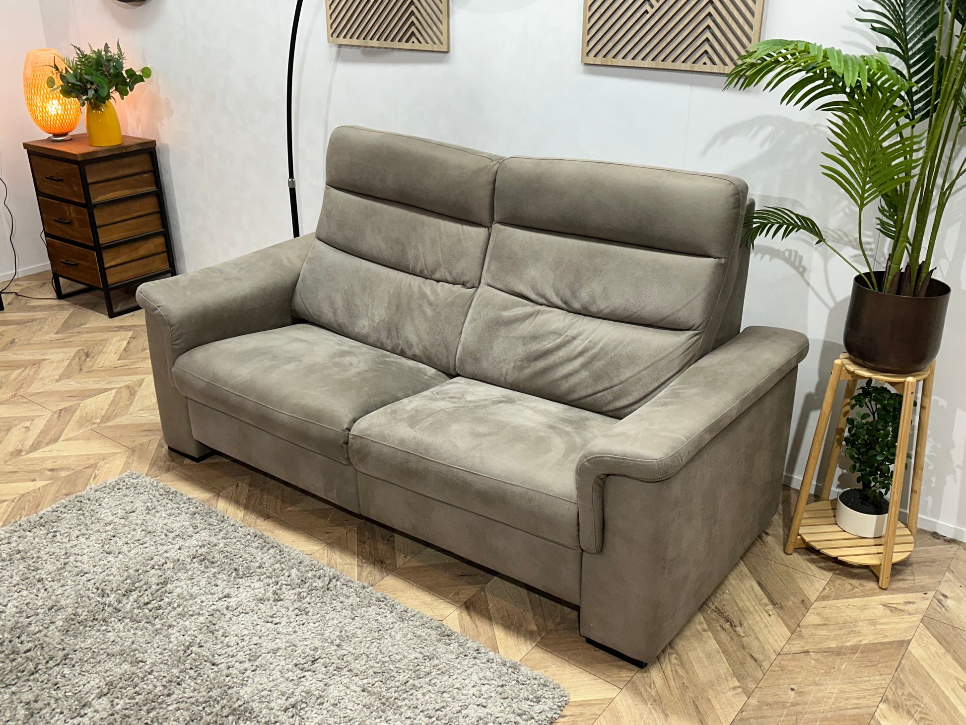 Grijze Suède Stoffen 2.5-Zits Bank ~ Vaste Kussens