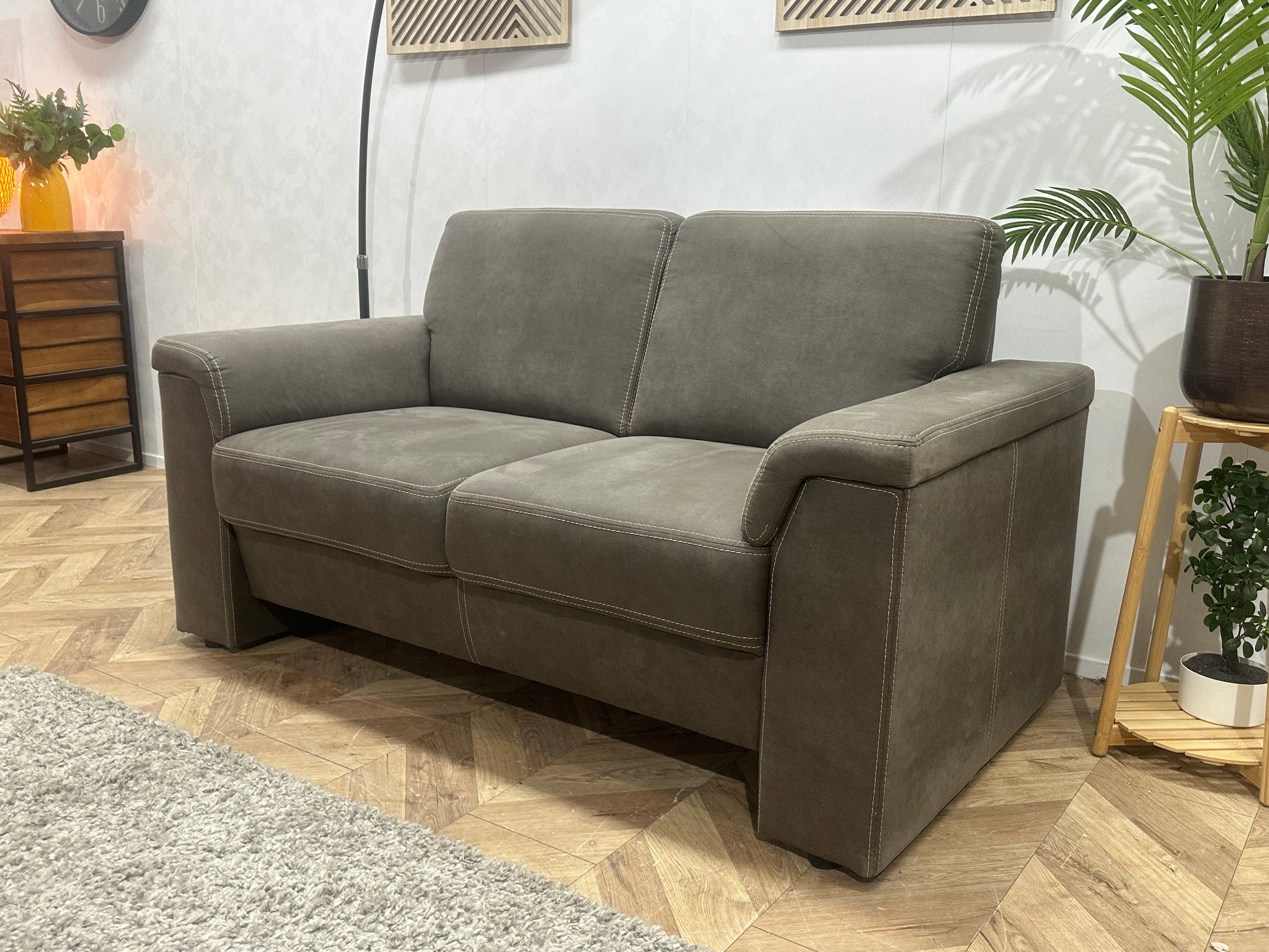 Grijze Suède Stoffen 2.5-Zits Bank ~ Vaste Kussens