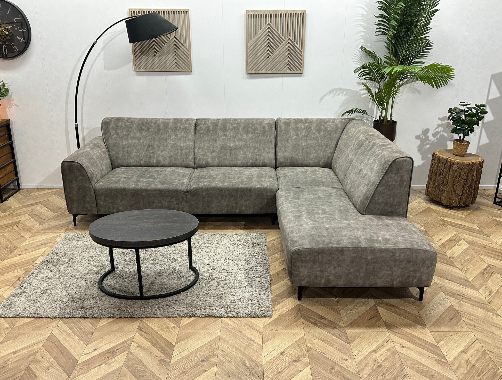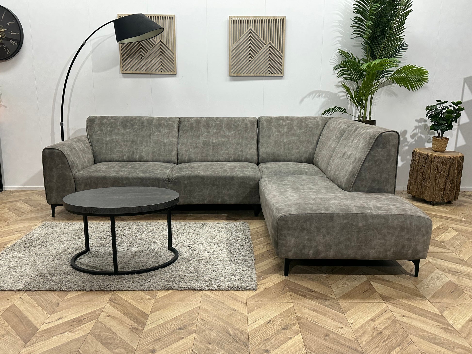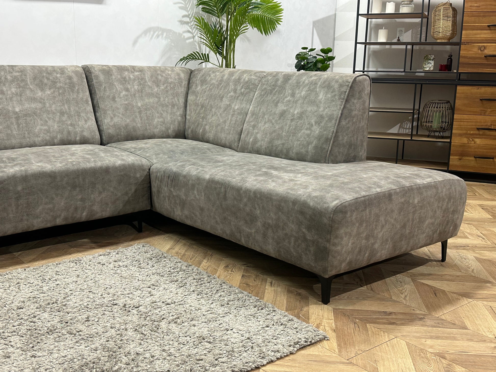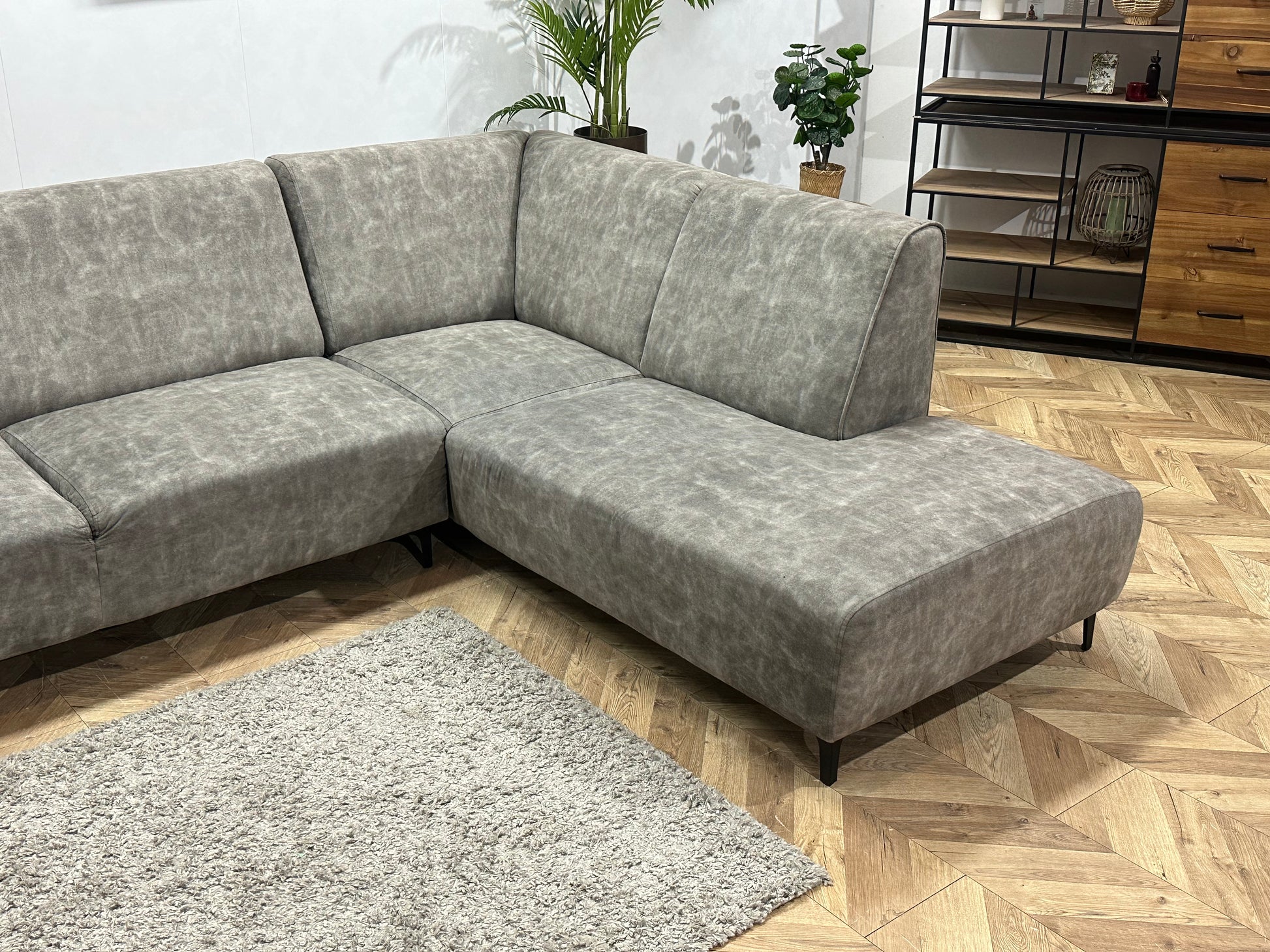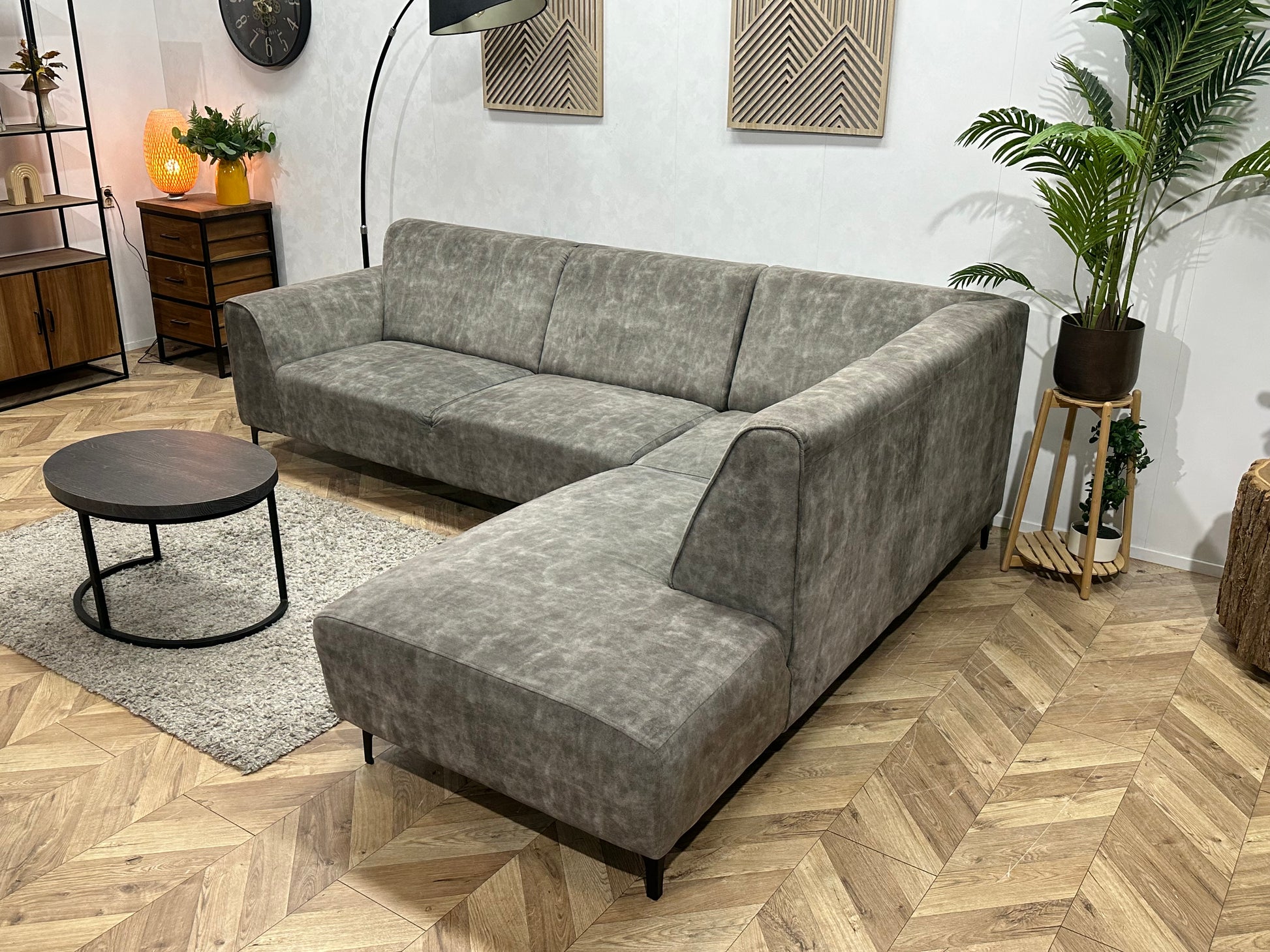 Grijze Velvet Hoekbank ~ Vaste Kussens