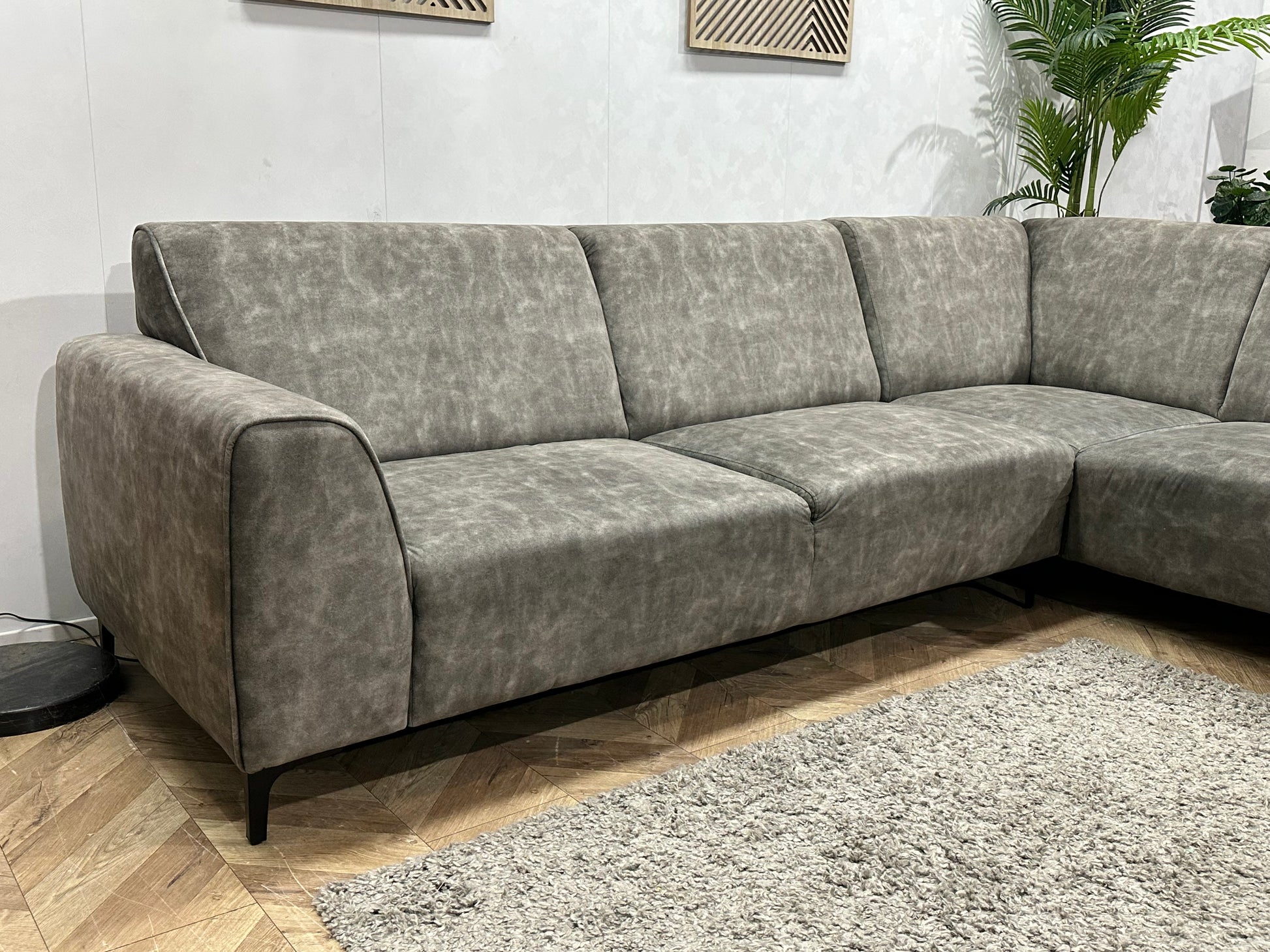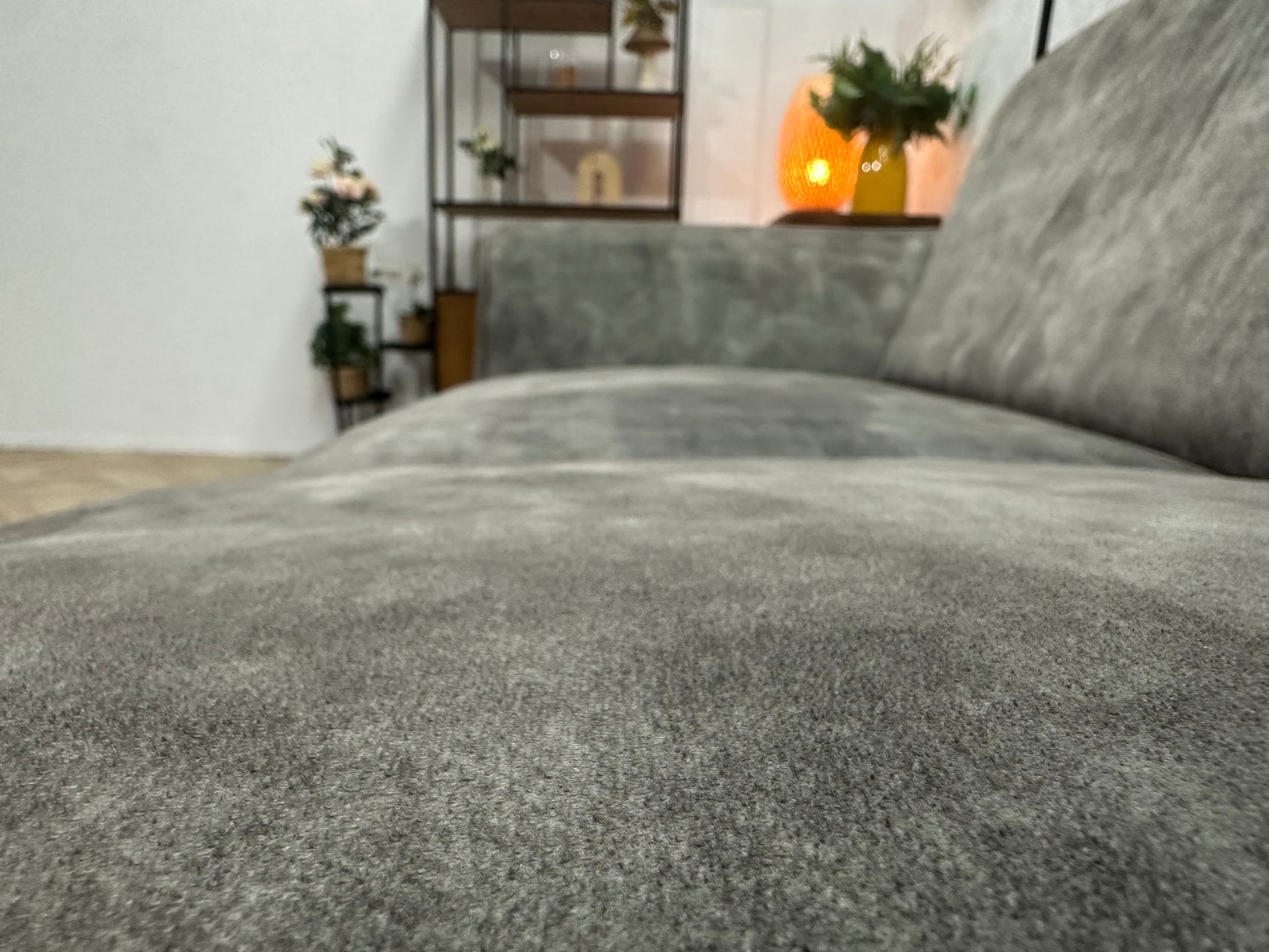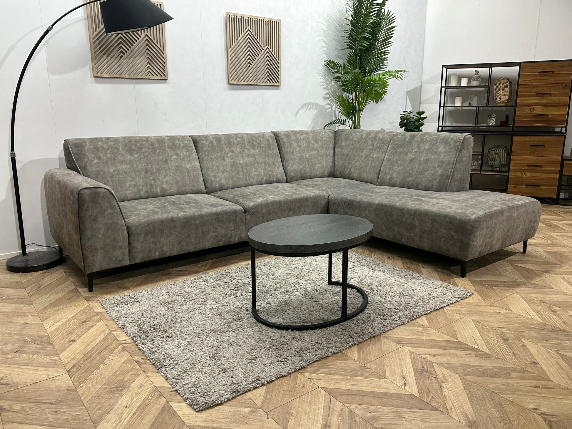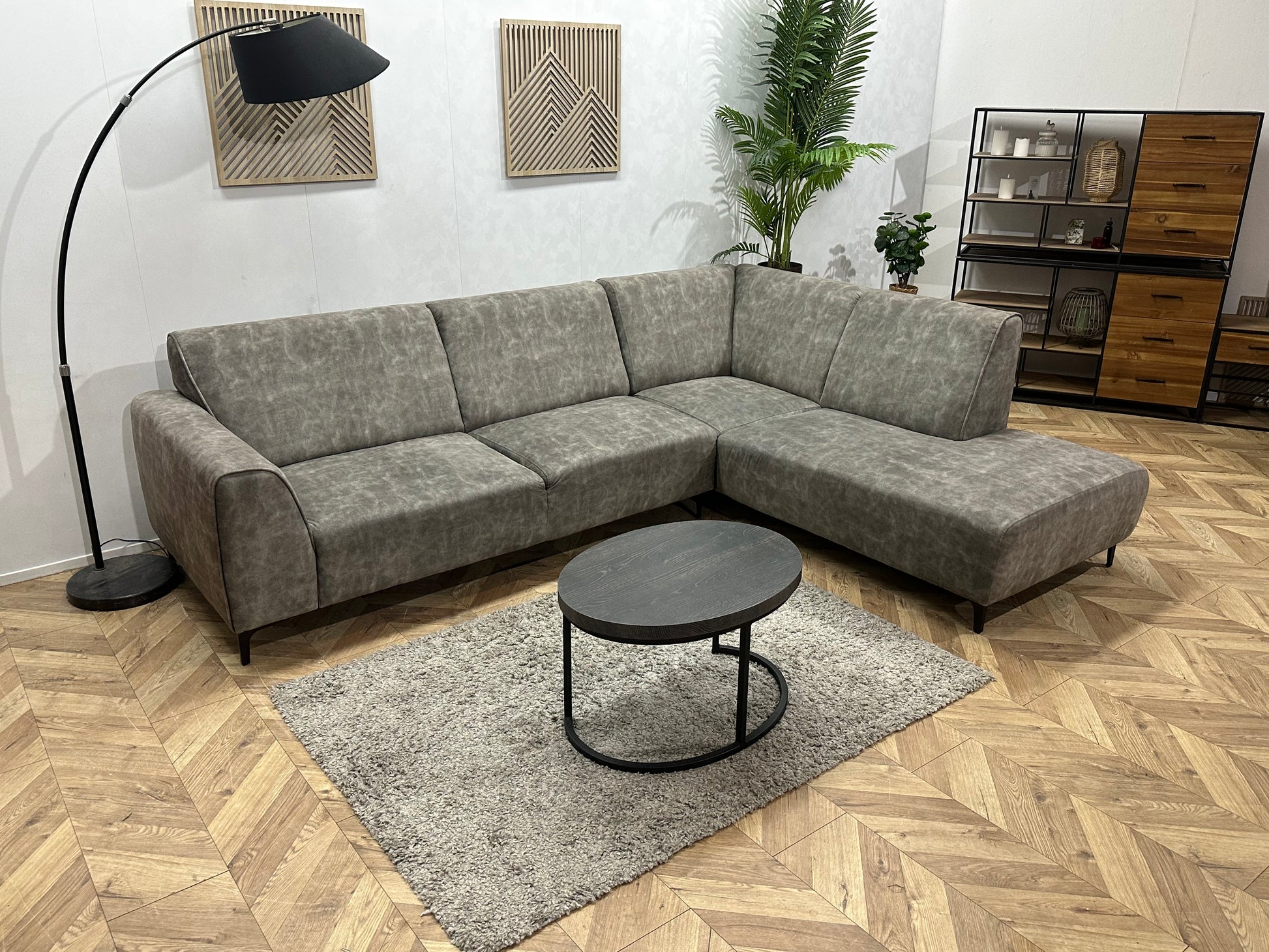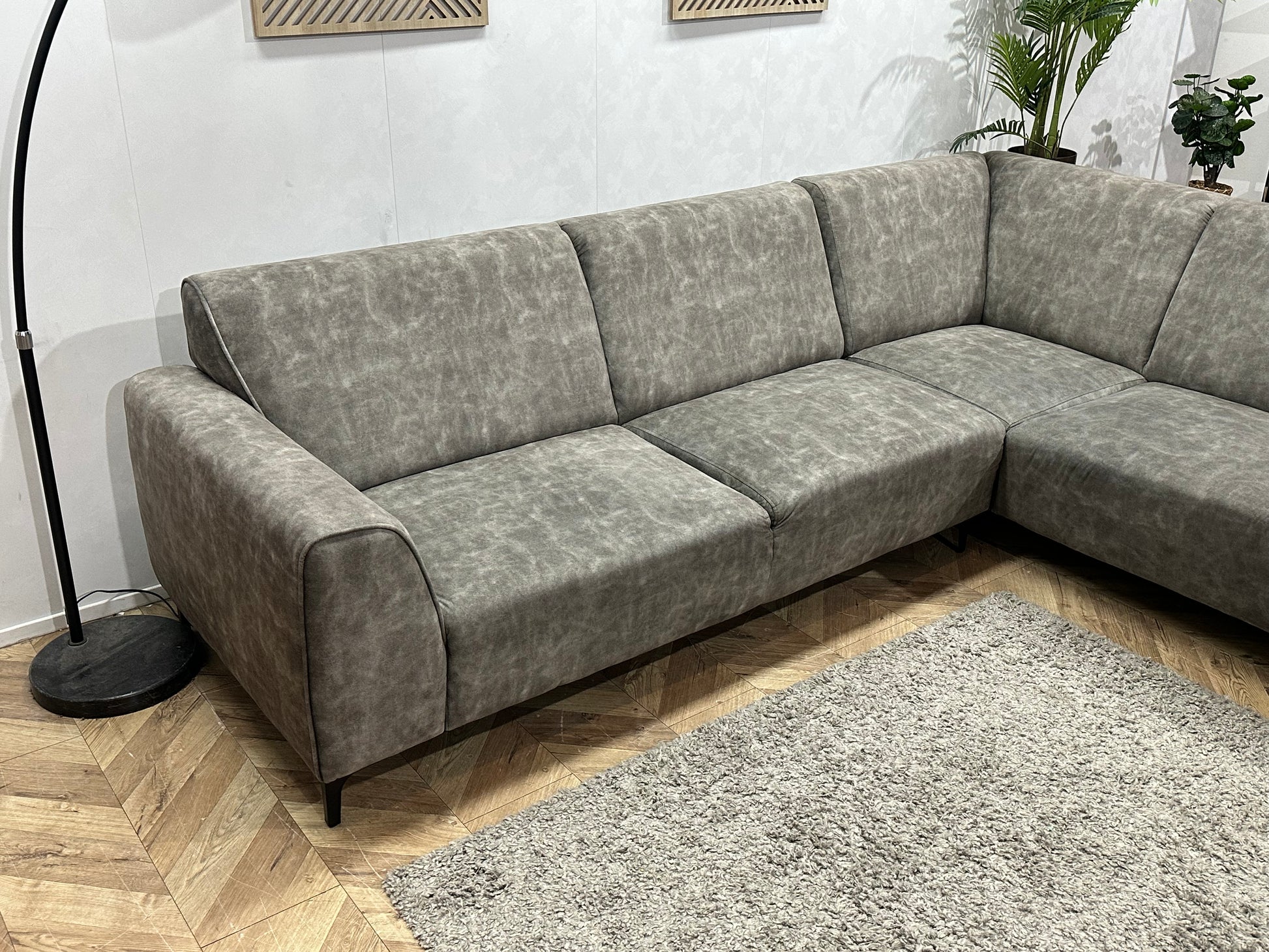Grijze Velvet Hoekbank ~ Vaste Kussens