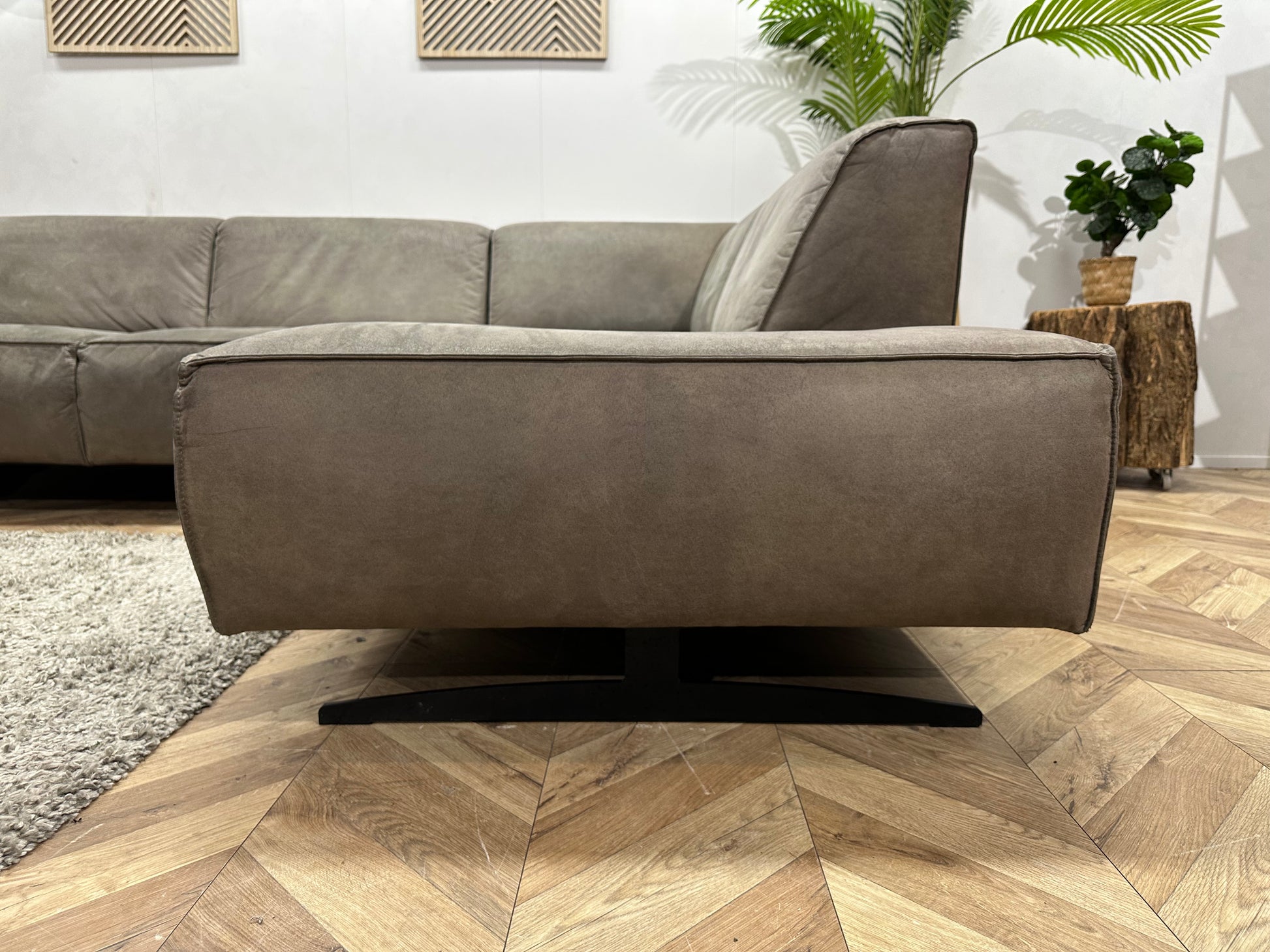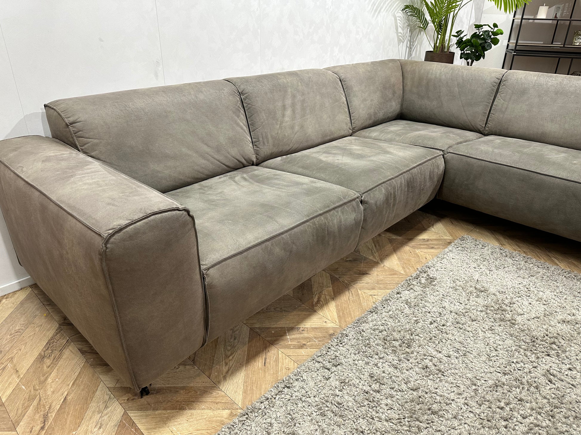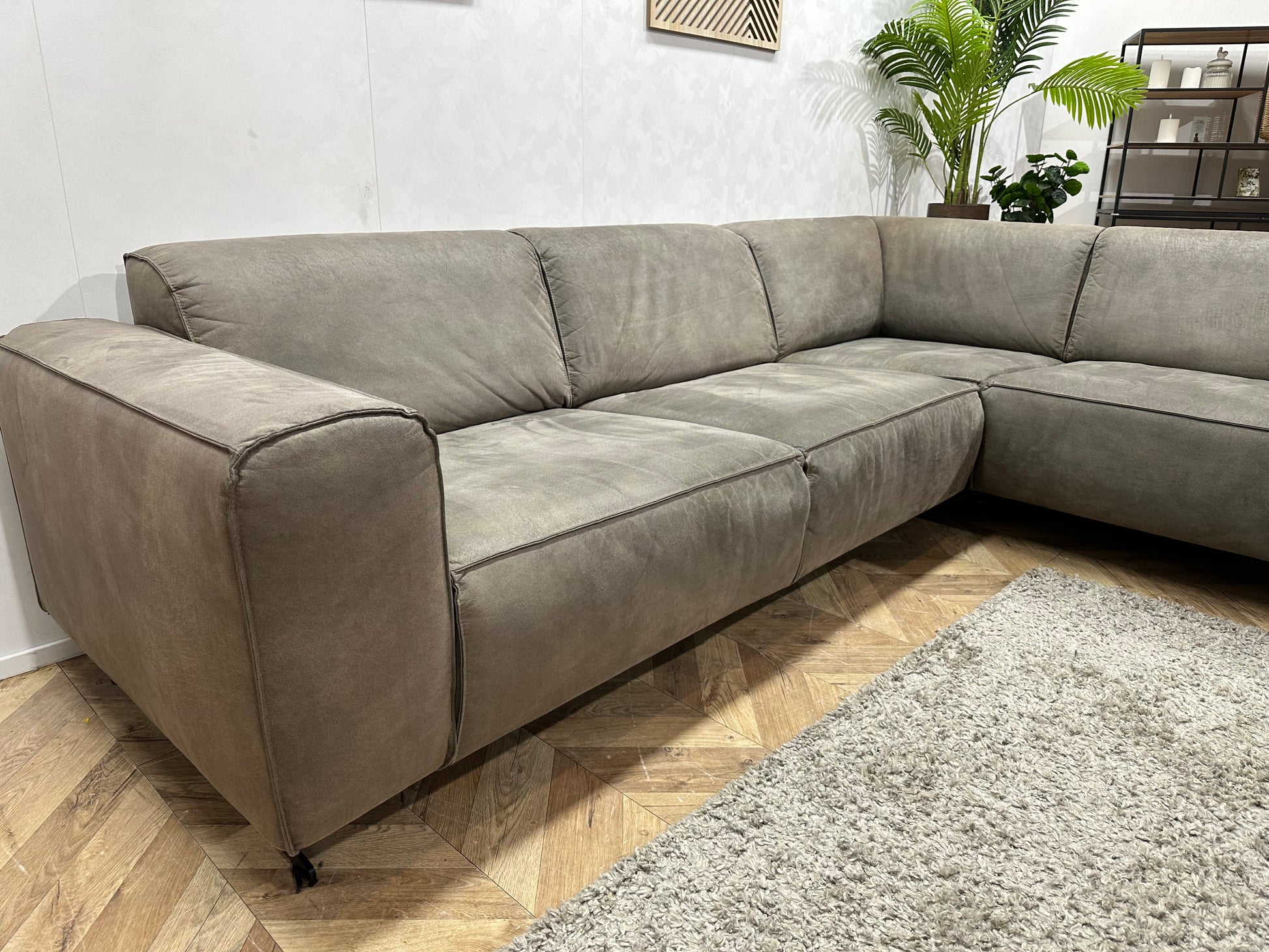 Groene Suède Lederen Hoekbank ~ Vaste Kussens