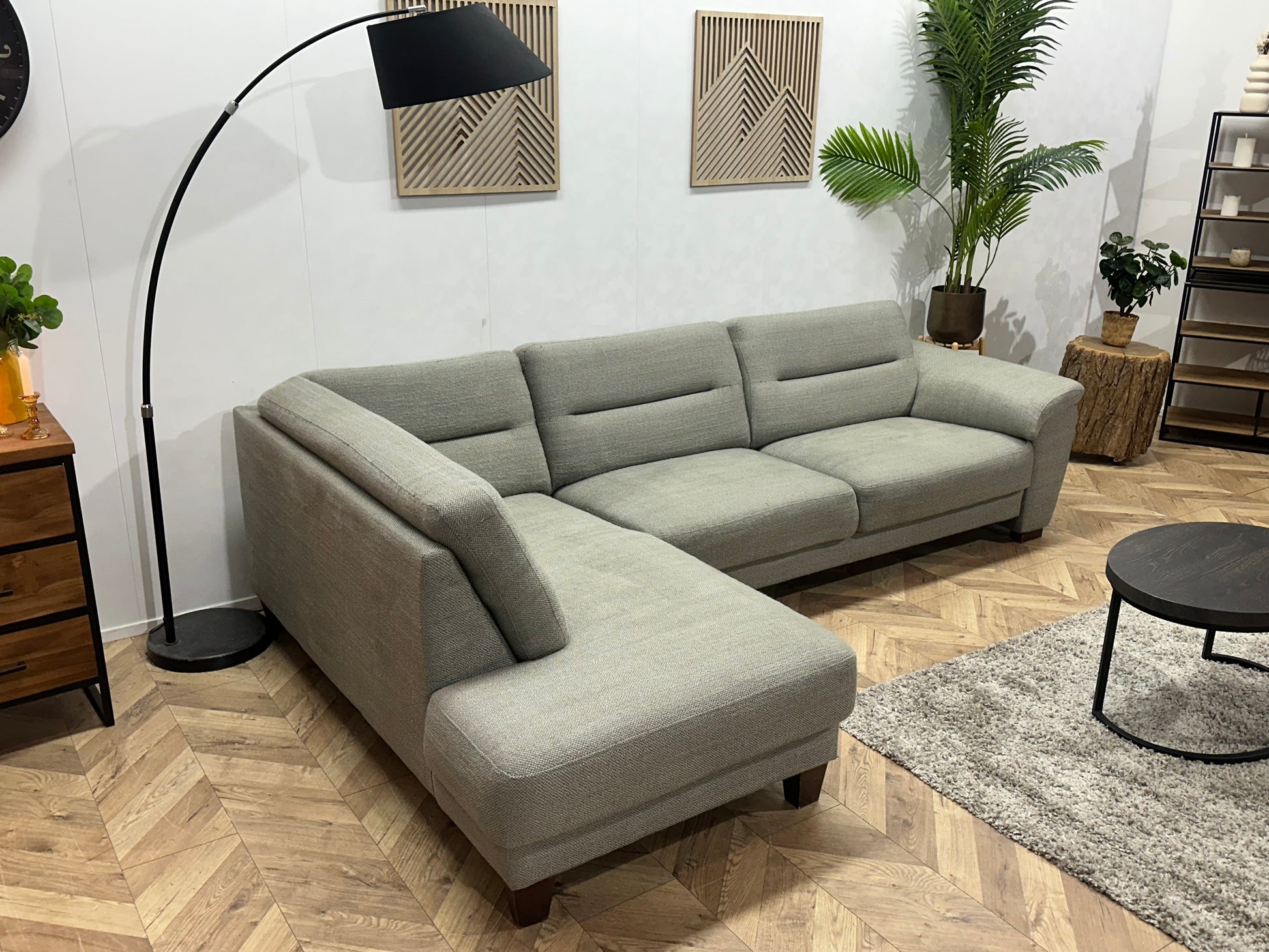 H&H Licht Grijze Hoekbank ~ Vaste Kussens